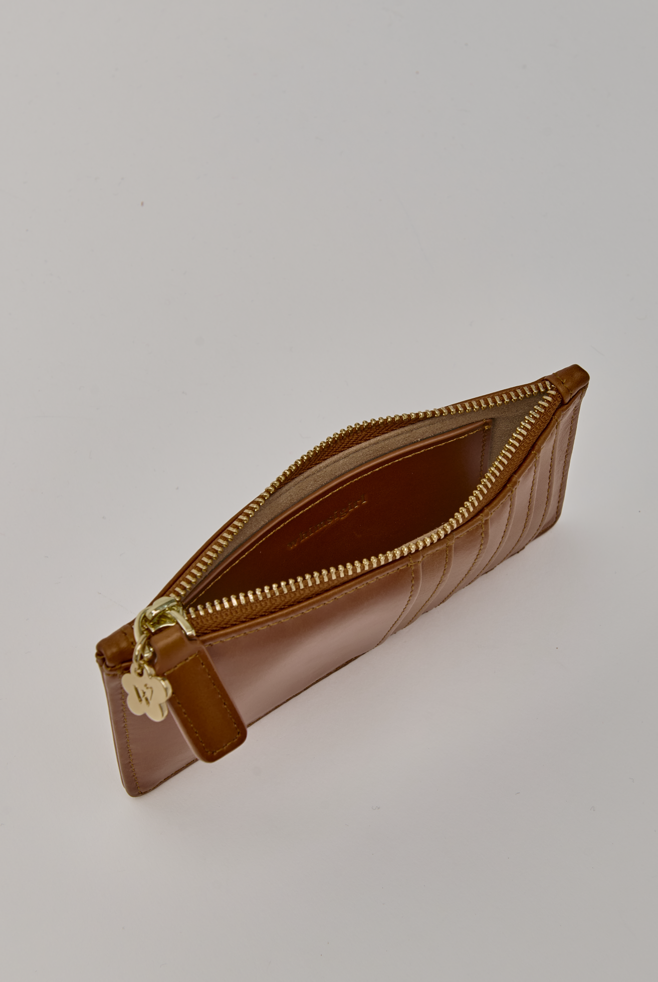 A cardholder secured with a smooth zip closure. Crafted from leather that only improves with age. The right companion to your Midcentury bag, to keep essentials organised. Expect unique variations in the leather, adding to its character and charm.