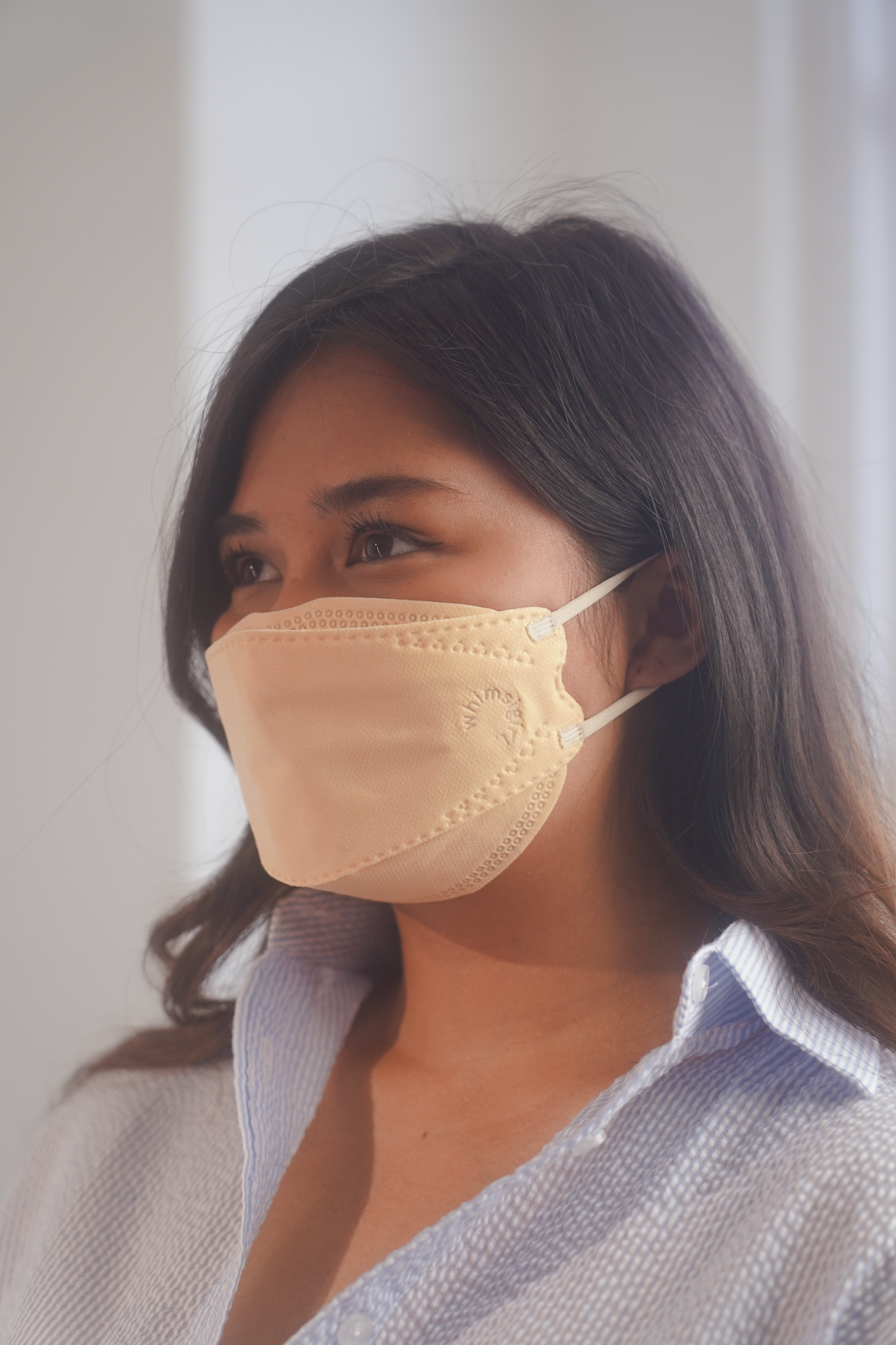 - Each box contains 40 pieces of individually sealed disposable KF94 respirator masks. - A combination of 4 nude shades (10 pieces/colour) for your everyday use. - One size fits most adults with adjustable nose wire. - Whimsigirl circular logo debossing on one side. - Measures 207mm × 82mm (folded), 207mm × 160mm (expanded) & Loop 180mm. - Ultra-comfortable 5mm flat earloop for long wear. - High breathability and hypoallergenic interior layer. - Non-medical use and for single-use only. - 5 years shelf life (to be kept at room temperature and away from direct sunlight). |