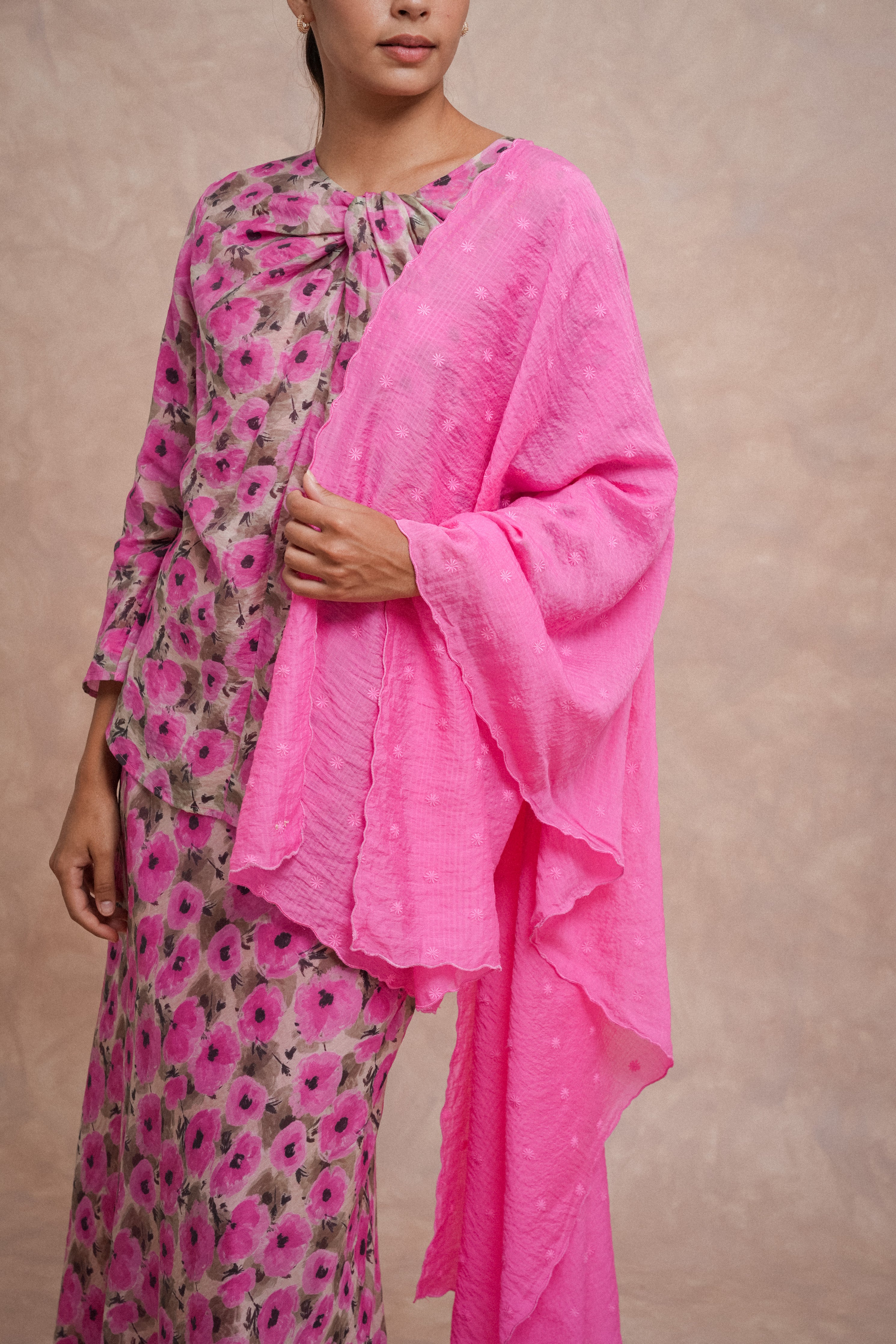 A beautiful addition to (Wo)manifesto pieces, the Very Important Selendang is made from soft organza. Featuring intricate embroidery with daisy motifs, and a gorgeous embroidery finishing around the scarf. Wear it on your shoulder, or in a headscarf style to show it off to full effect.