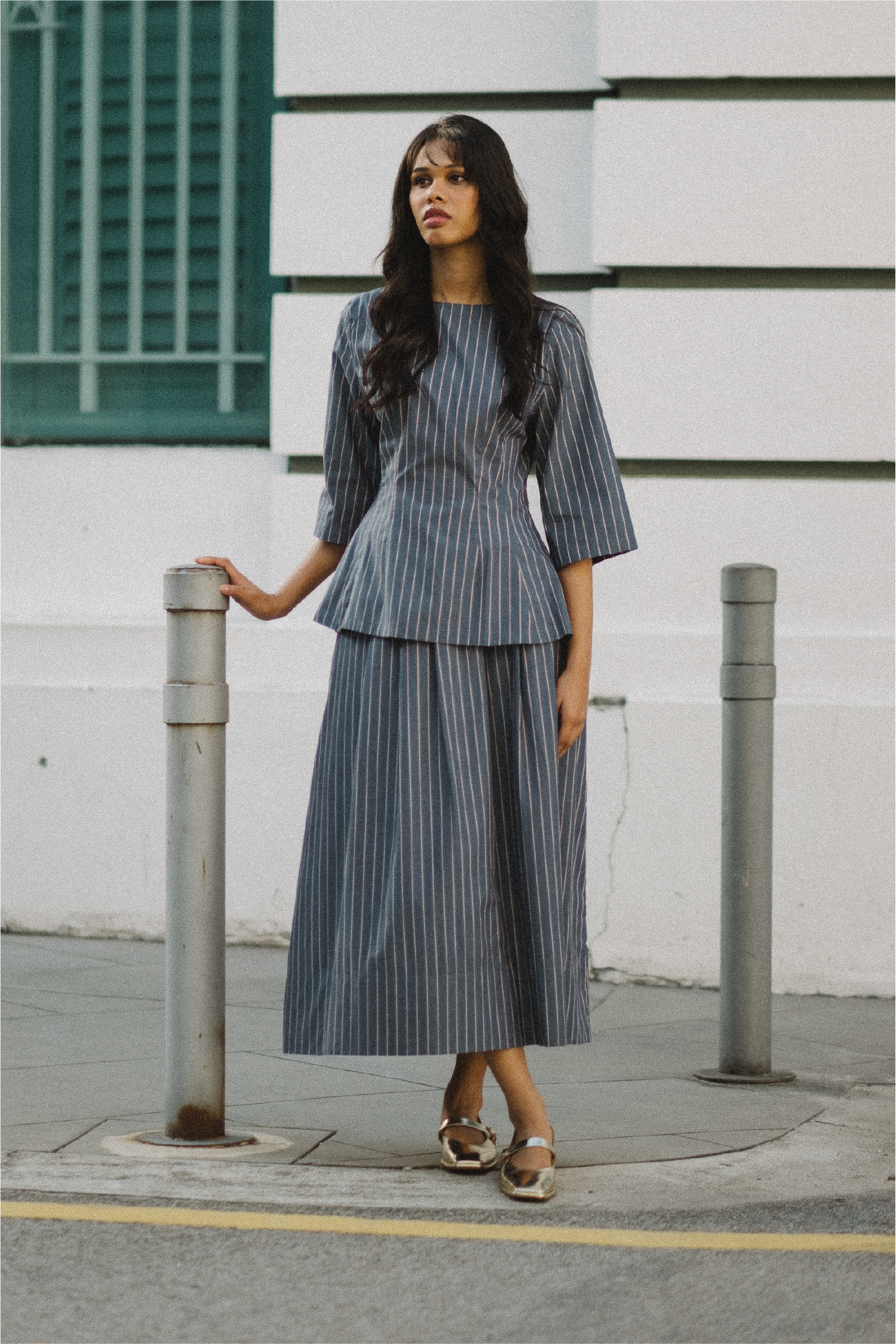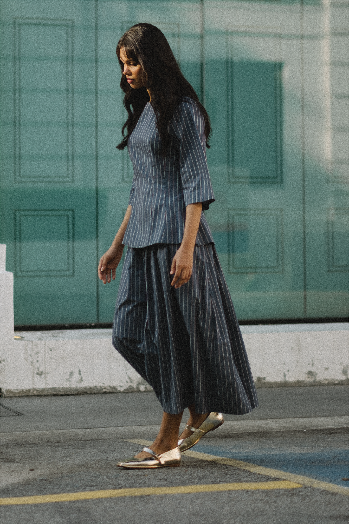 Your new staple in A-line midi form, rendered in cotton. Features a half elastic waistband.