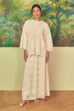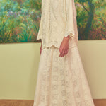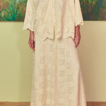 A bias cut skirt, rendered in Cotton Crochet Lace. Fully lined in Cotton.