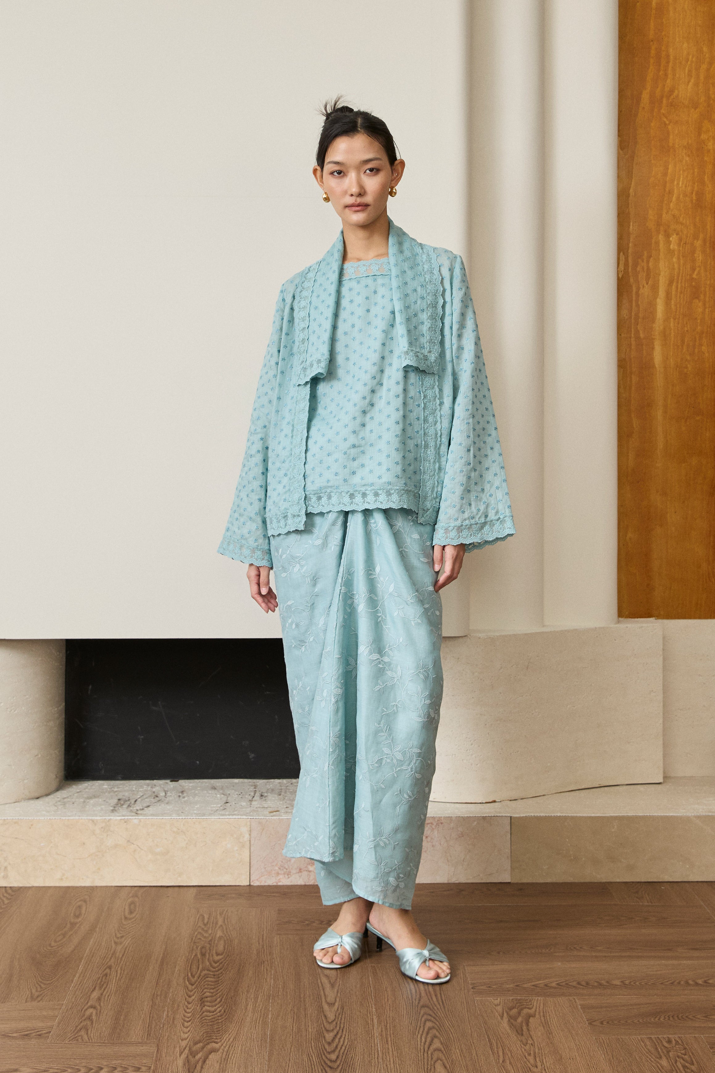 Amelie 2-Piece Ramie Kebaya Top in Dusty Blue