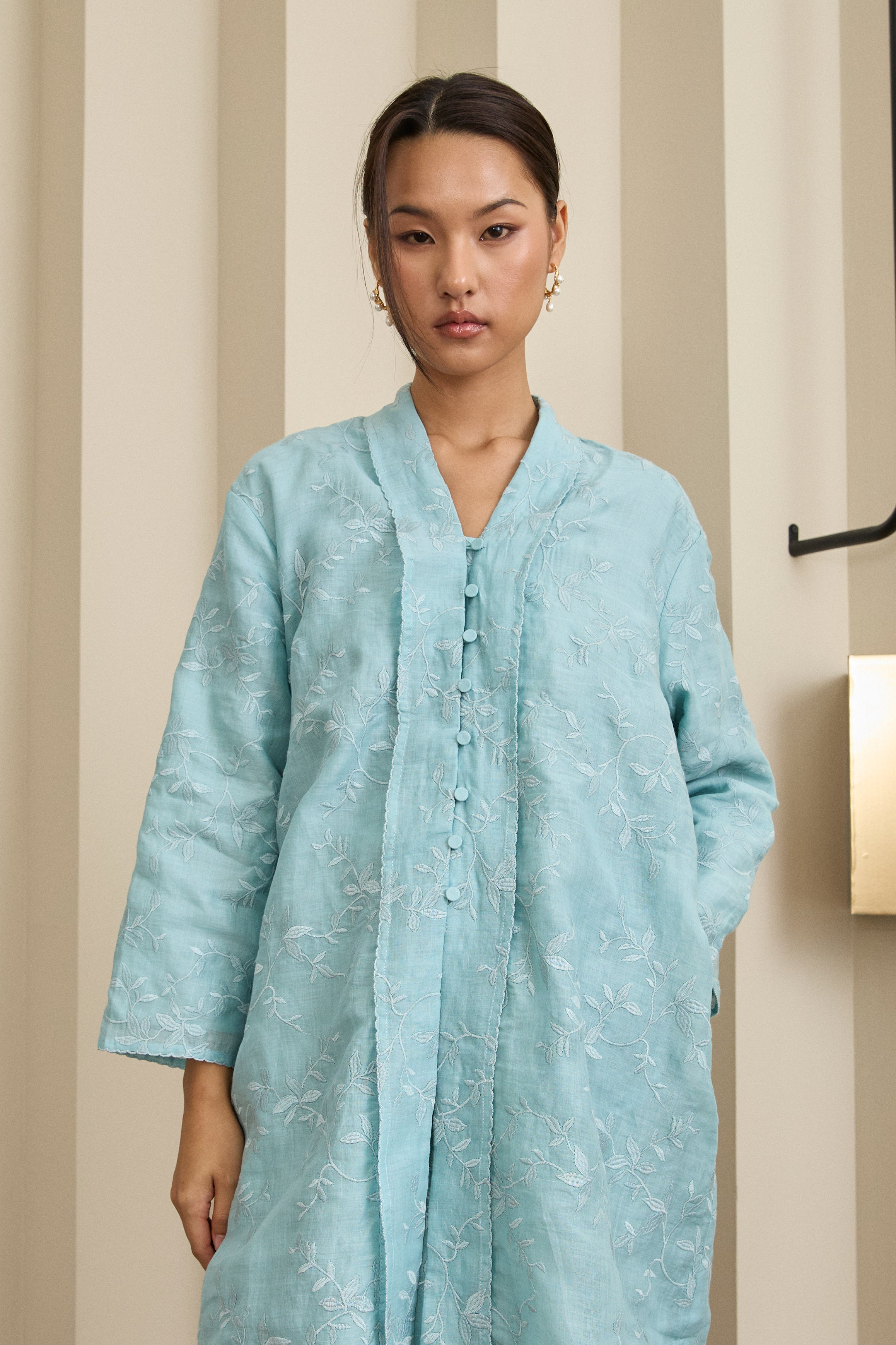 Midsummer 2-Piece Ramie Kebaya Top in Seafoam