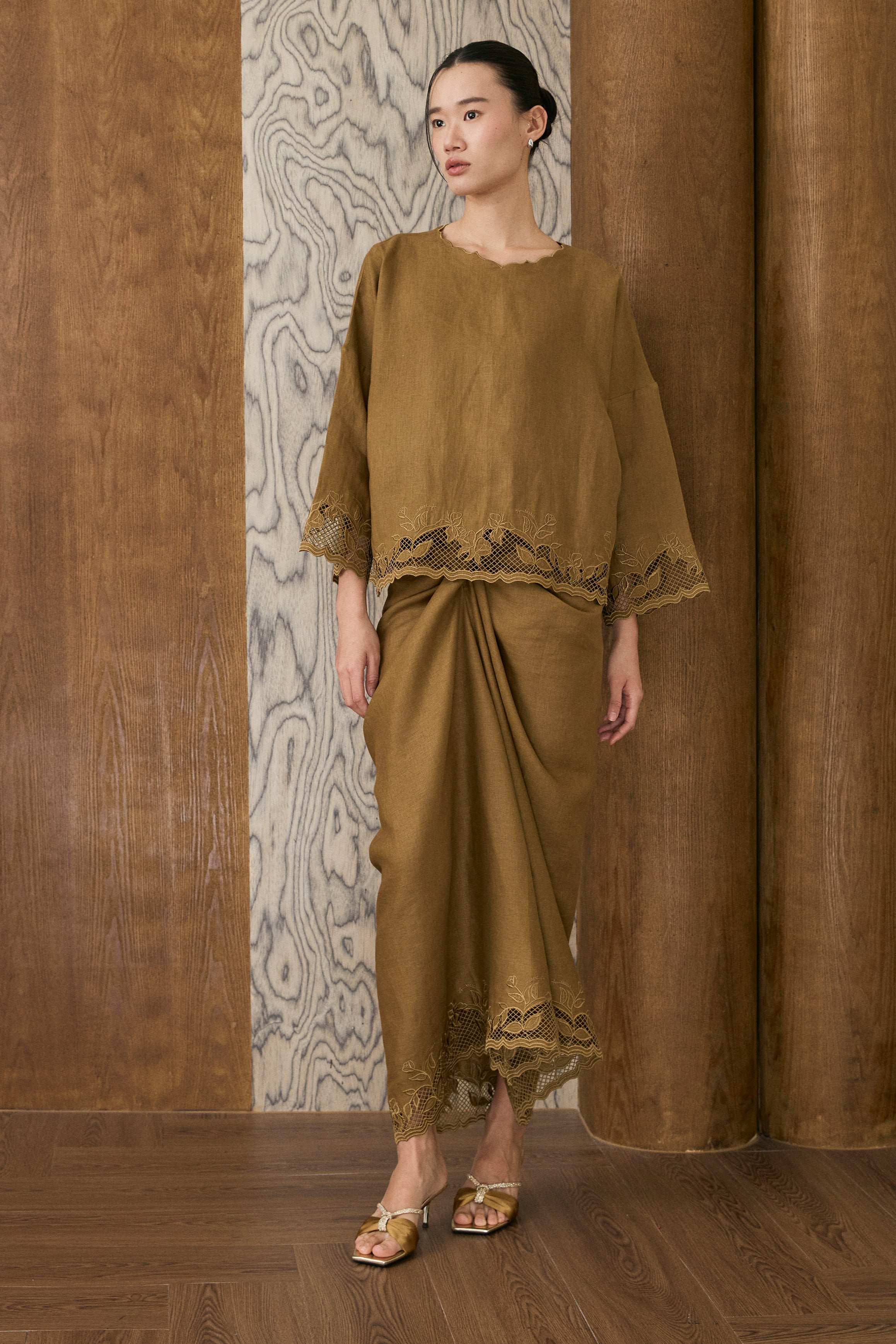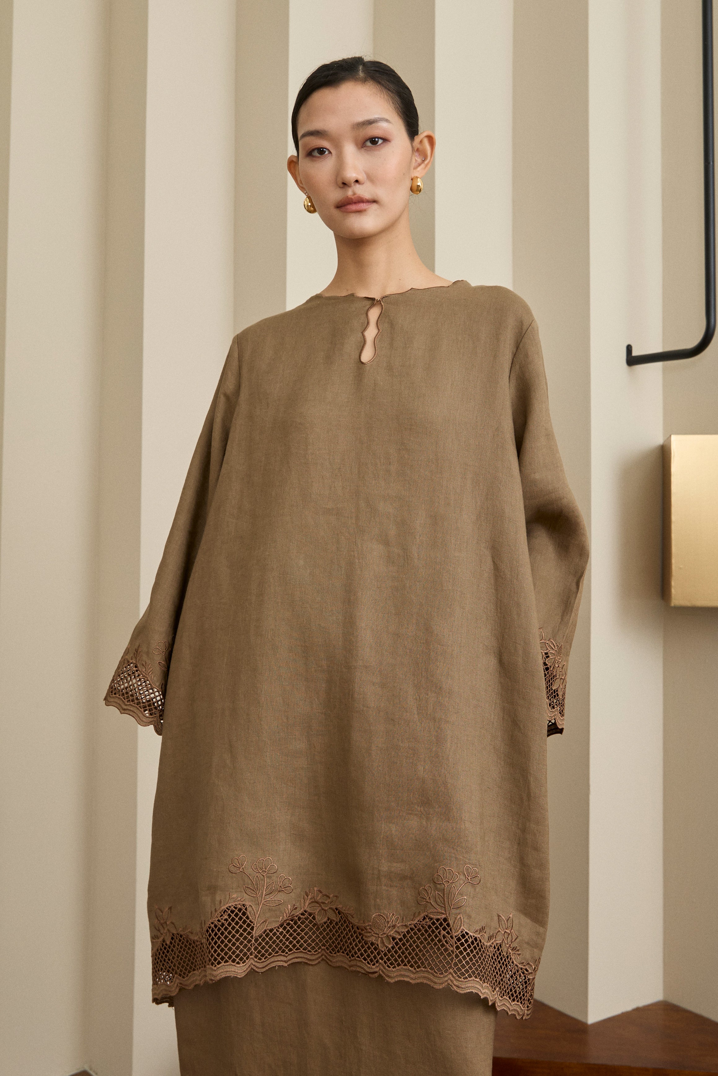 Khalisa Linen Kurung Set in Pecan