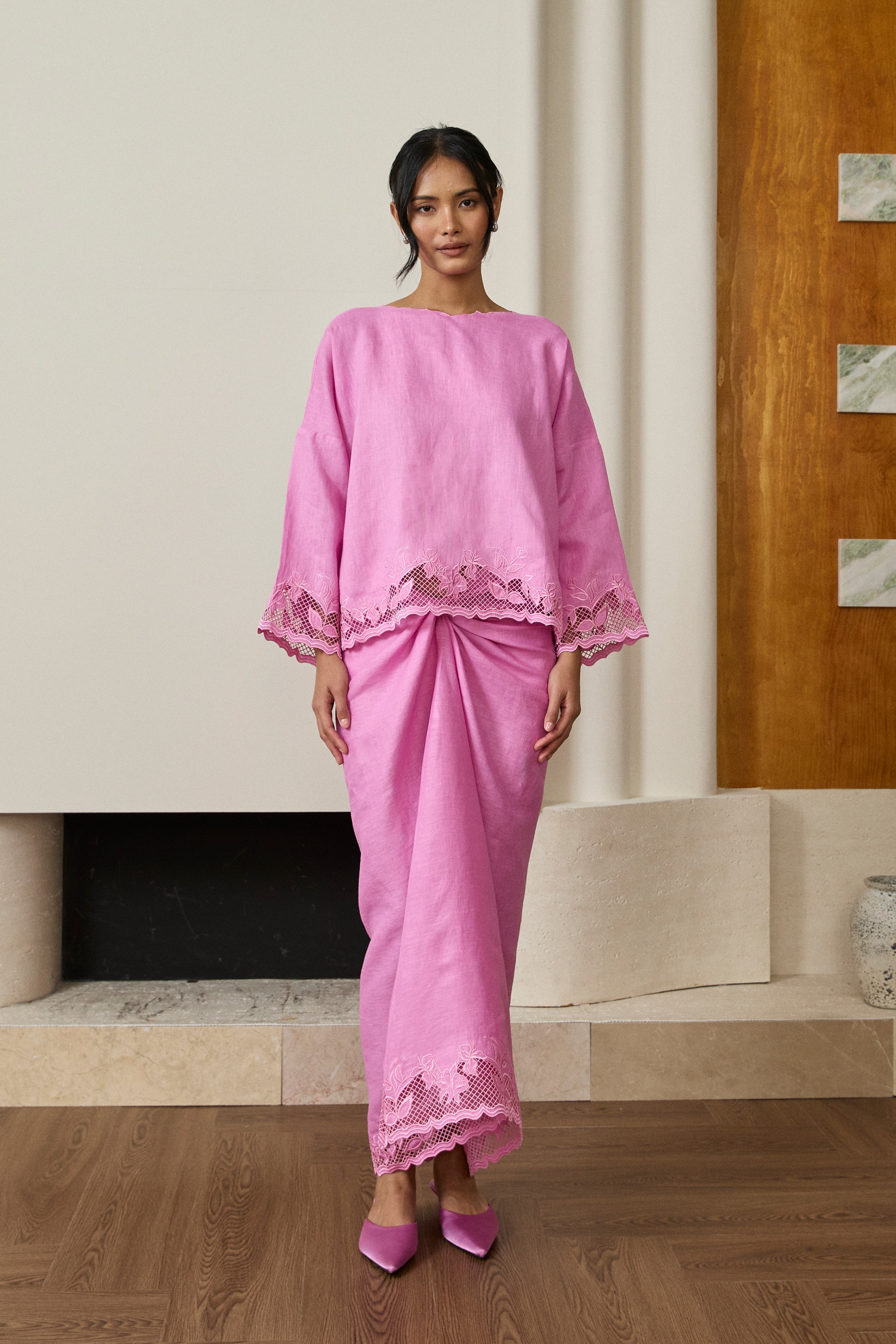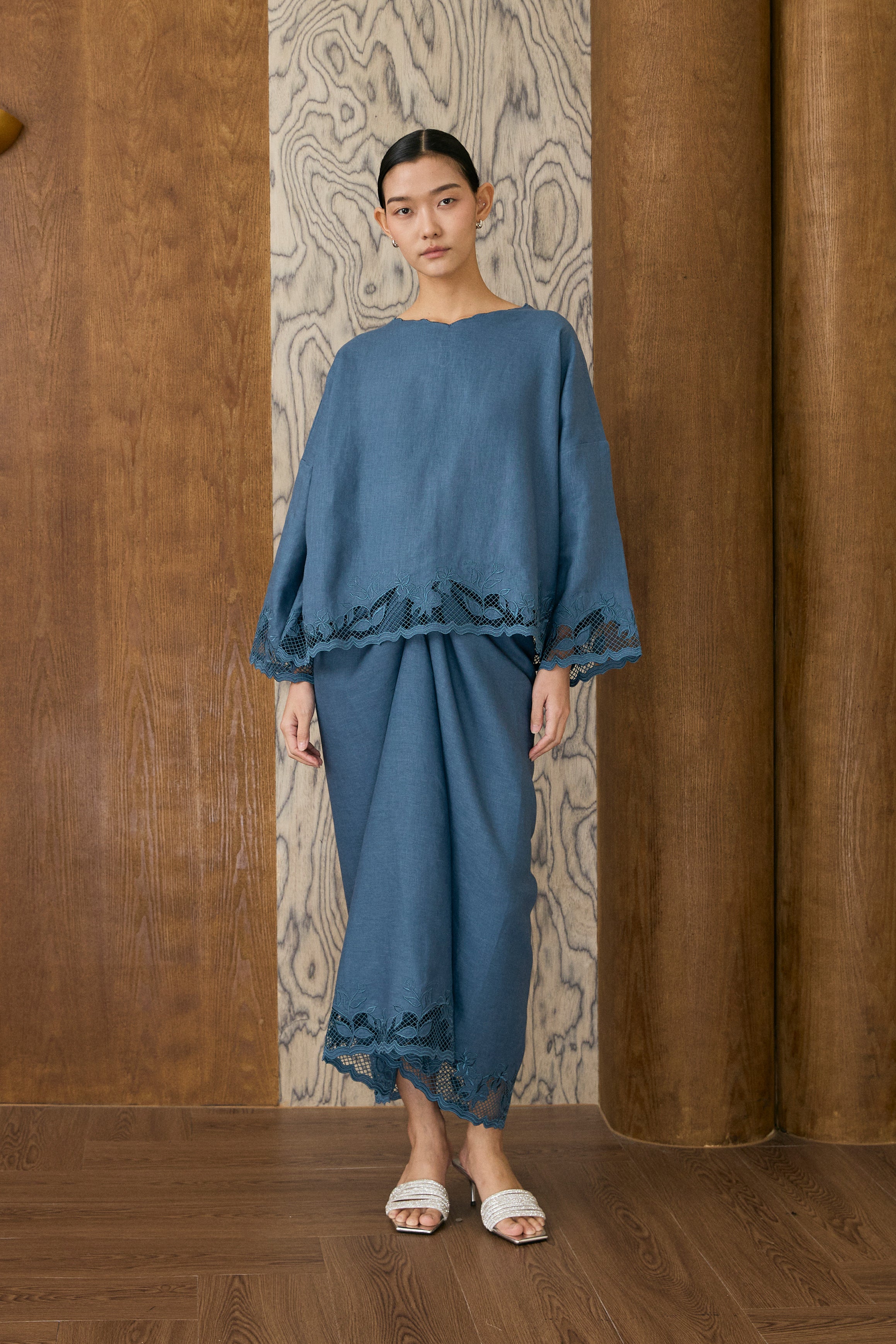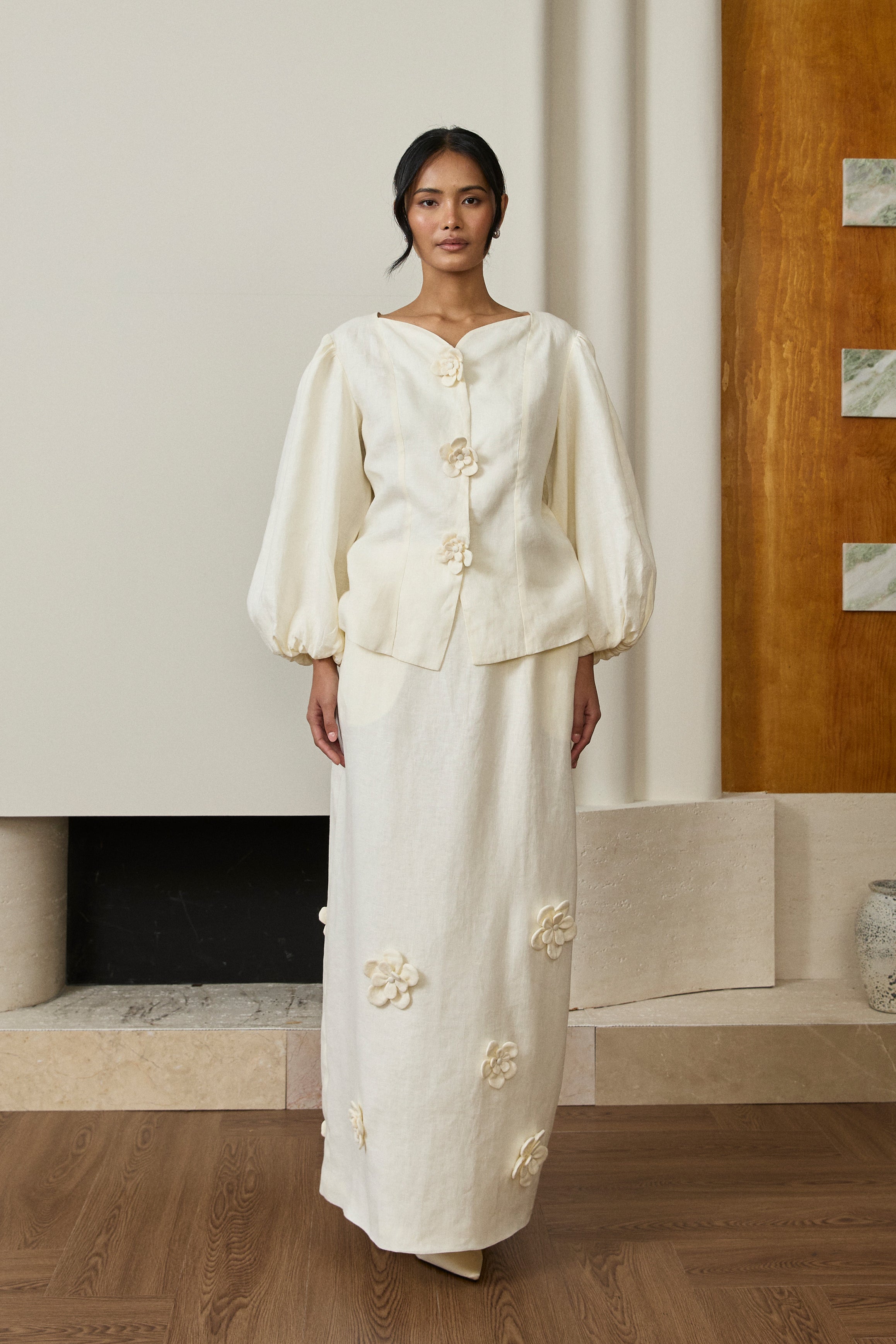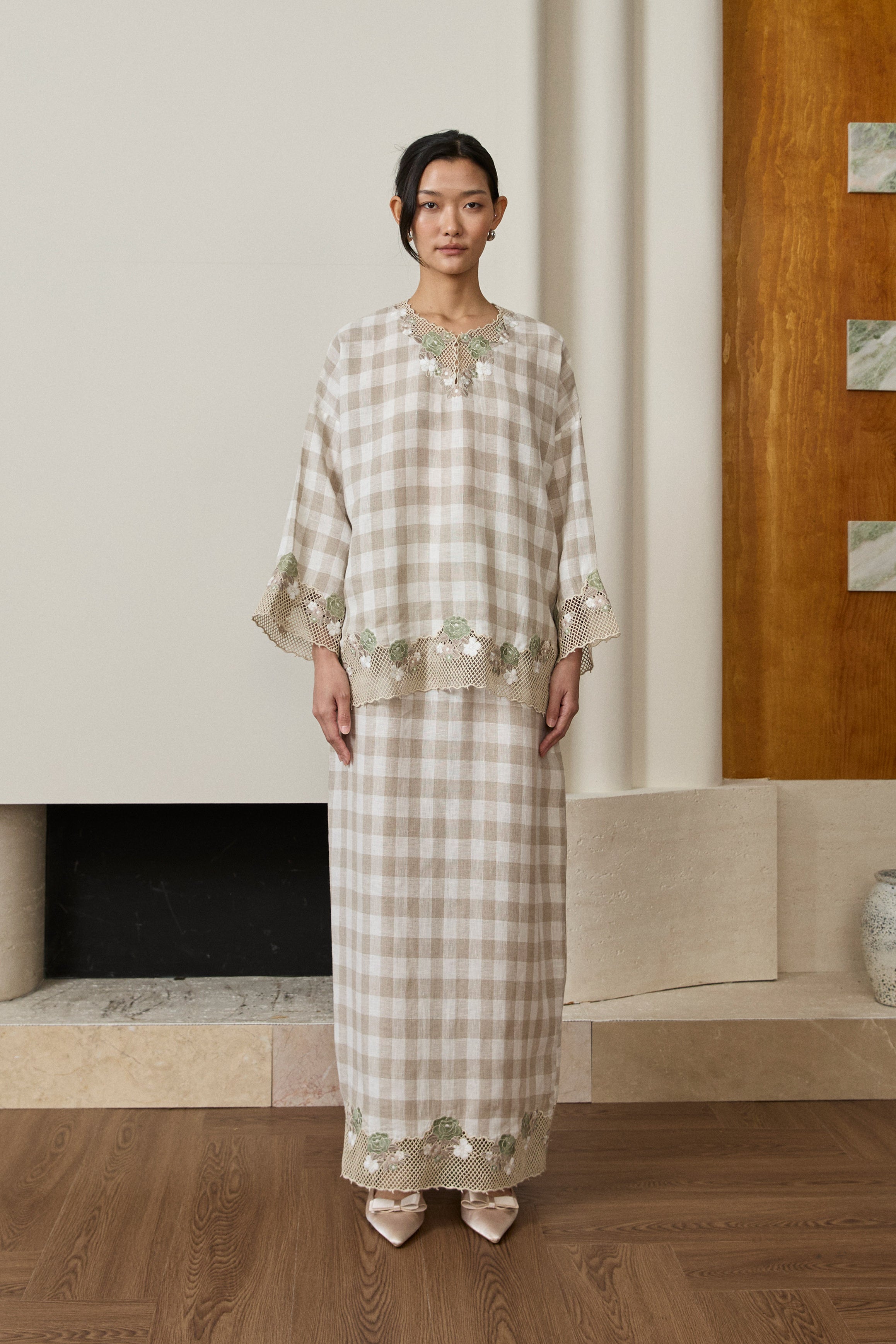 Camille Linen Kebaya Set in Chantilly