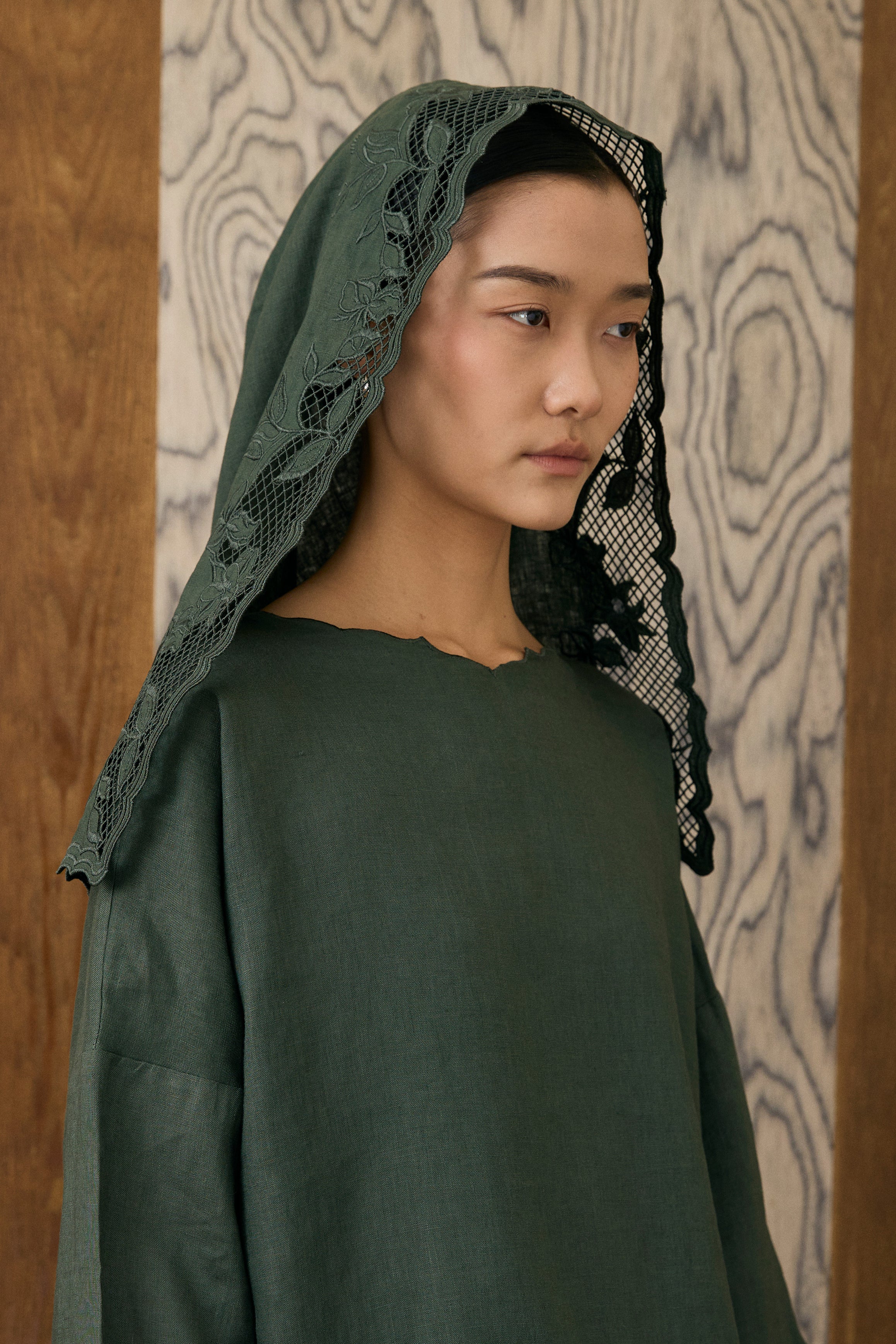 Khalisa Linen Short Head Piece in Evergreen