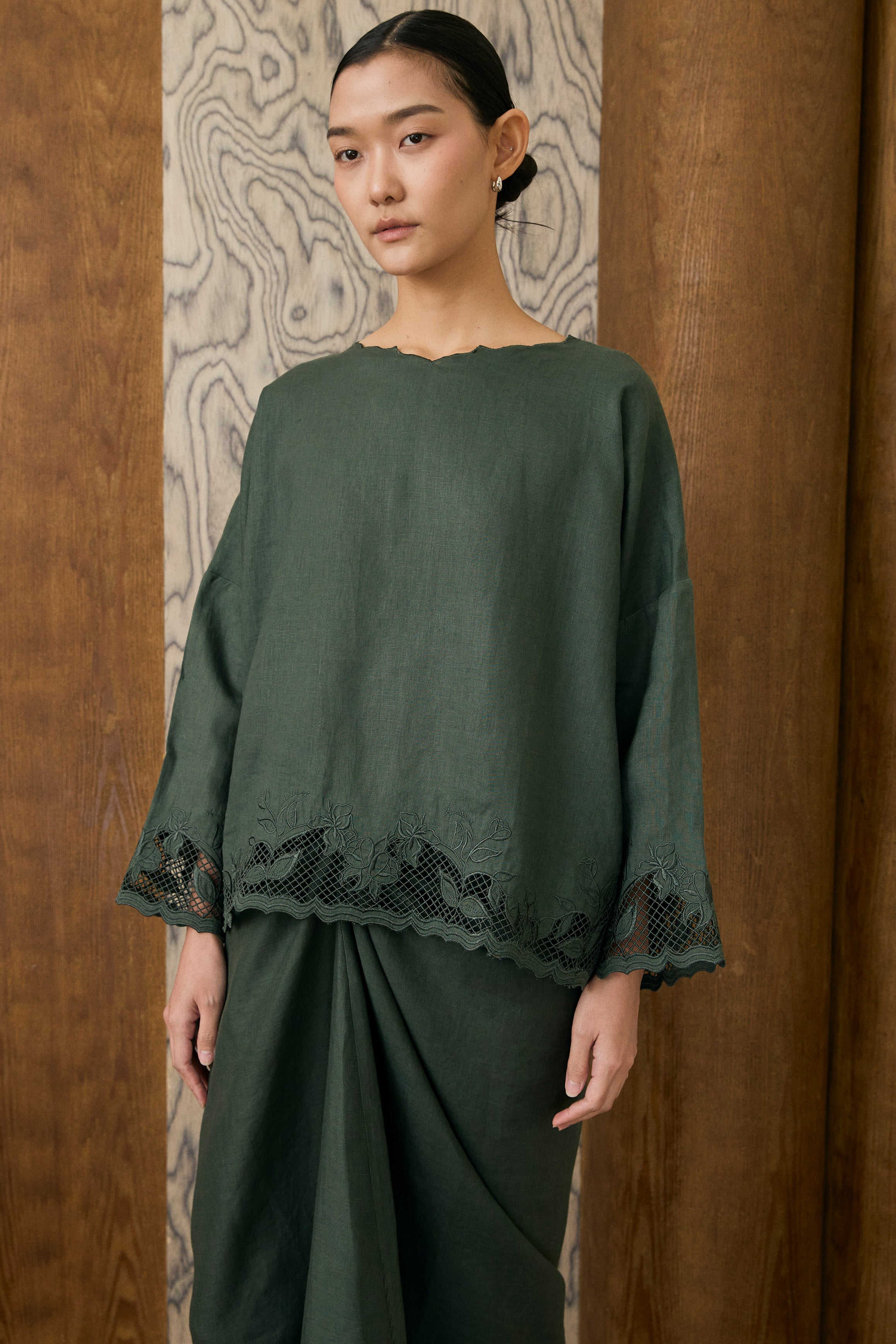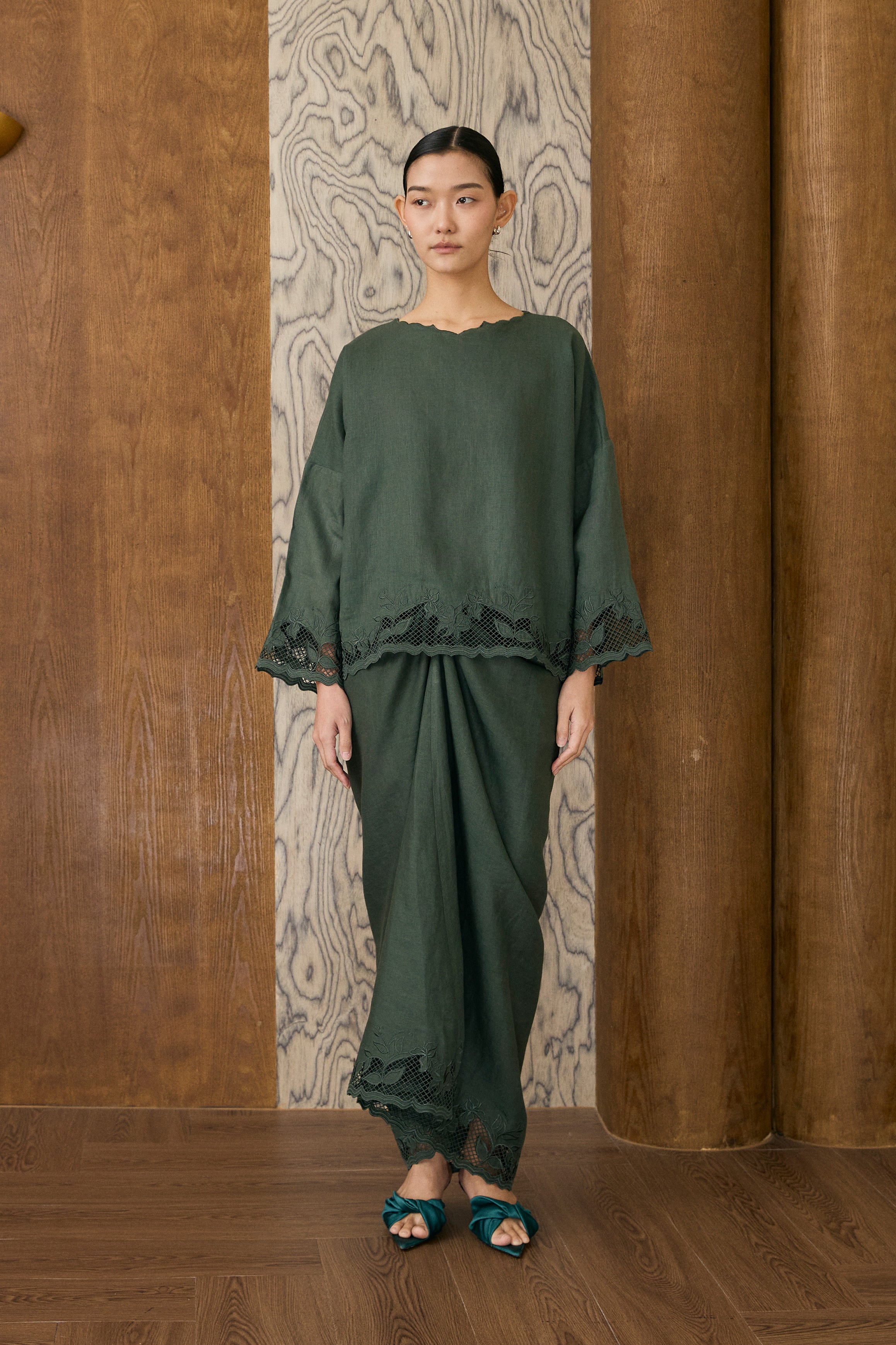 Khalisa Linen Kedah Set in Evergreen