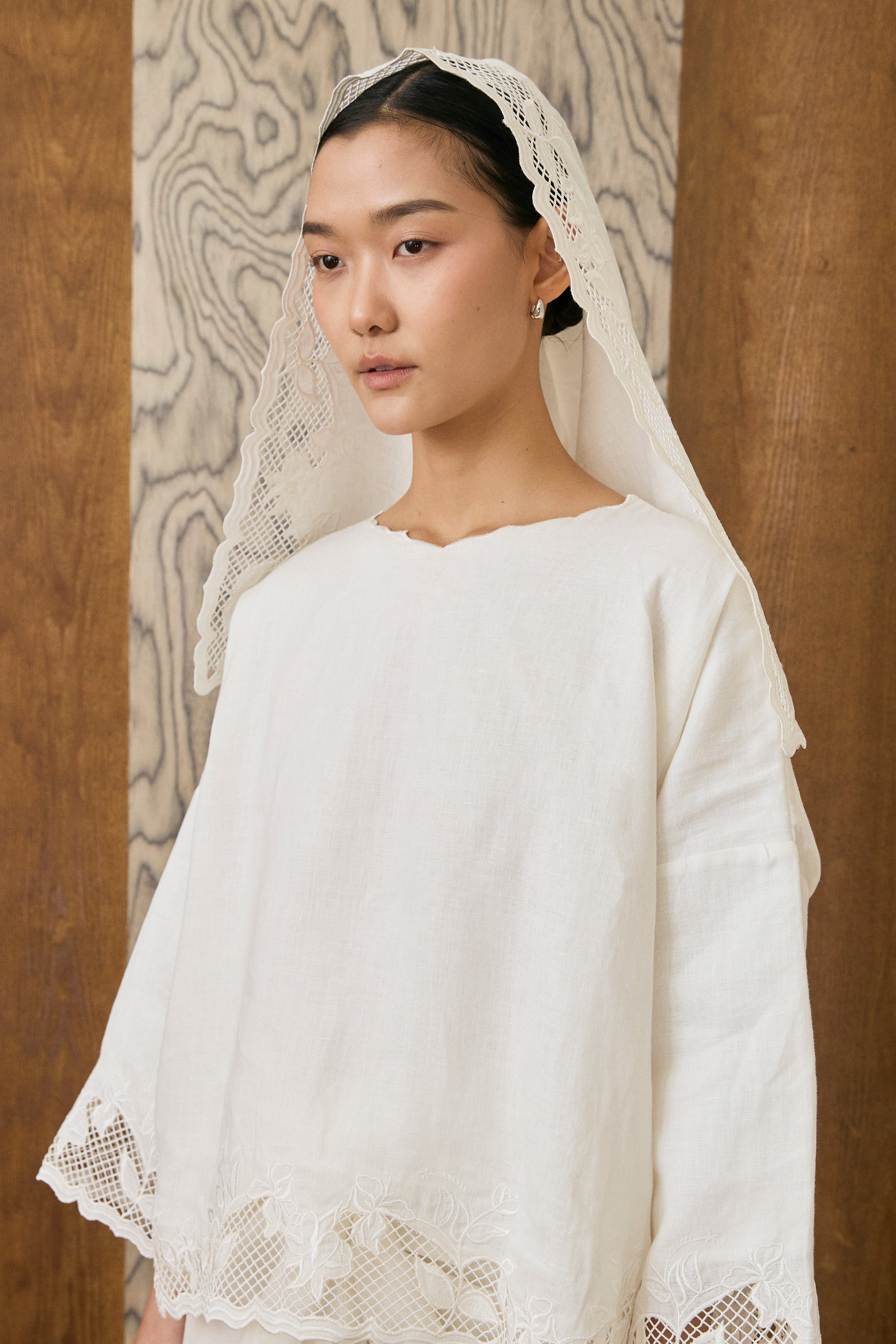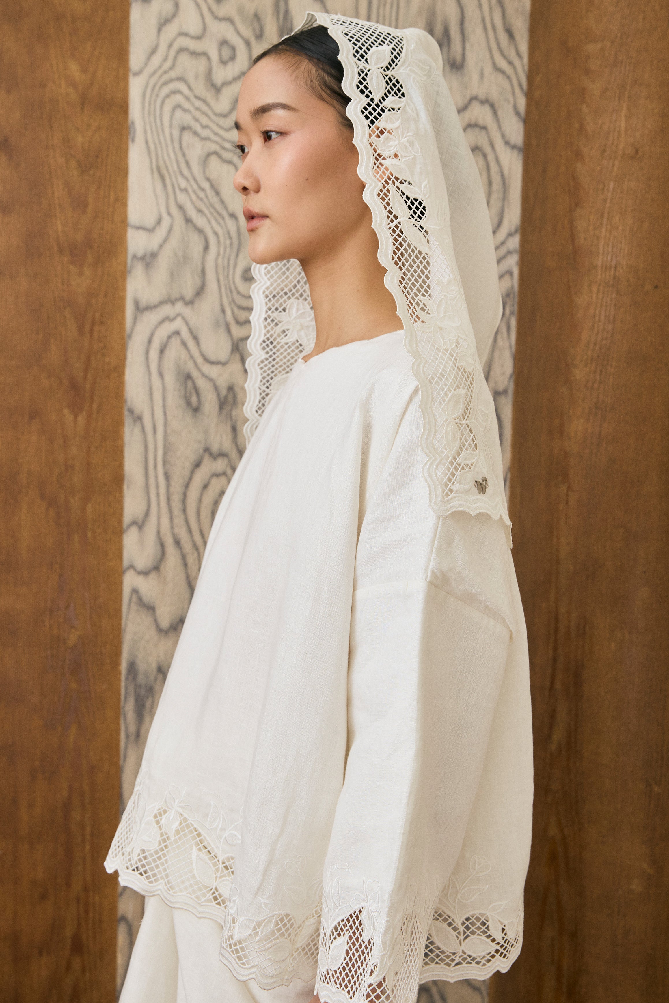 Khalisa Linen Short Head Piece in Porcelain