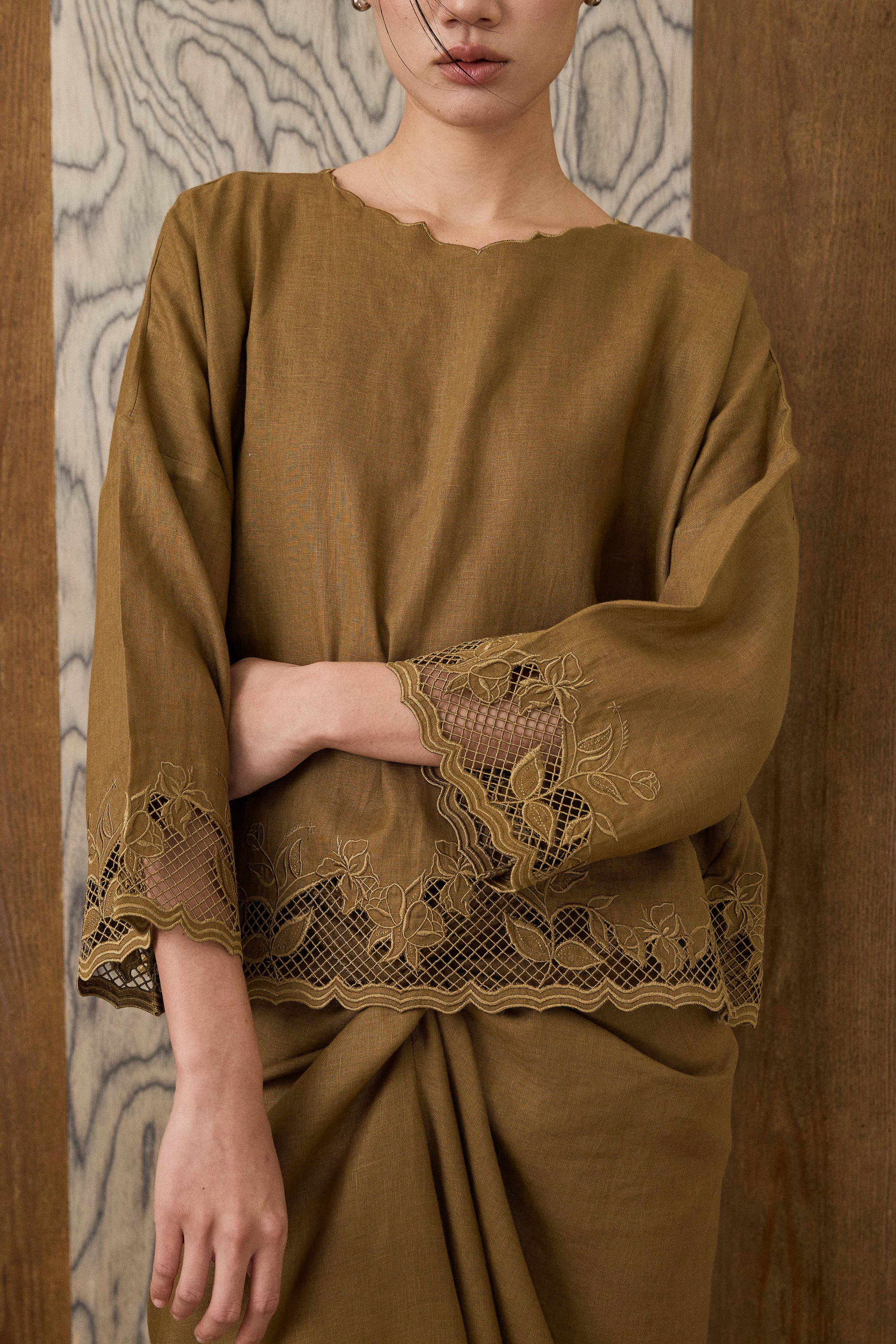 Khalisa Linen Short Head Piece in Olive