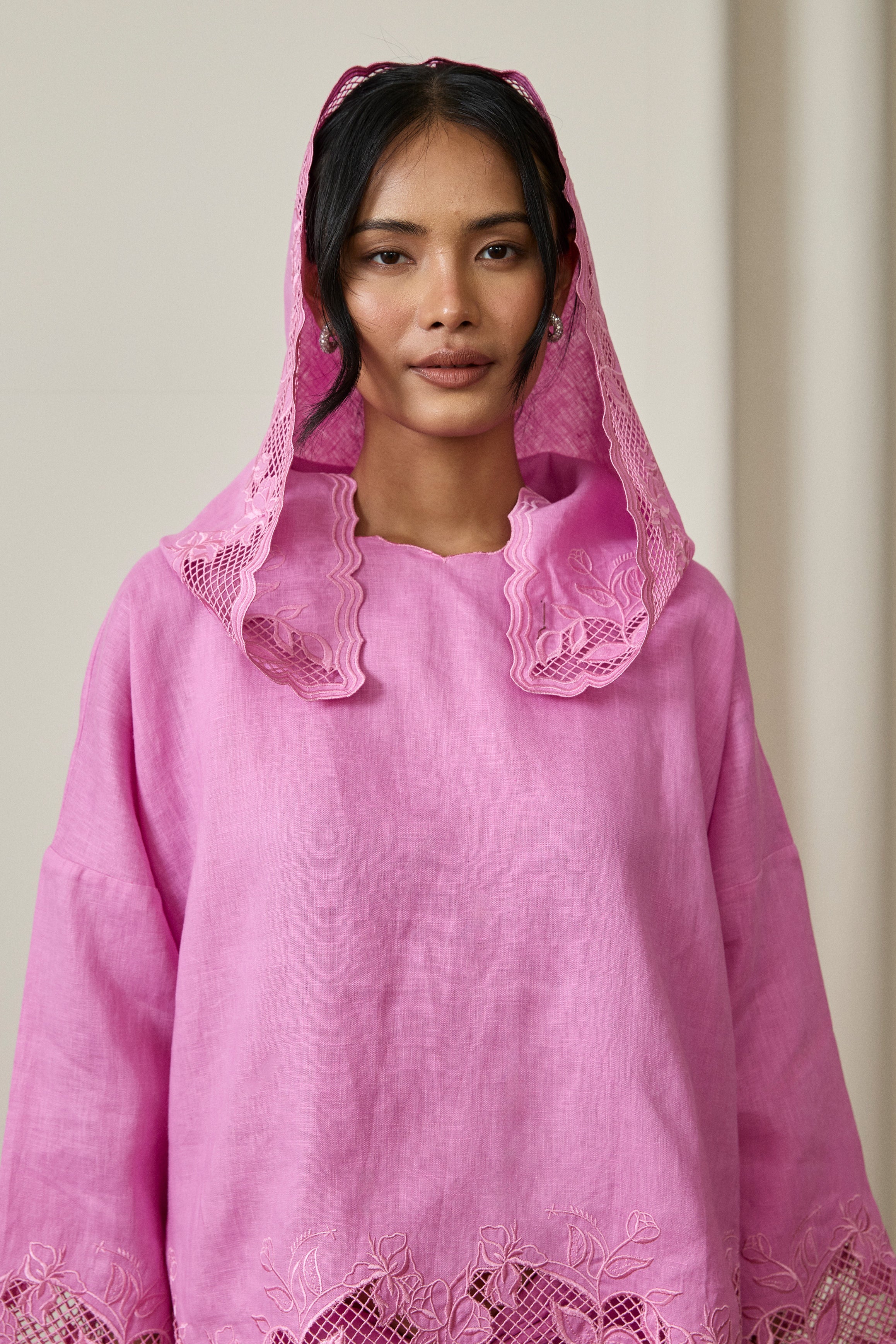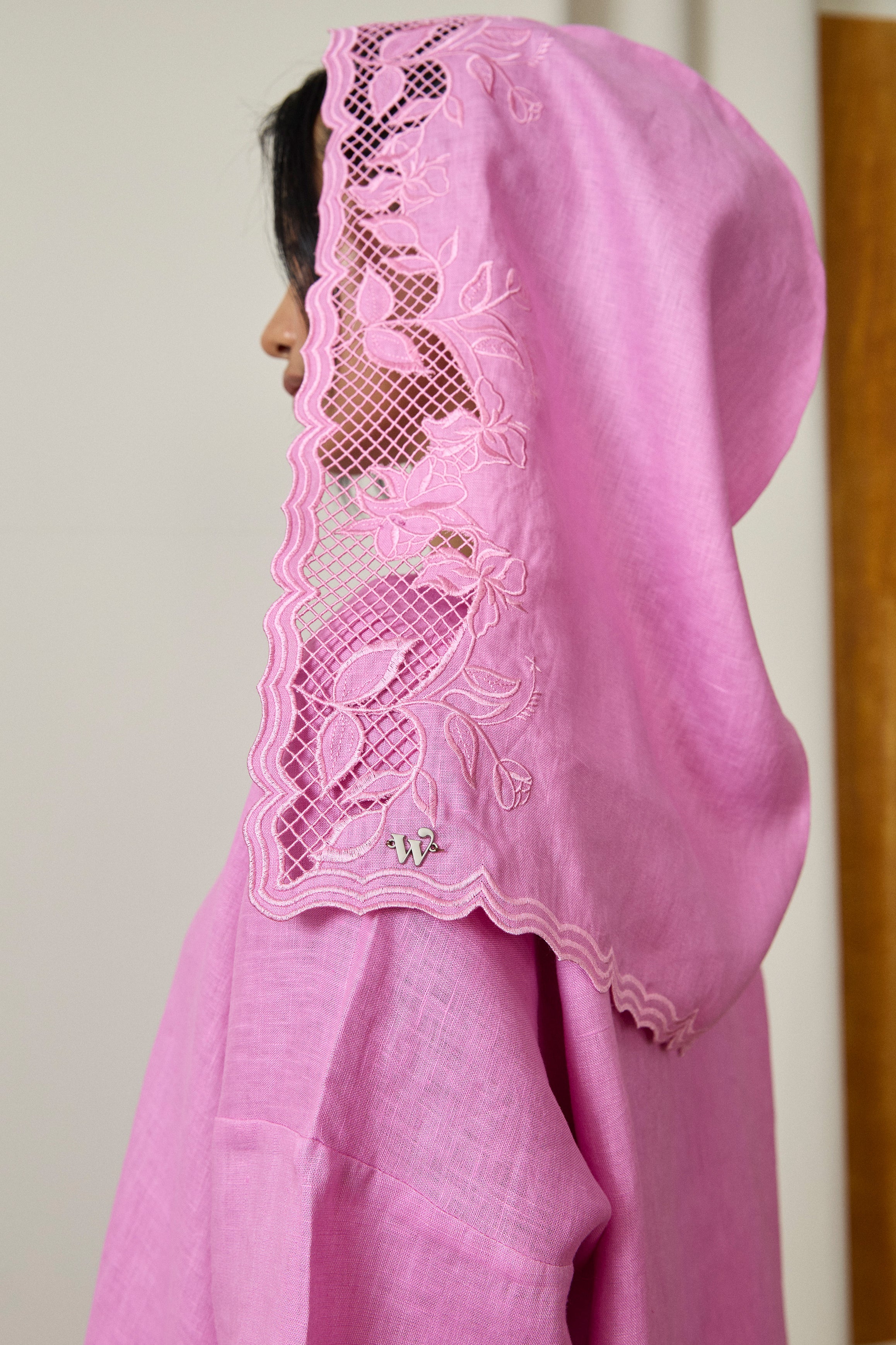 Khalisa Linen Short Head Piece in Fuchsia