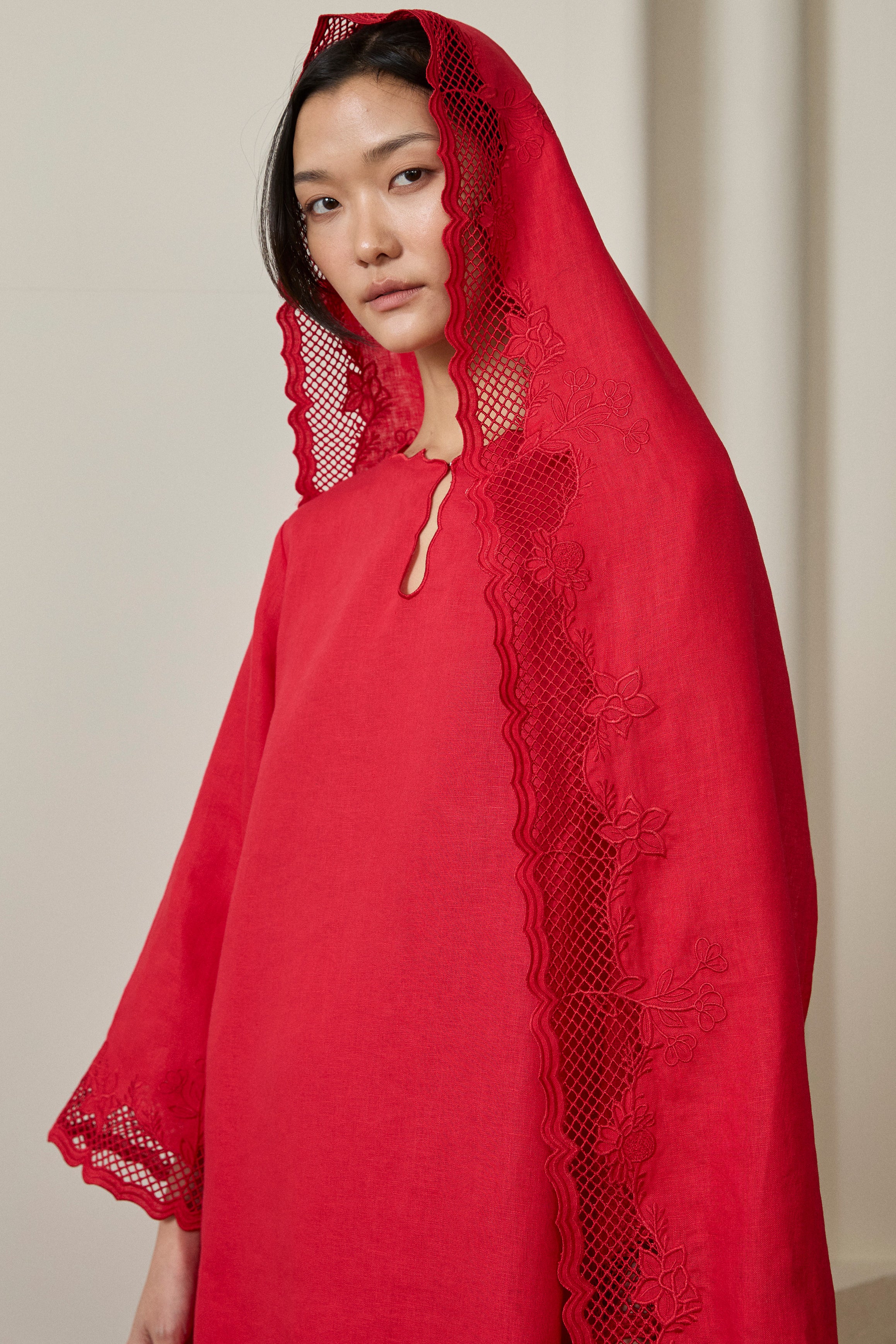 Khalisa Linen Long Head Piece in Rouge