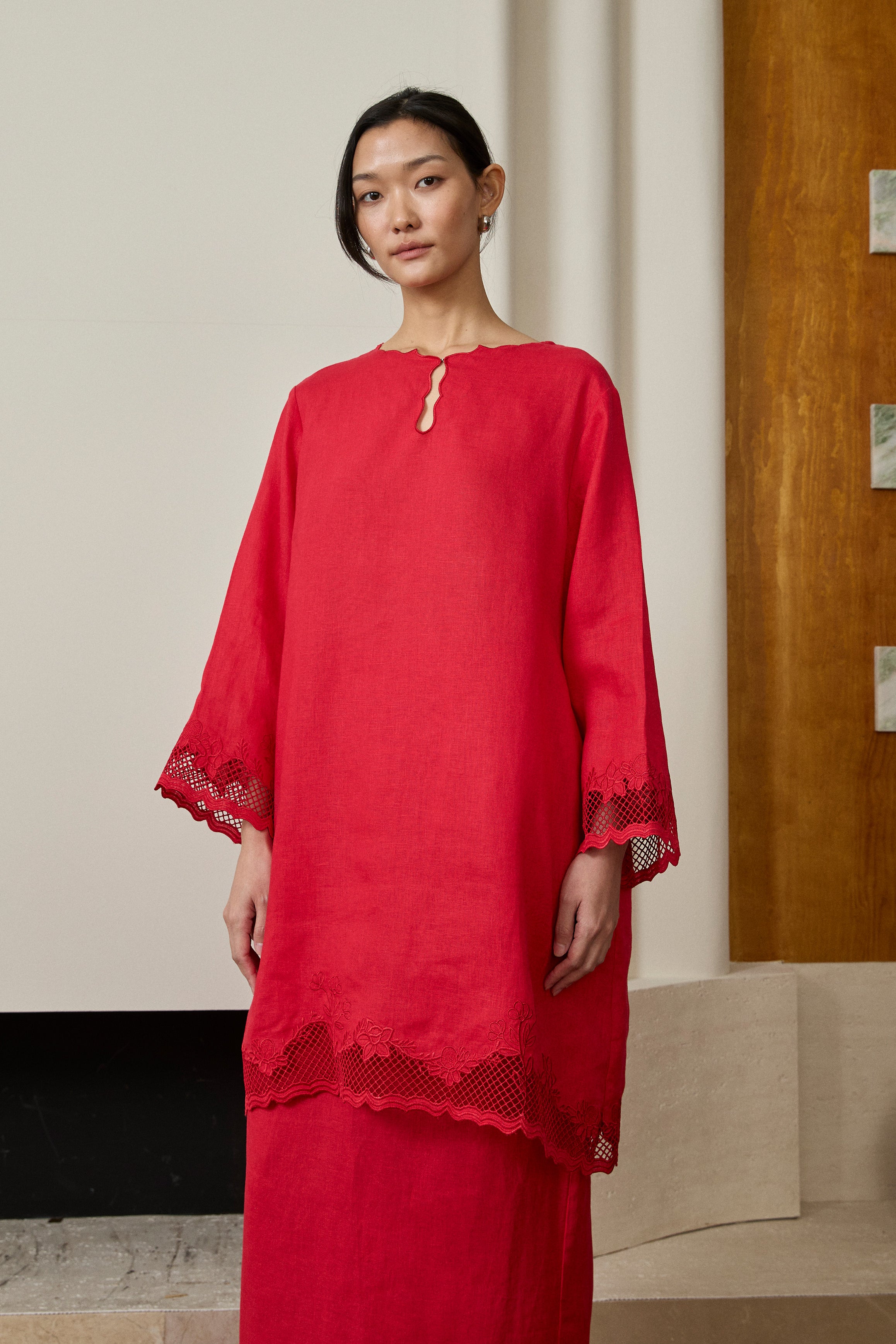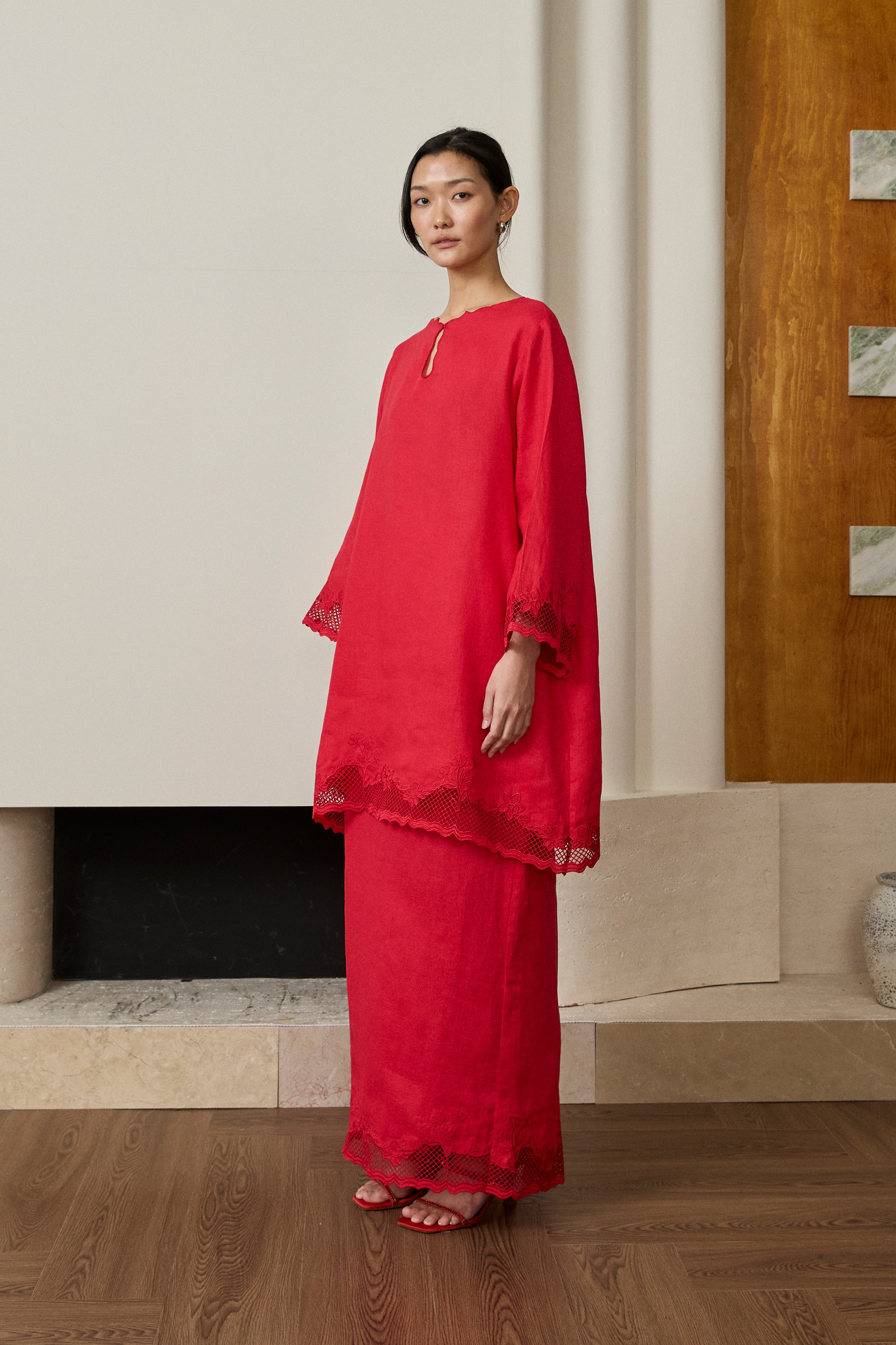 Khalisa Linen Kurung Set in Rouge