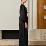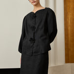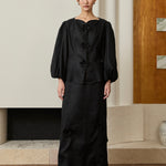 Camille Linen Kebaya Set in Noir