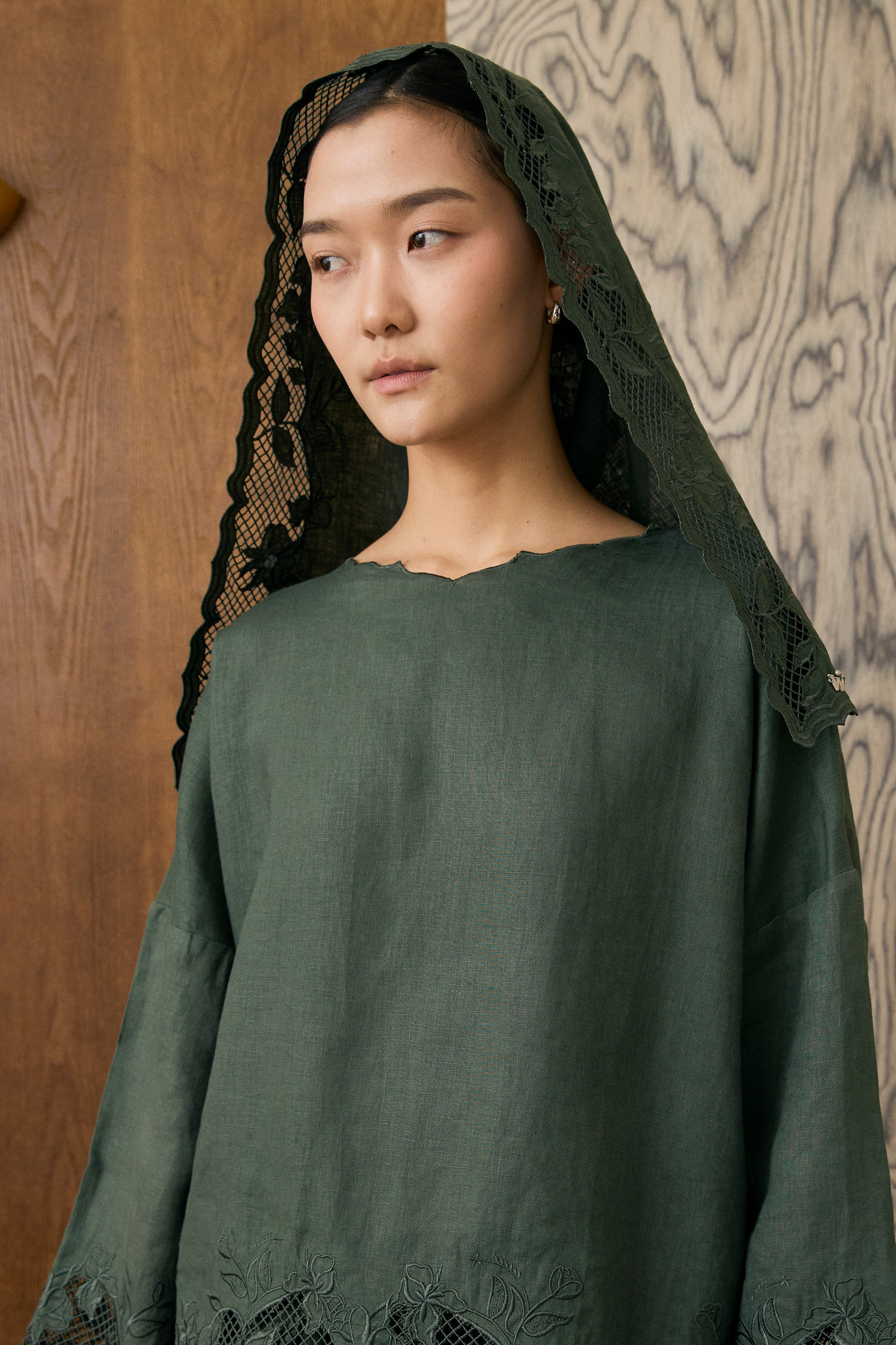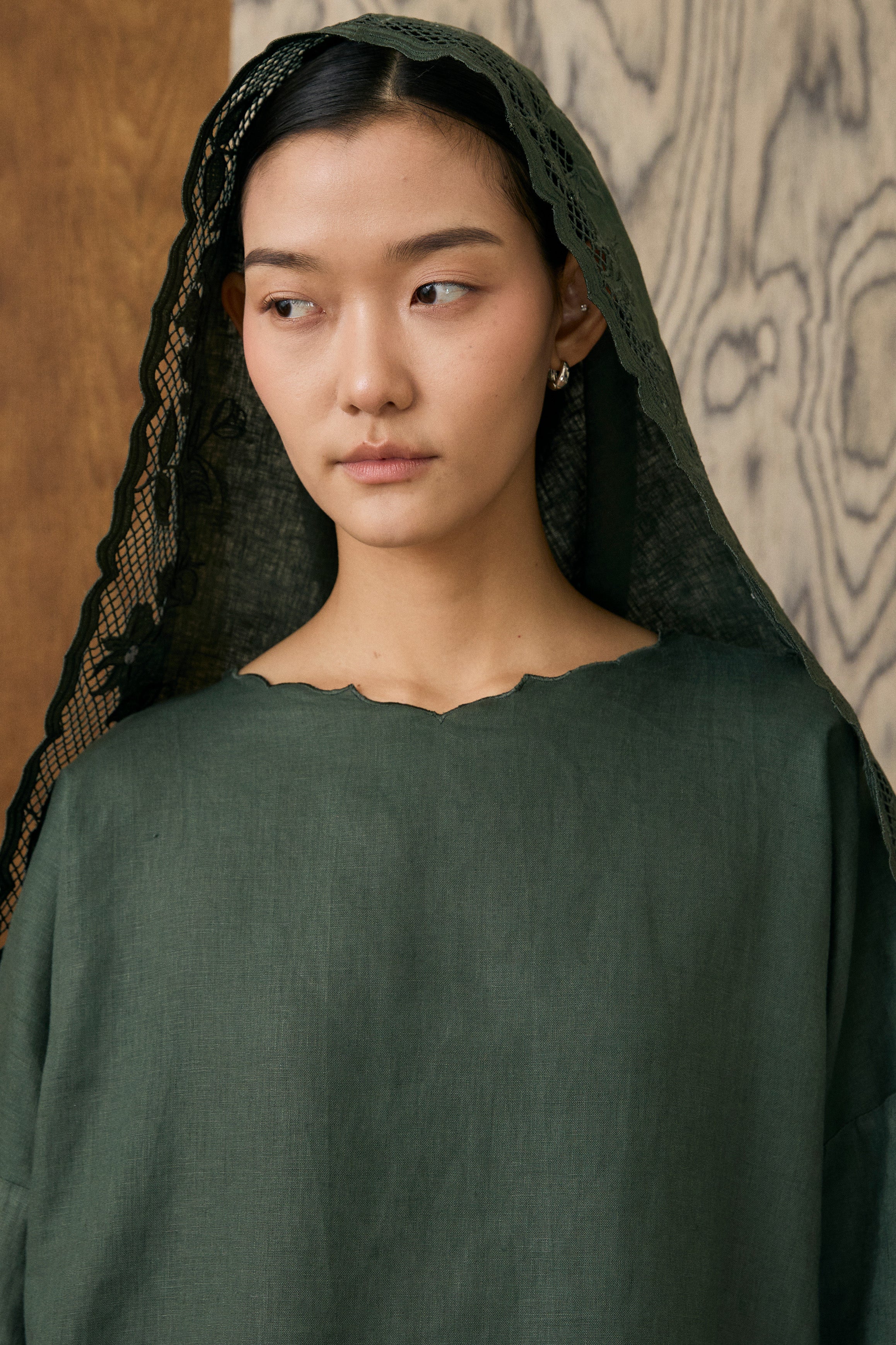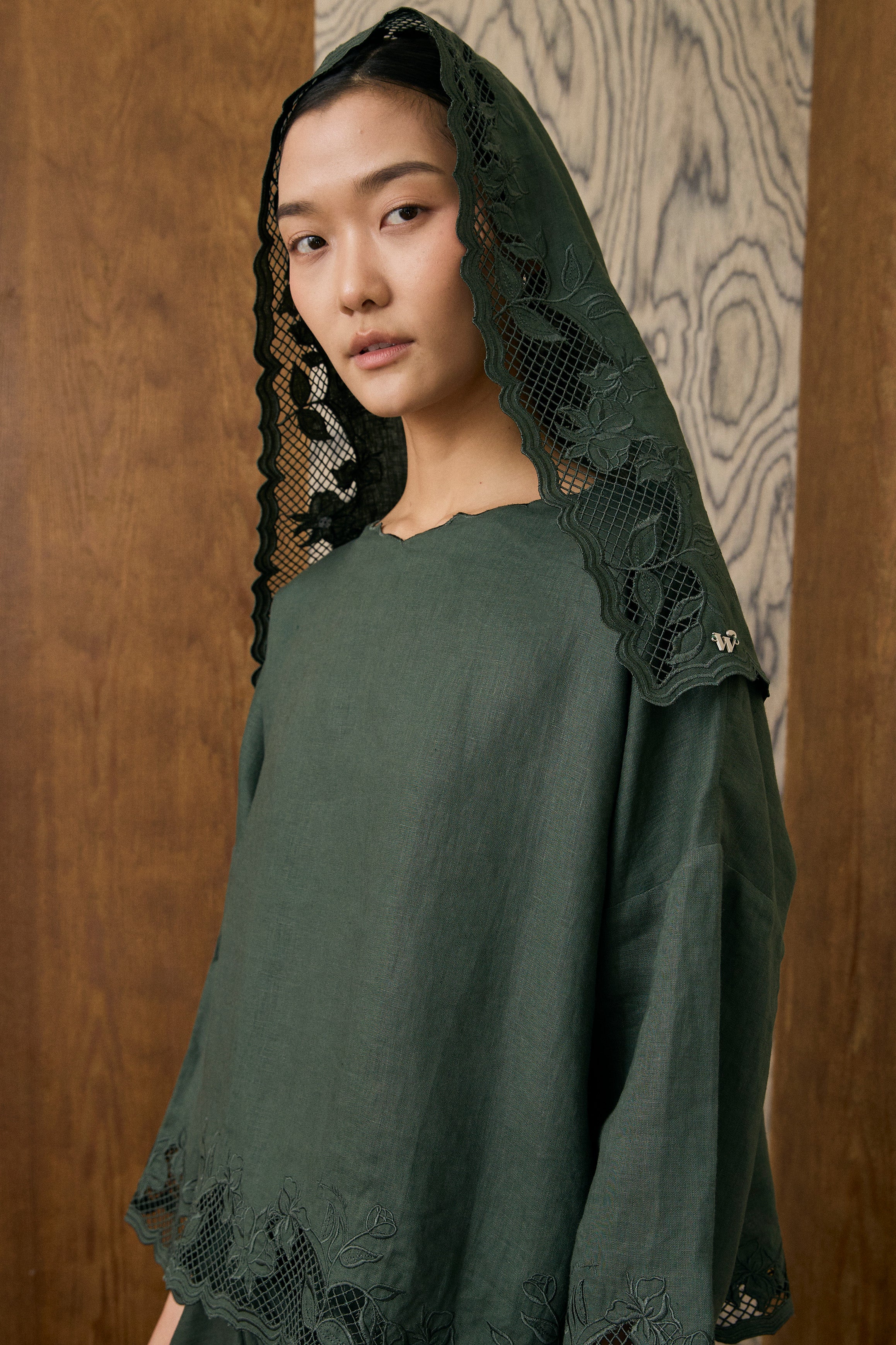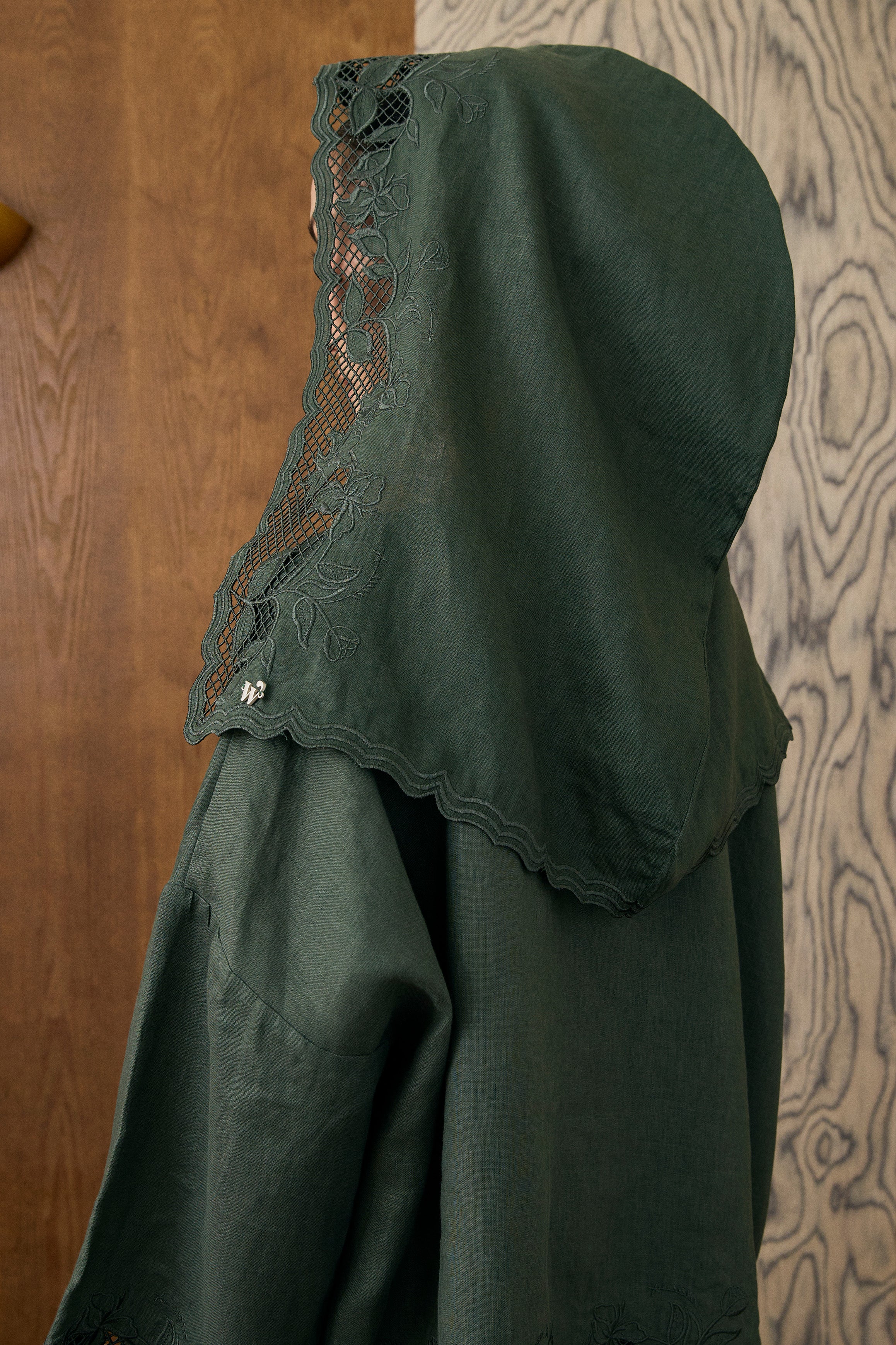 Khalisa Linen Short Head Piece in Evergreen