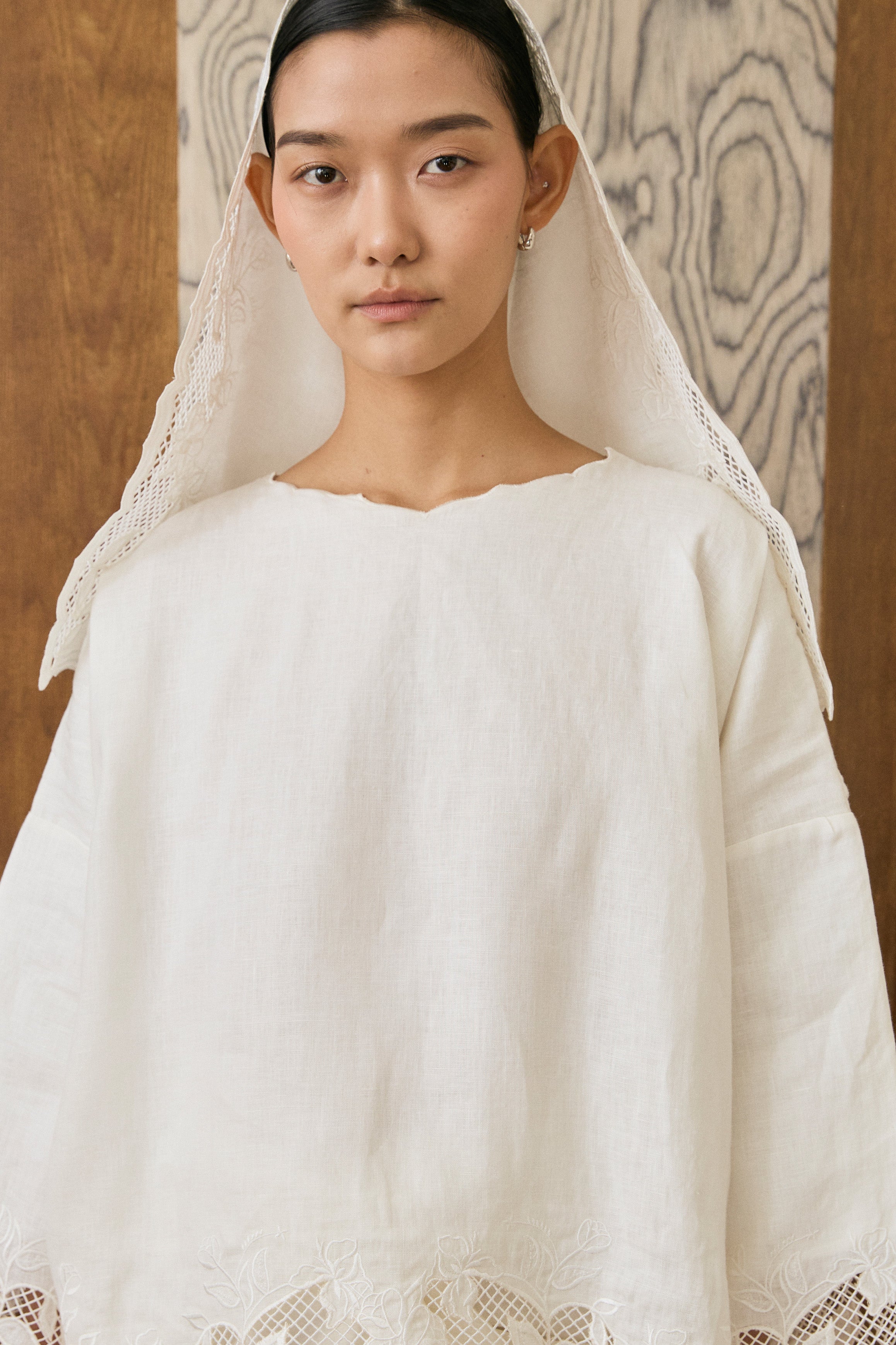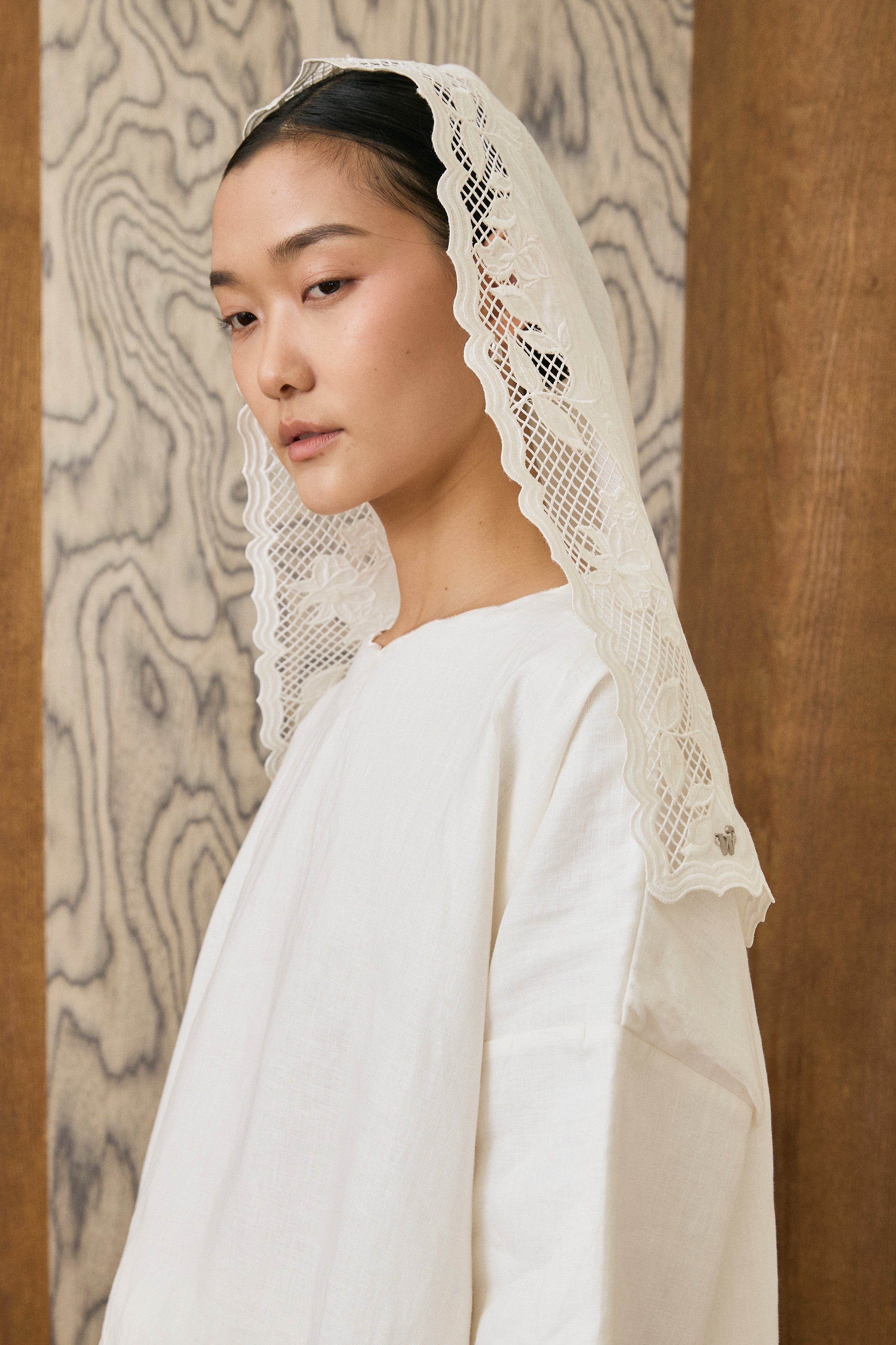 Khalisa Linen Short Head Piece in Porcelain