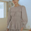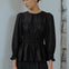 A shirred bustier blouse with a peplum, balancing structure and ease. Rendered in linen and finished with smocked wristbands and a round neckline.