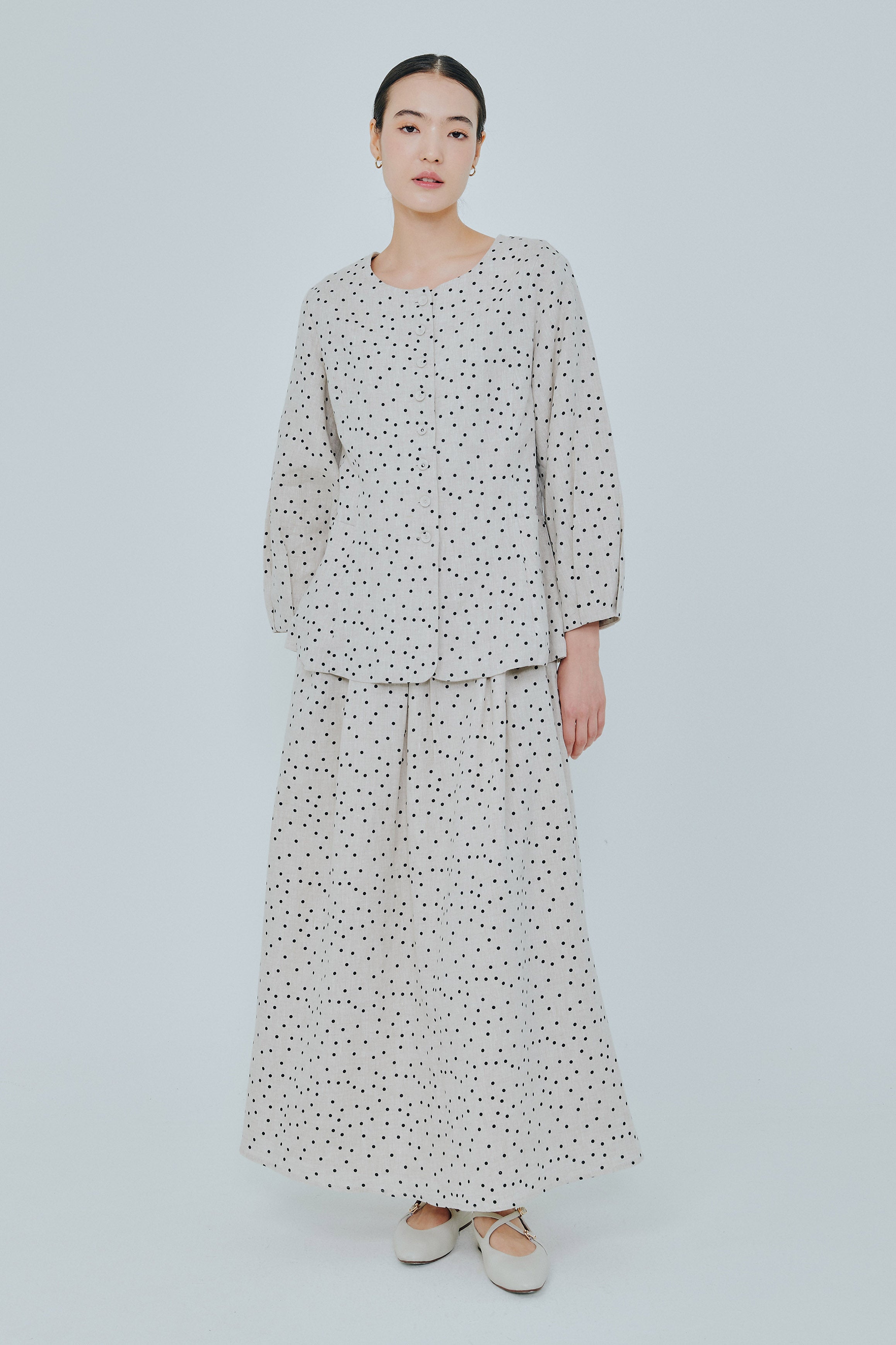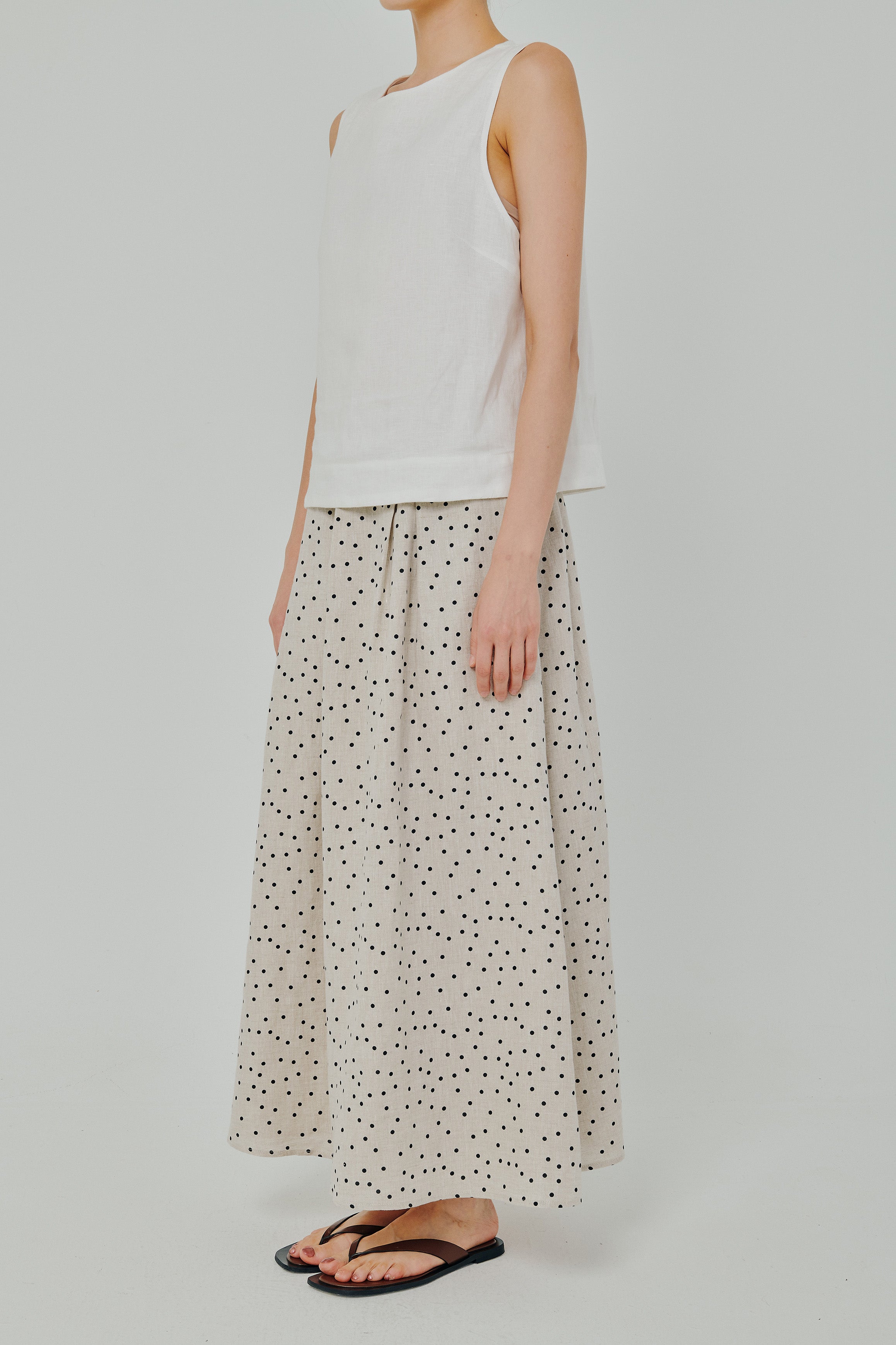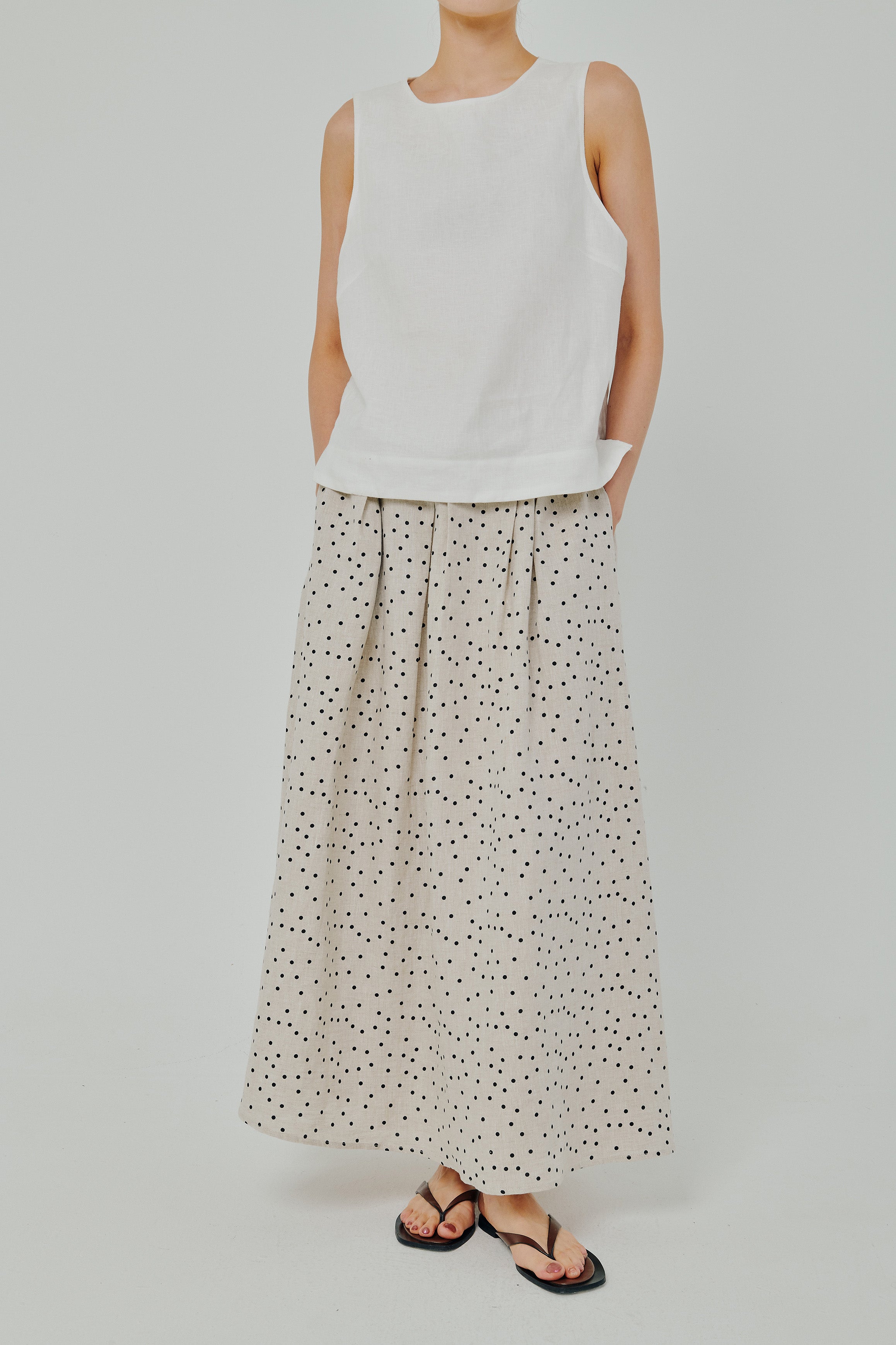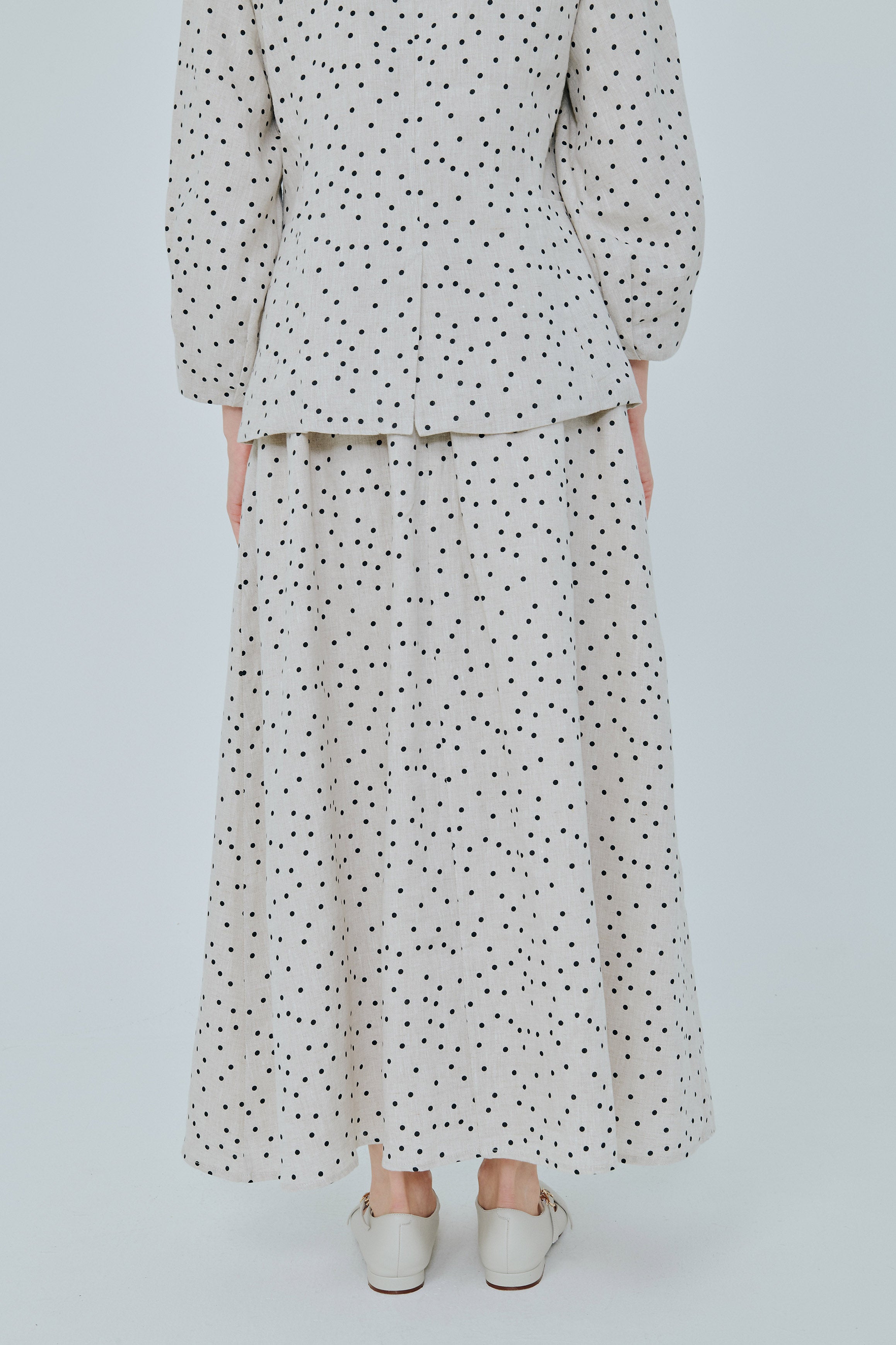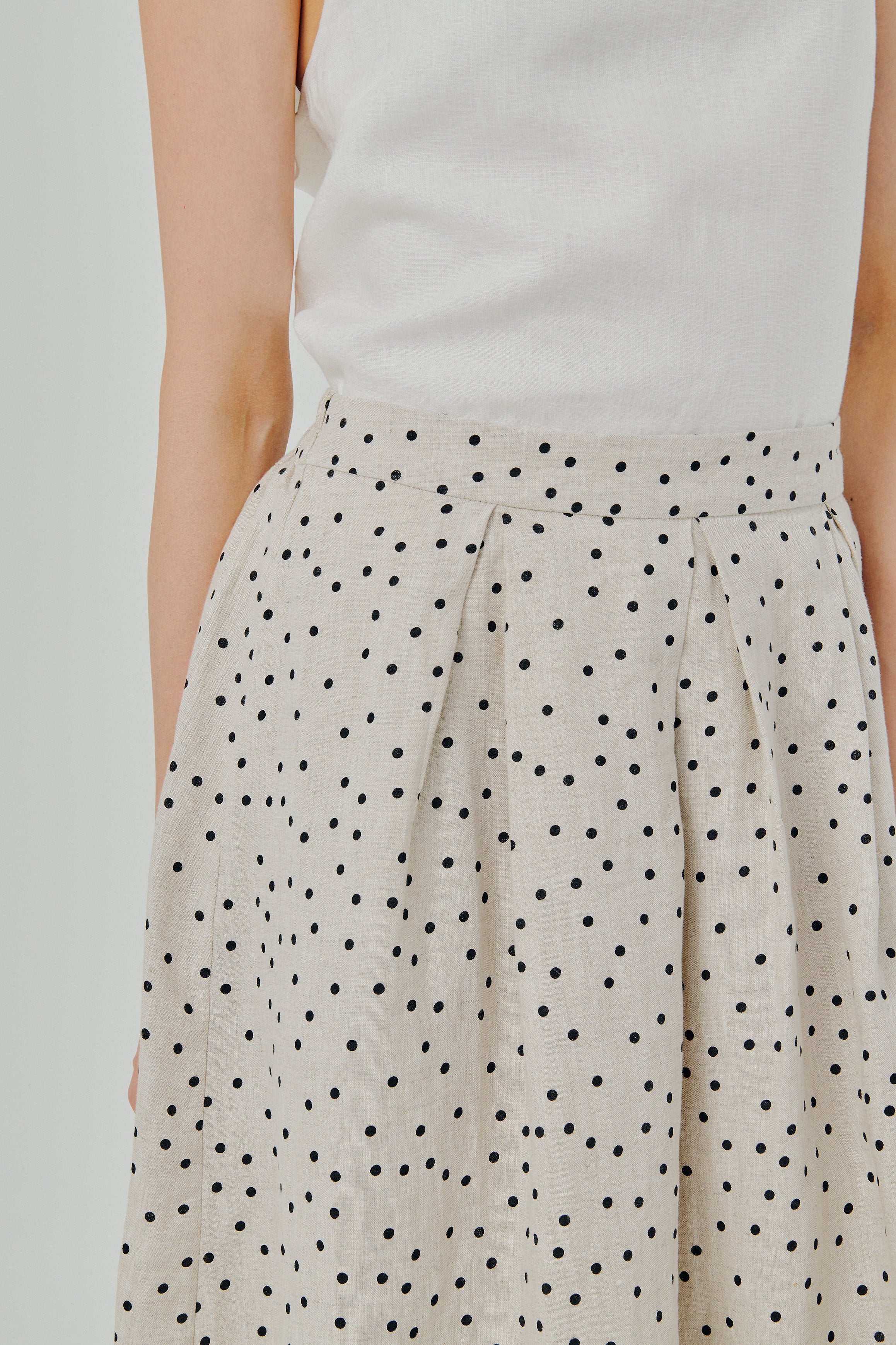 Curator Linen Pleated Maxi Skirt in Polka Dot