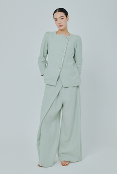A relaxed fit, with asymmetric front button closure and high square neckline. Rendered in linen, and lined in cotton.