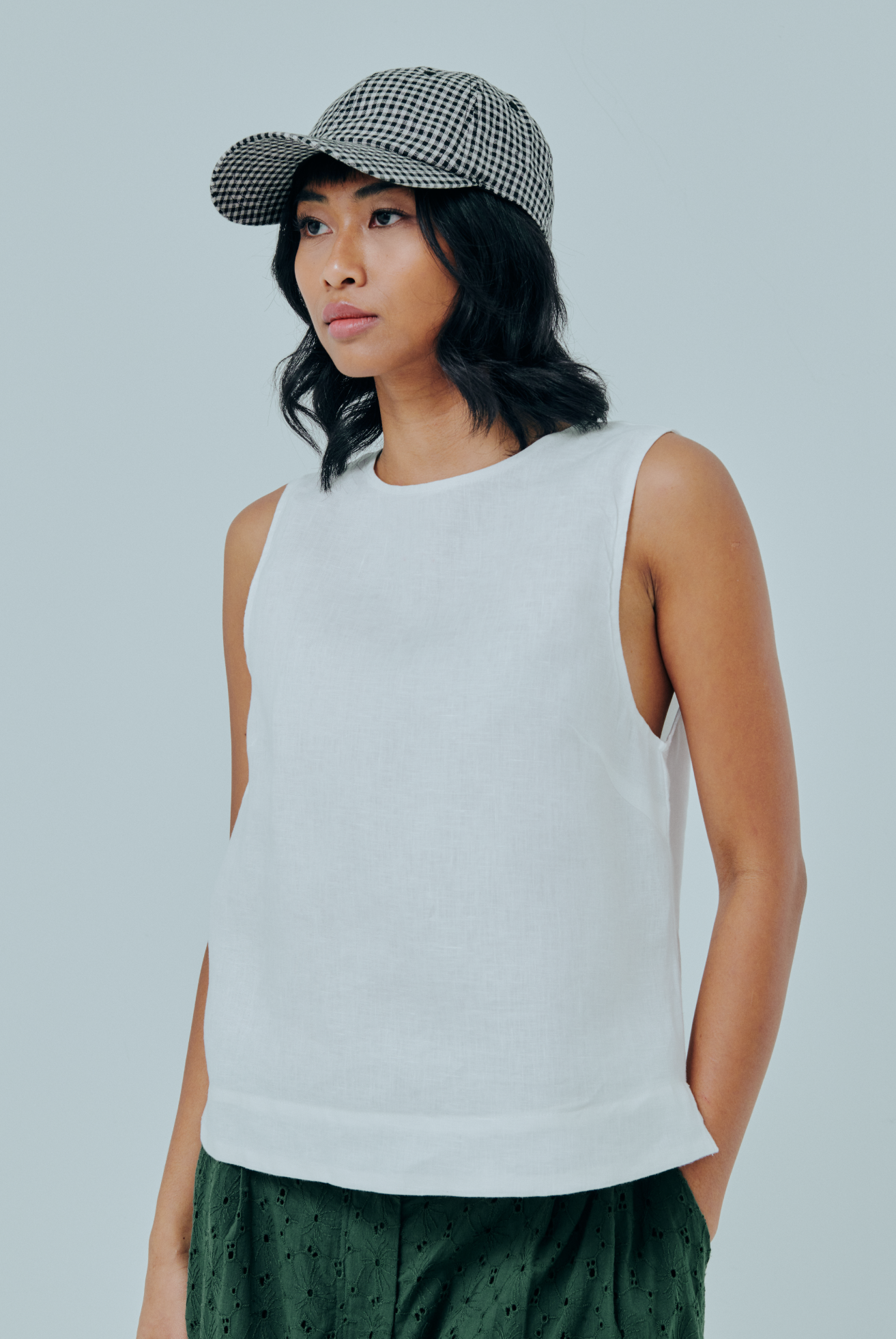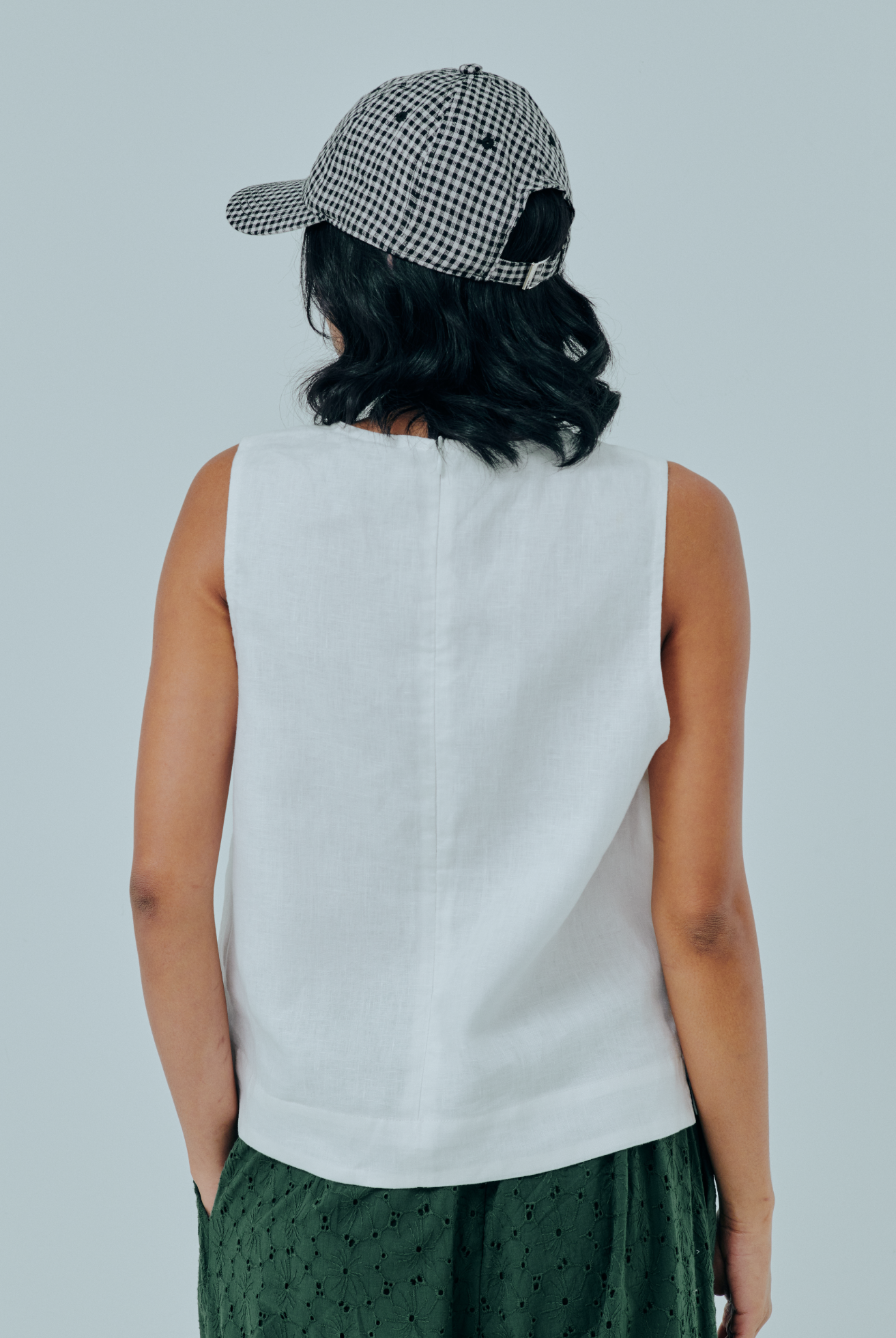 Linen cap with a curved brim, finished with a concealed strapback buckle.