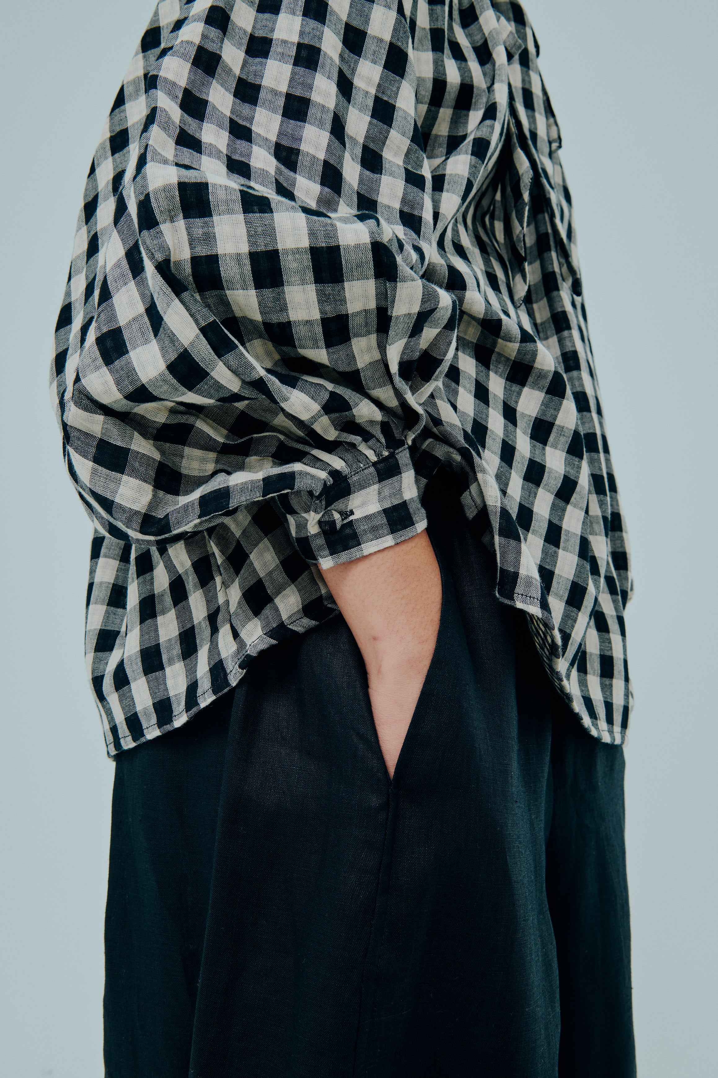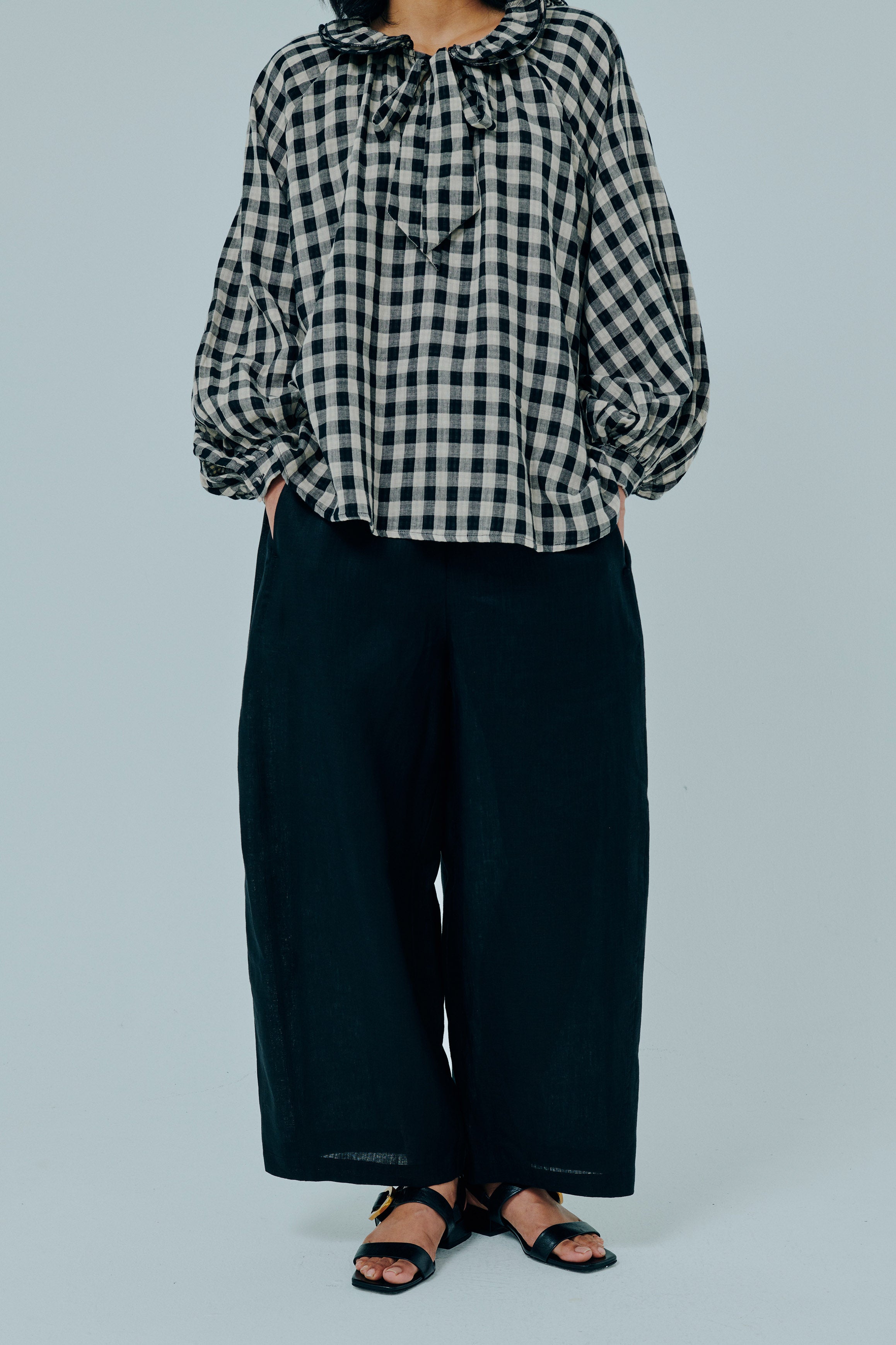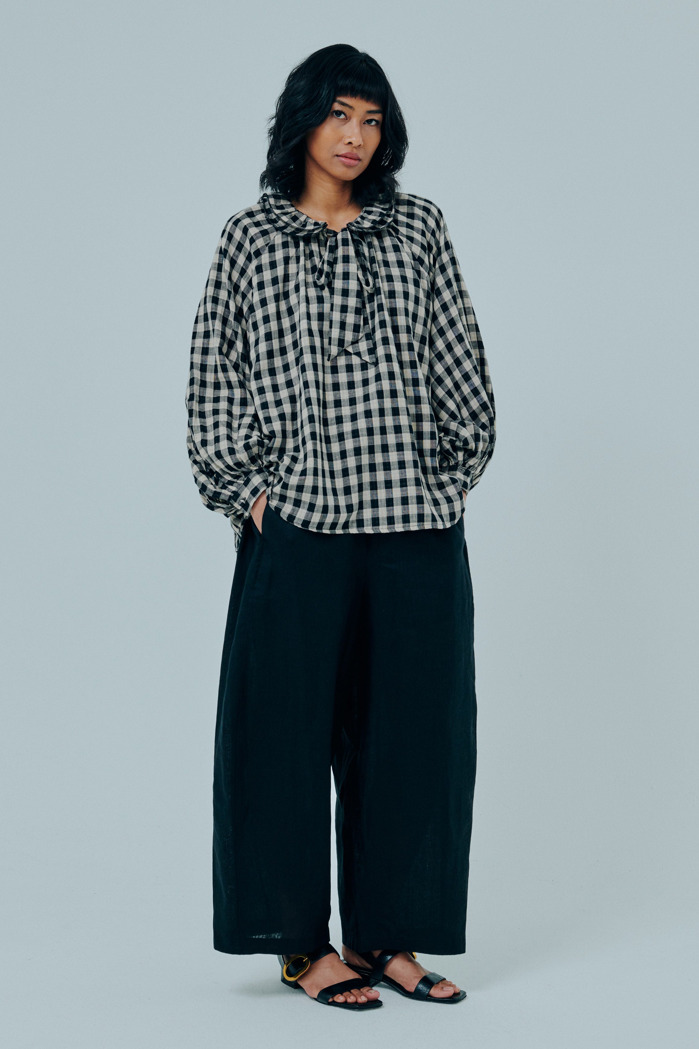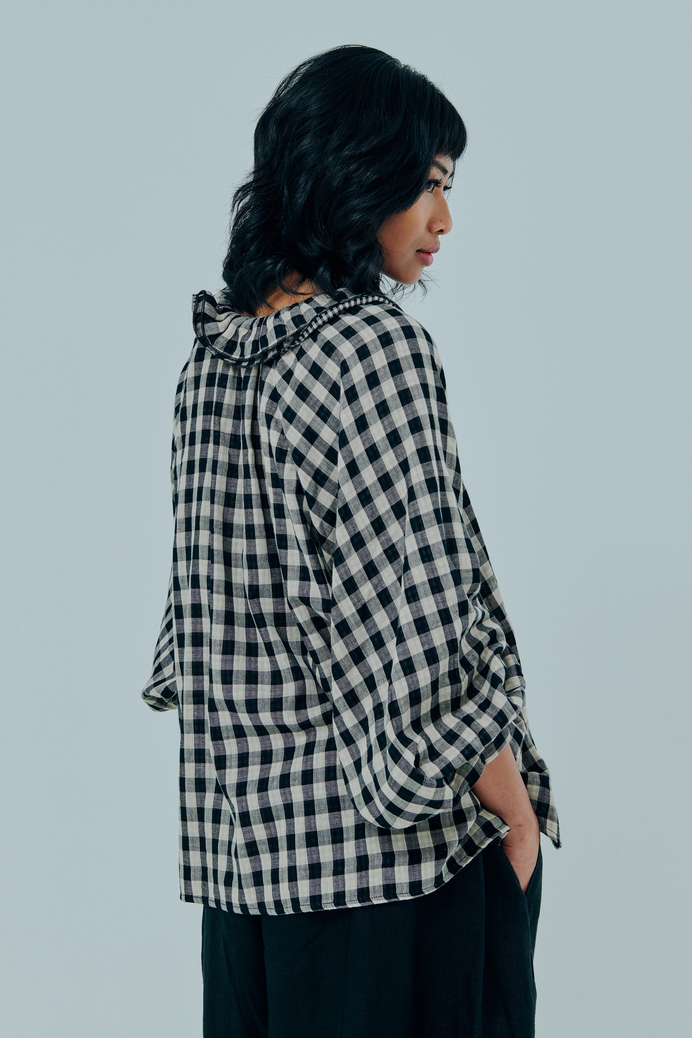 Studio Ruffle Blouse in Black Gingham