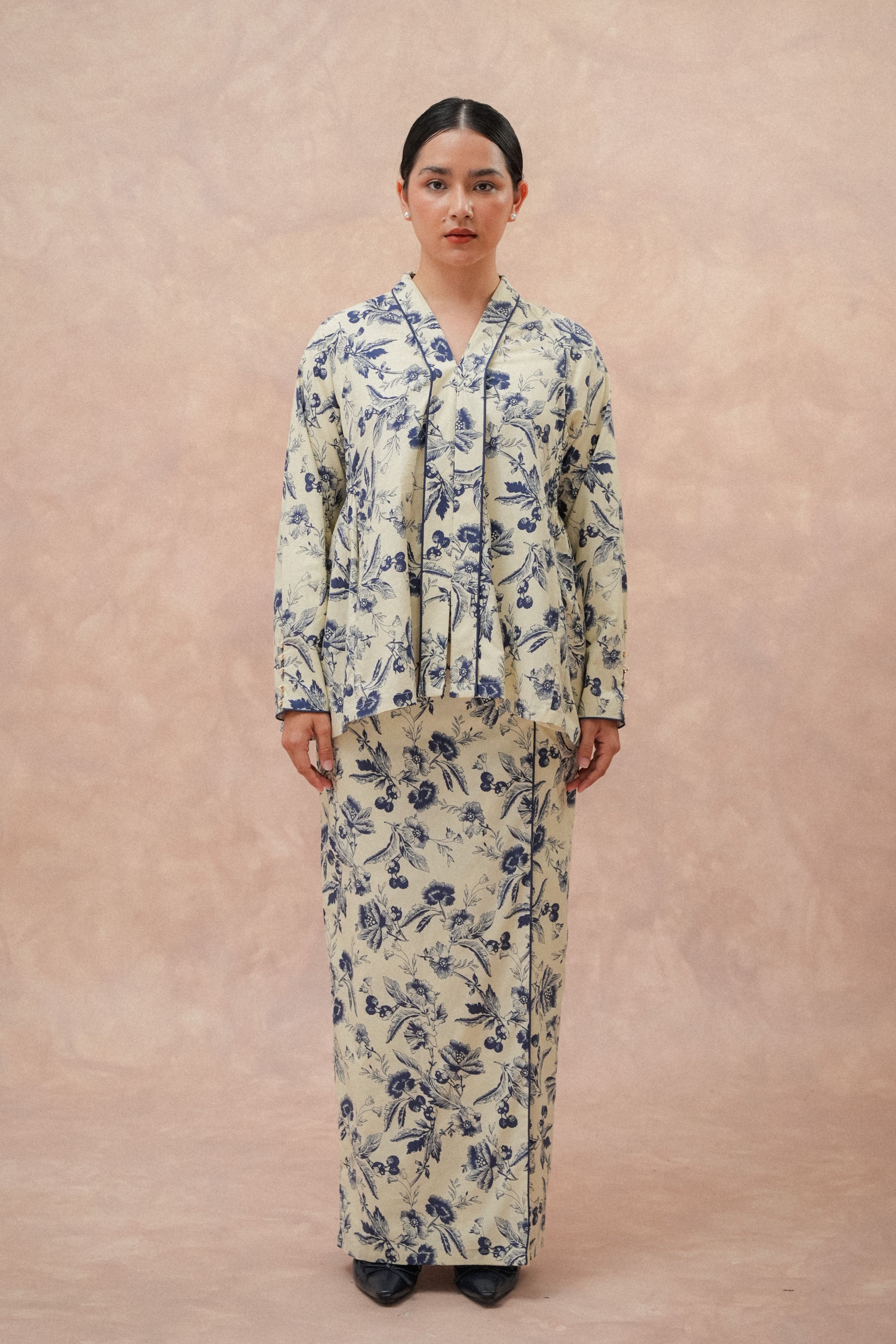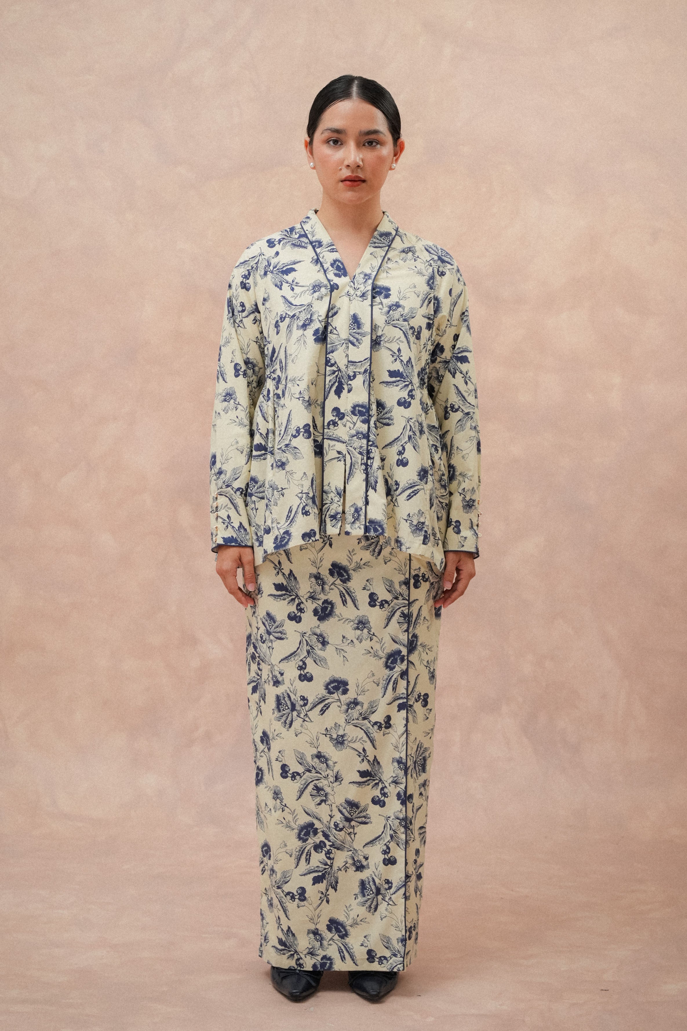 The set includes a matching skirt known as ‘Kain Lipat Selisih’, which is a pencil skirt with a frontal flap.
