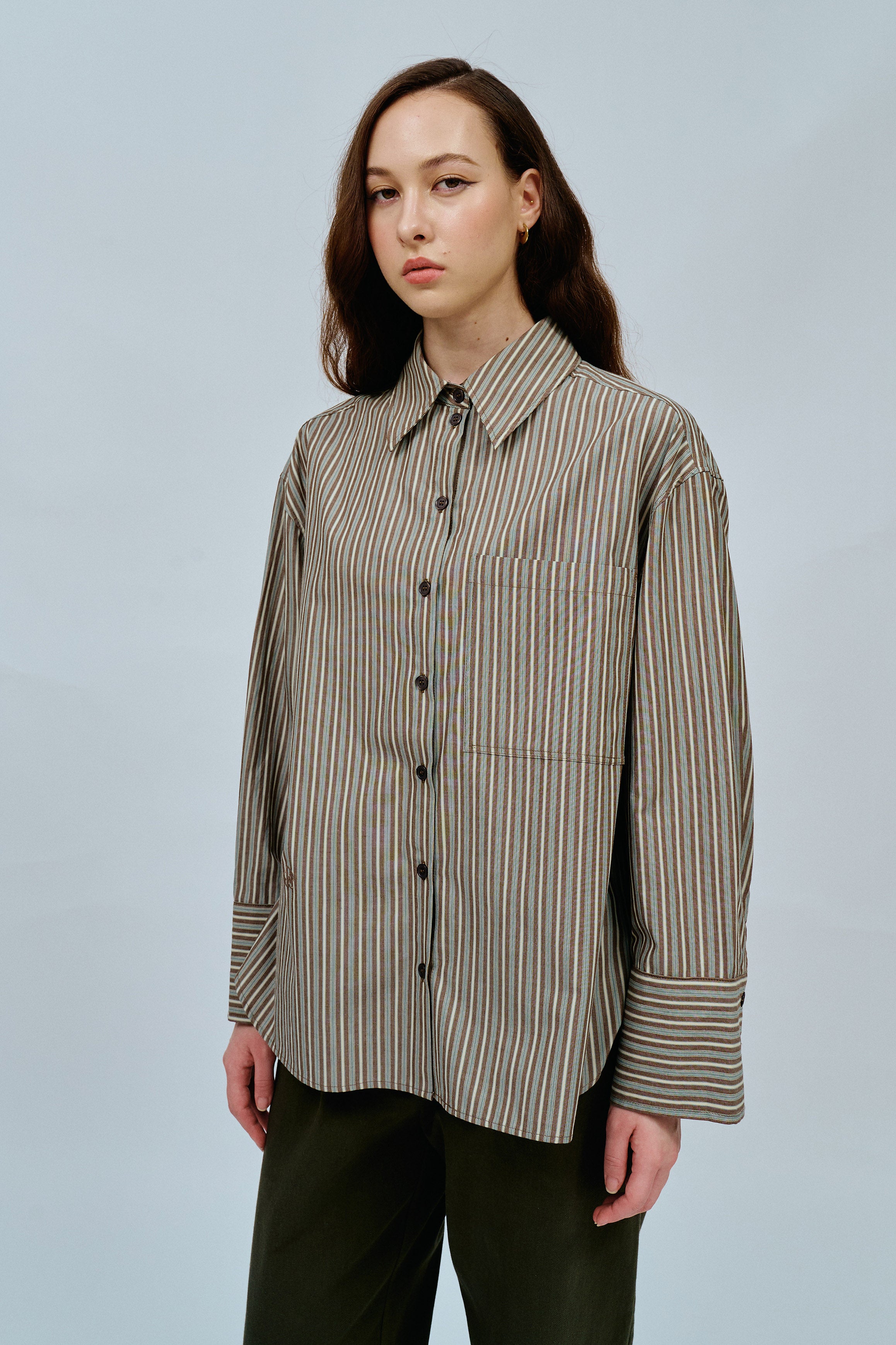 Designed with structure and for ease. A loose-fit, rendered in cotton. Features a classic collar, front pocket and long sleeves with buttoned cuffs.