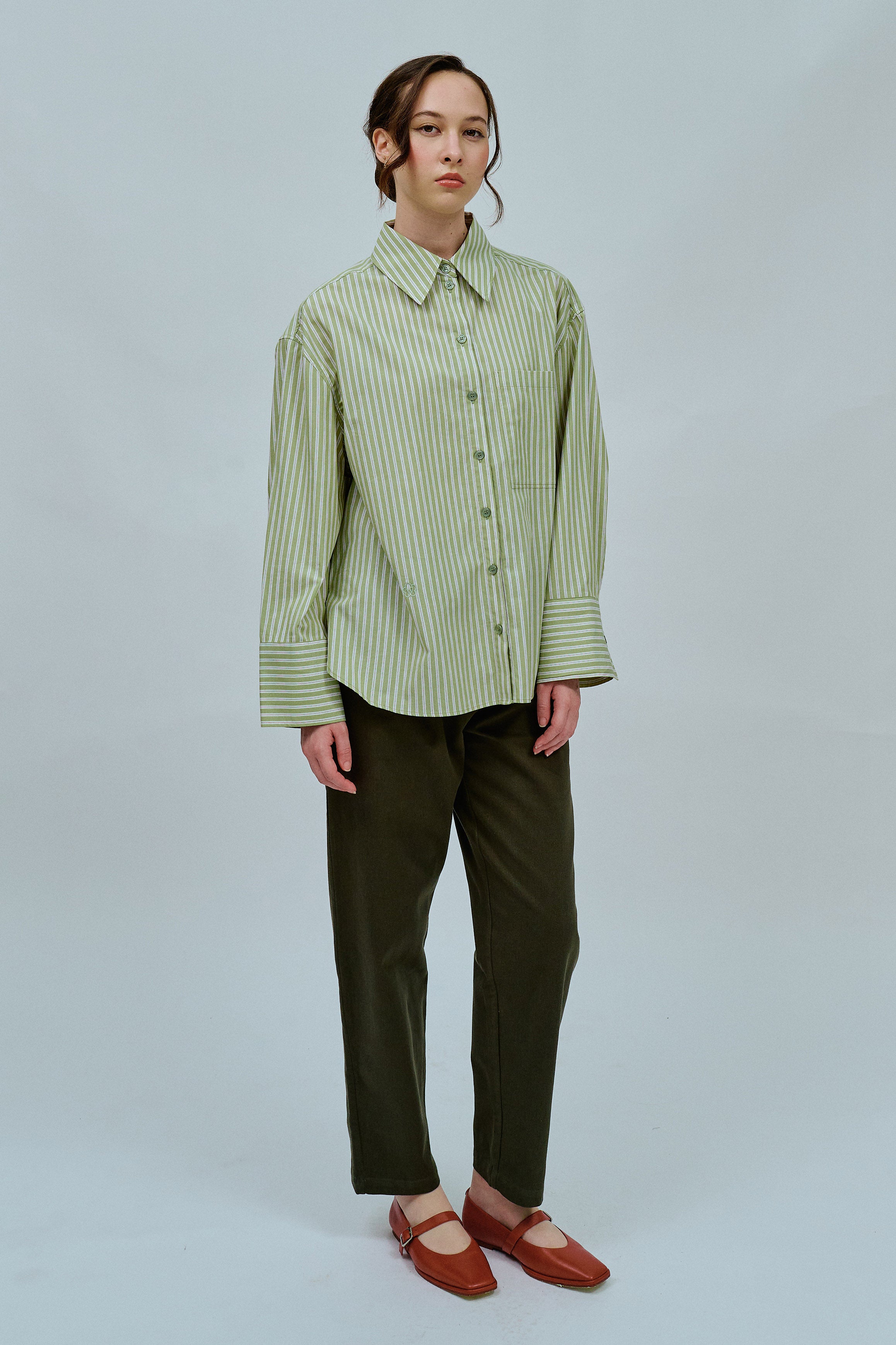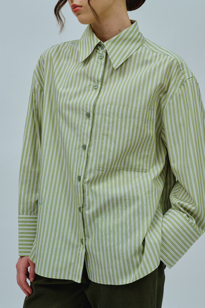 Designed with structure and for ease. A loose-fit, rendered in cotton. Features a classic collar, front pocket and long sleeves with buttoned cuffs.