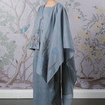 An heirloom in the making, rendered in 100% ramie. This selendang is framed with intricate multicolour floral cross-stitch detailing and finished with a delicate W metal logo. Drape it over your shoulders or wear it as a headscarf to to show it off to full effect.