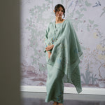 An heirloom in the making, rendered in 100% ramie. This selendang is framed with intricate multicolour floral cross-stitch detailing and finished with a delicate W metal logo. Drape it over your shoulders or wear it as a headscarf to to show it off to full effect.