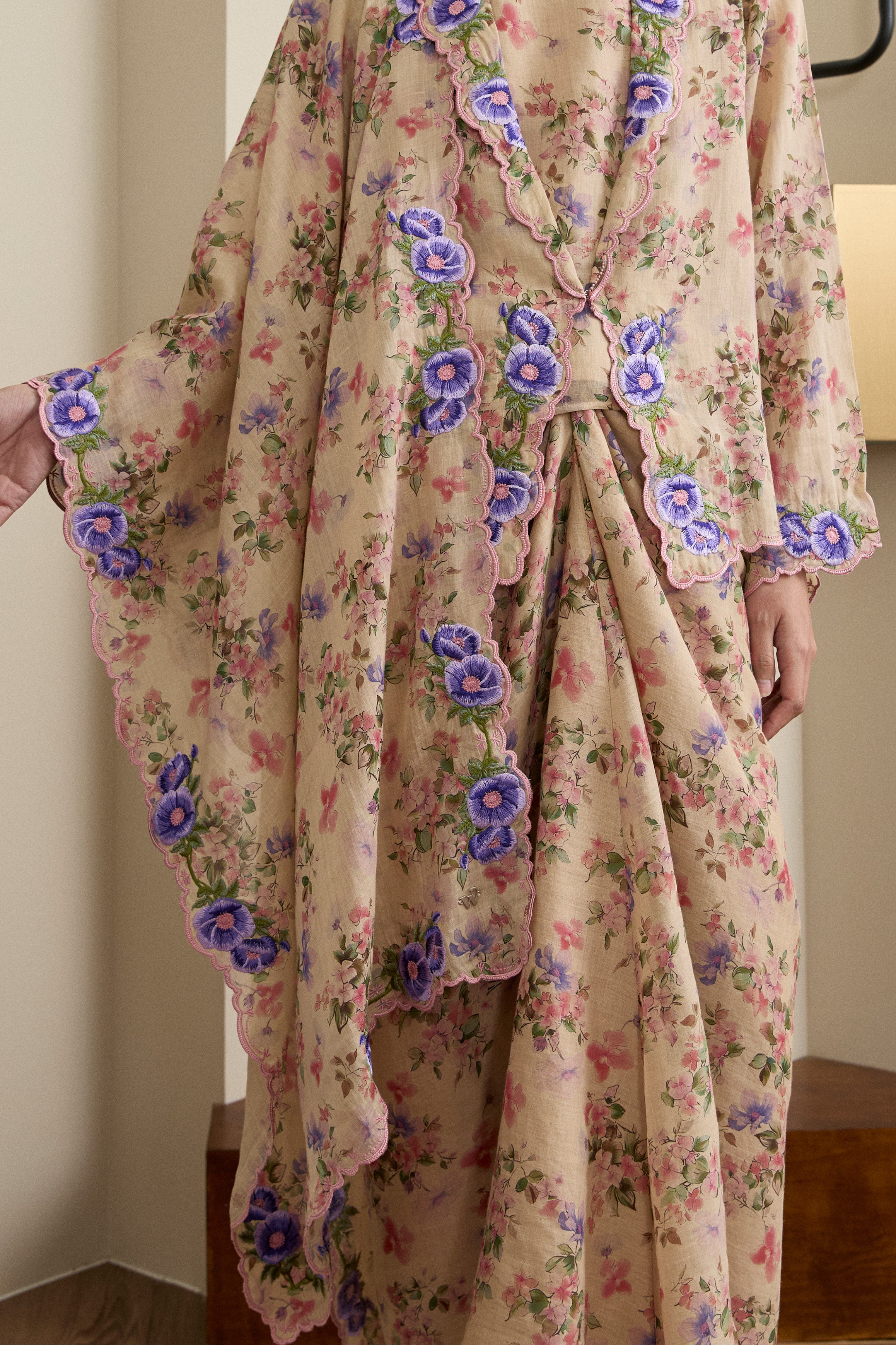 Features intricate multicolour embroidery in vibrant floral motifs