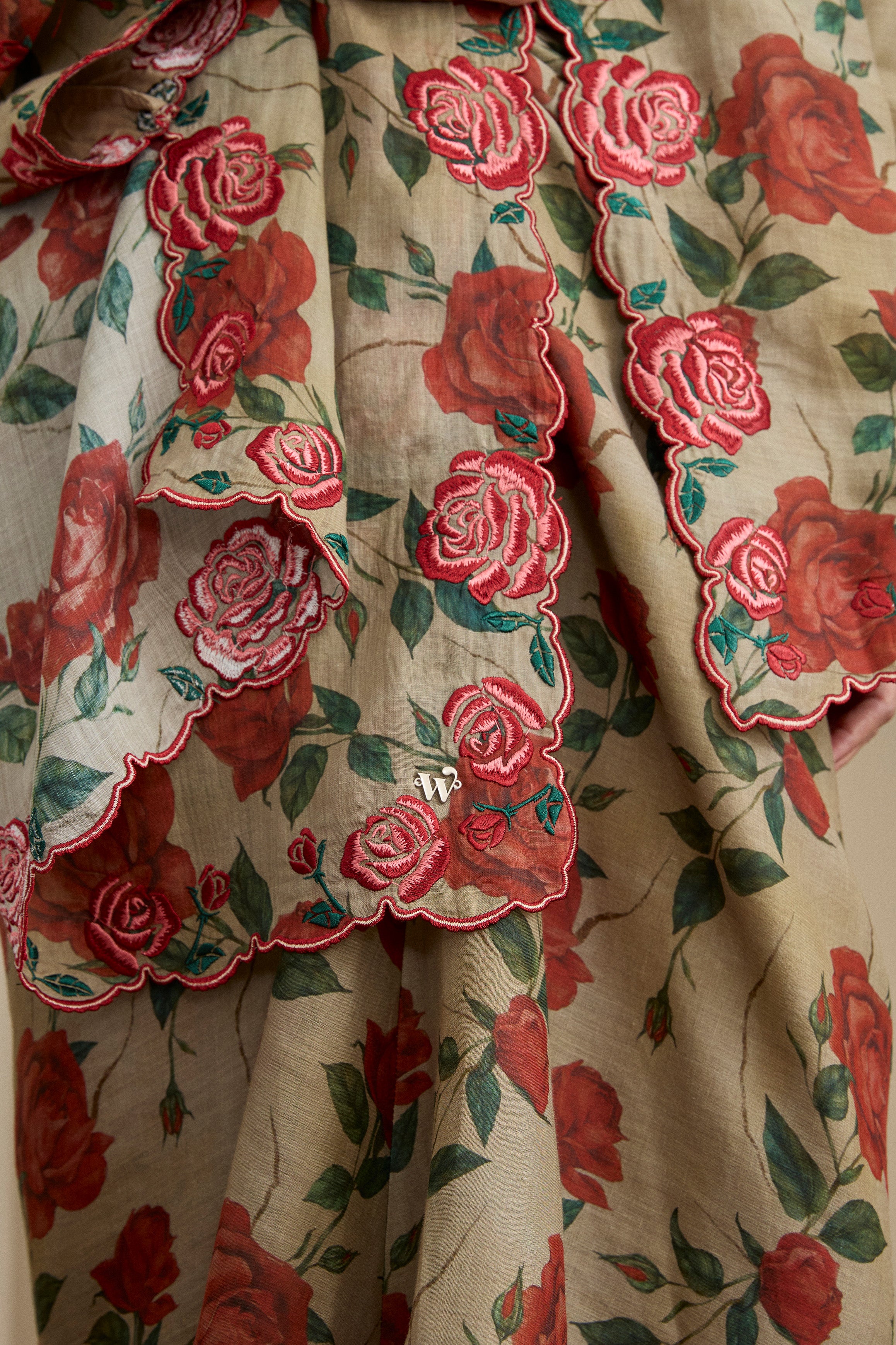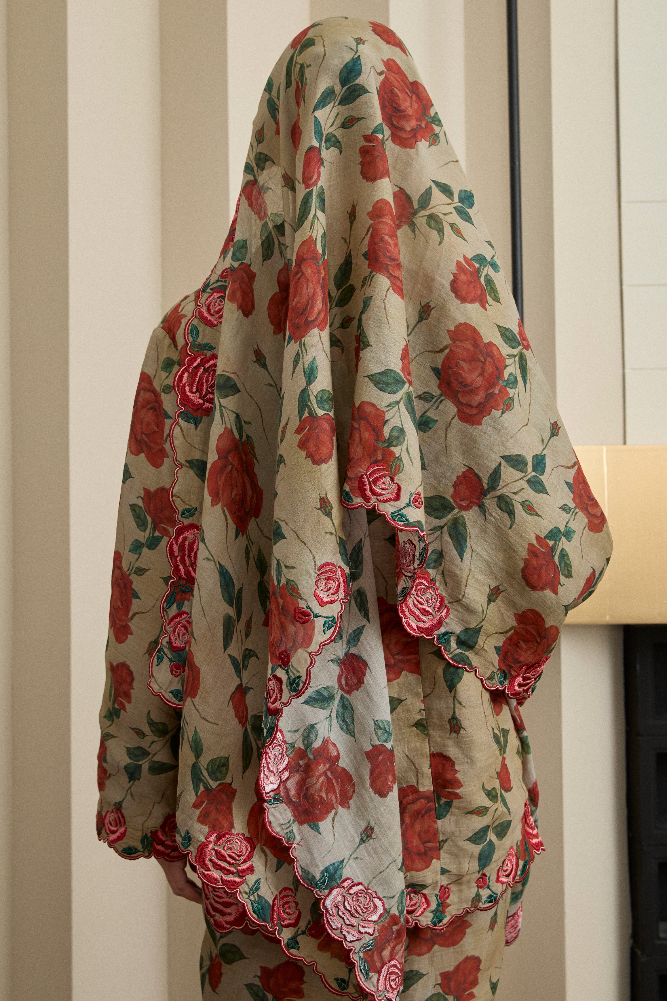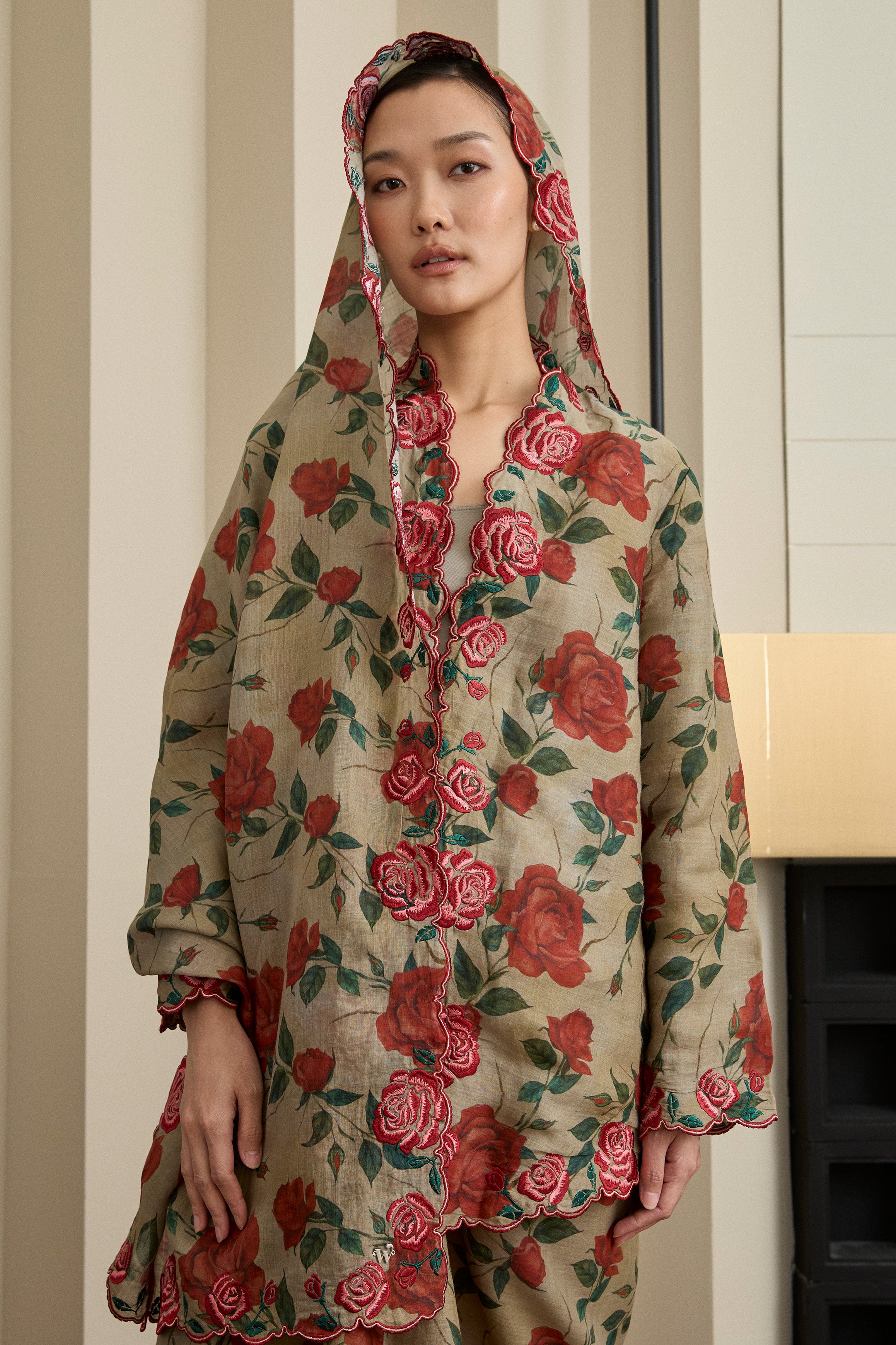 A refined essential, rendered in ramie. This selendang is framed with Intricate multicolour embroidery in floral motif. Finished with a subtle W metal logo. Wear it on shoulder or as a headscarf to show it off to full effect.