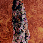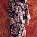 Intricate flower embroidery in multi-toned thread