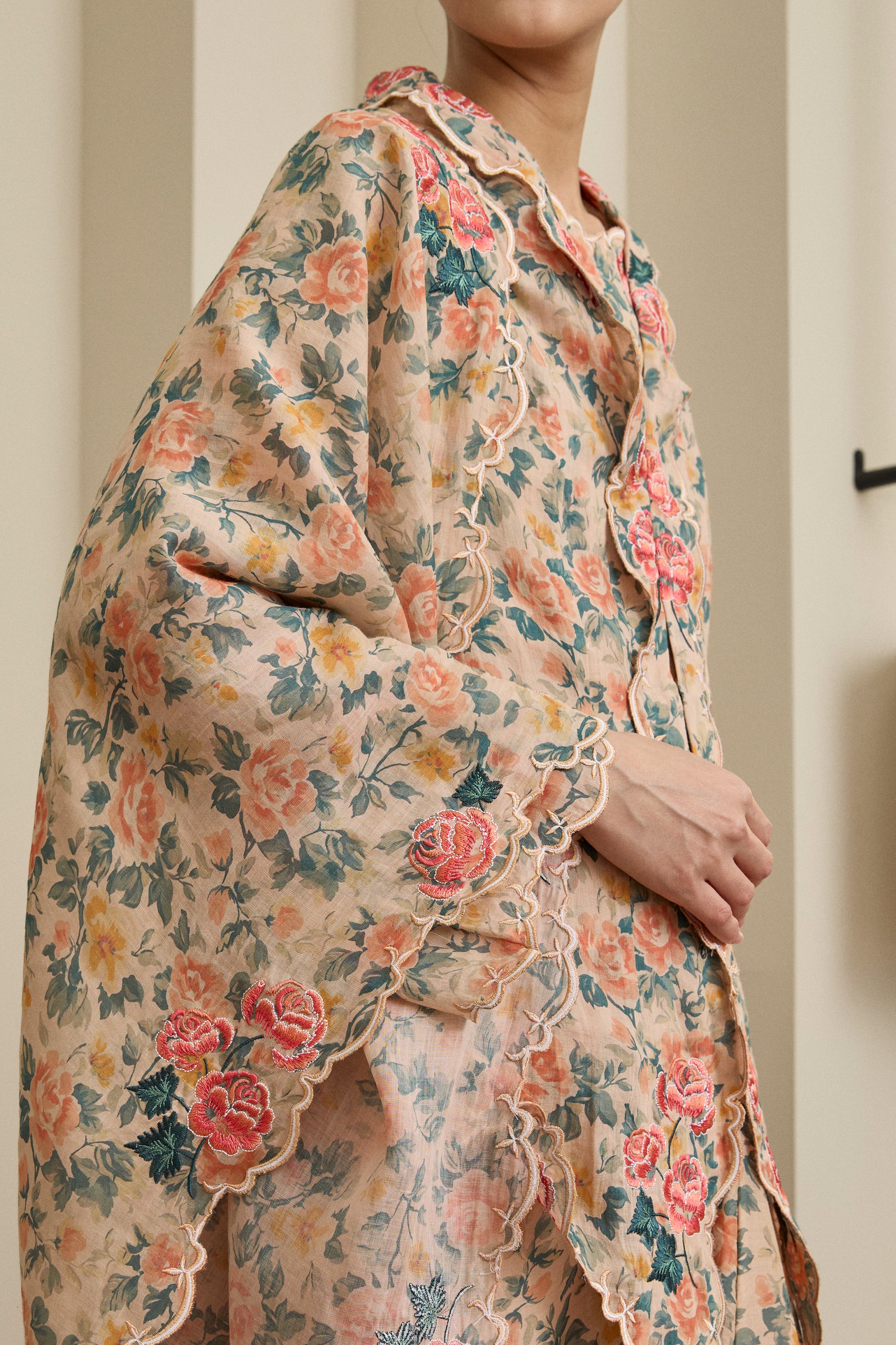 Features intricate multicolour embroidery in vibrant floral motifs