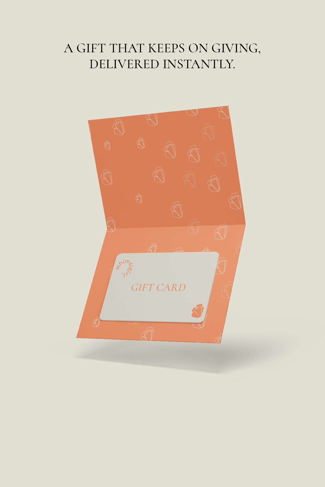 E-Gift Cards are delivered by email and contain instructions to redeem them at checkout. Our gift cards have no additional processing fees and can only be used on the www.whimsigirl.com website.