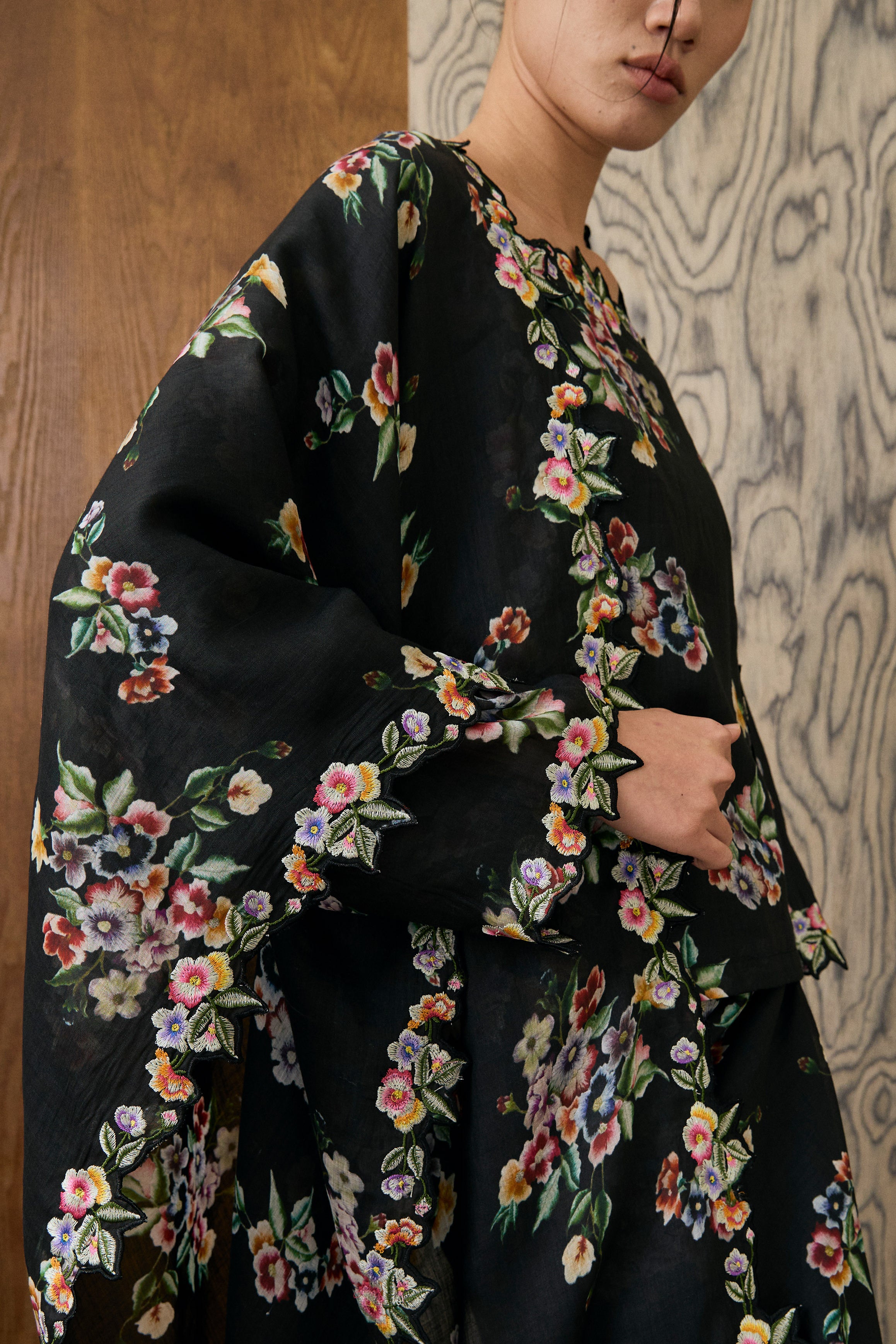 Midsummer Ramie Floral Selendang in Black