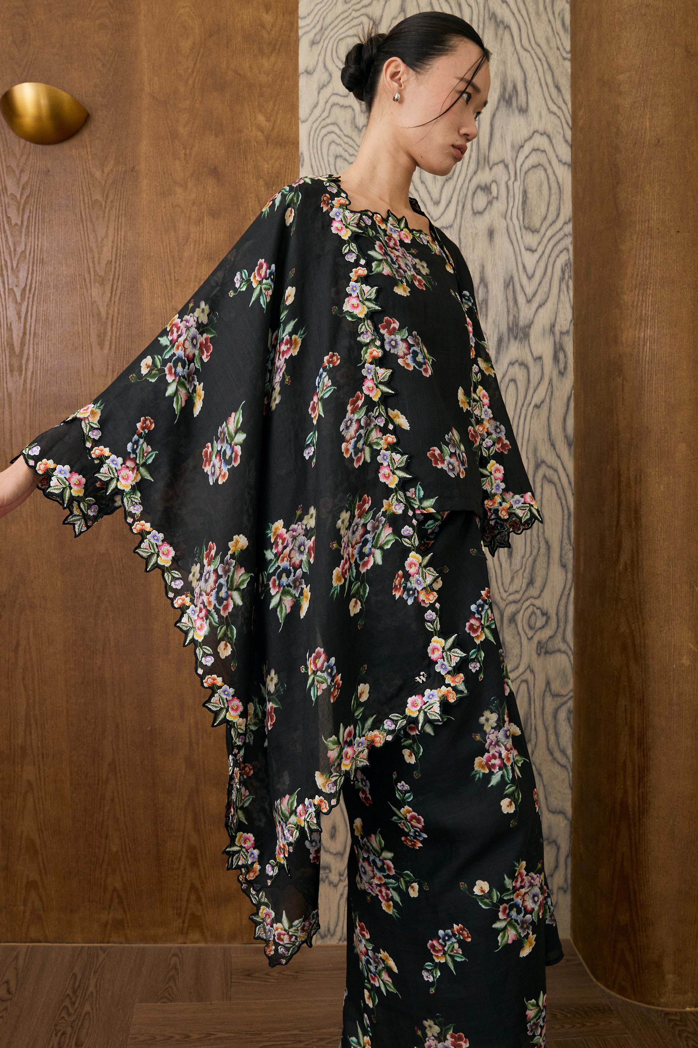 Midsummer 2-Piece Ramie Floral Kebaya Top in Black