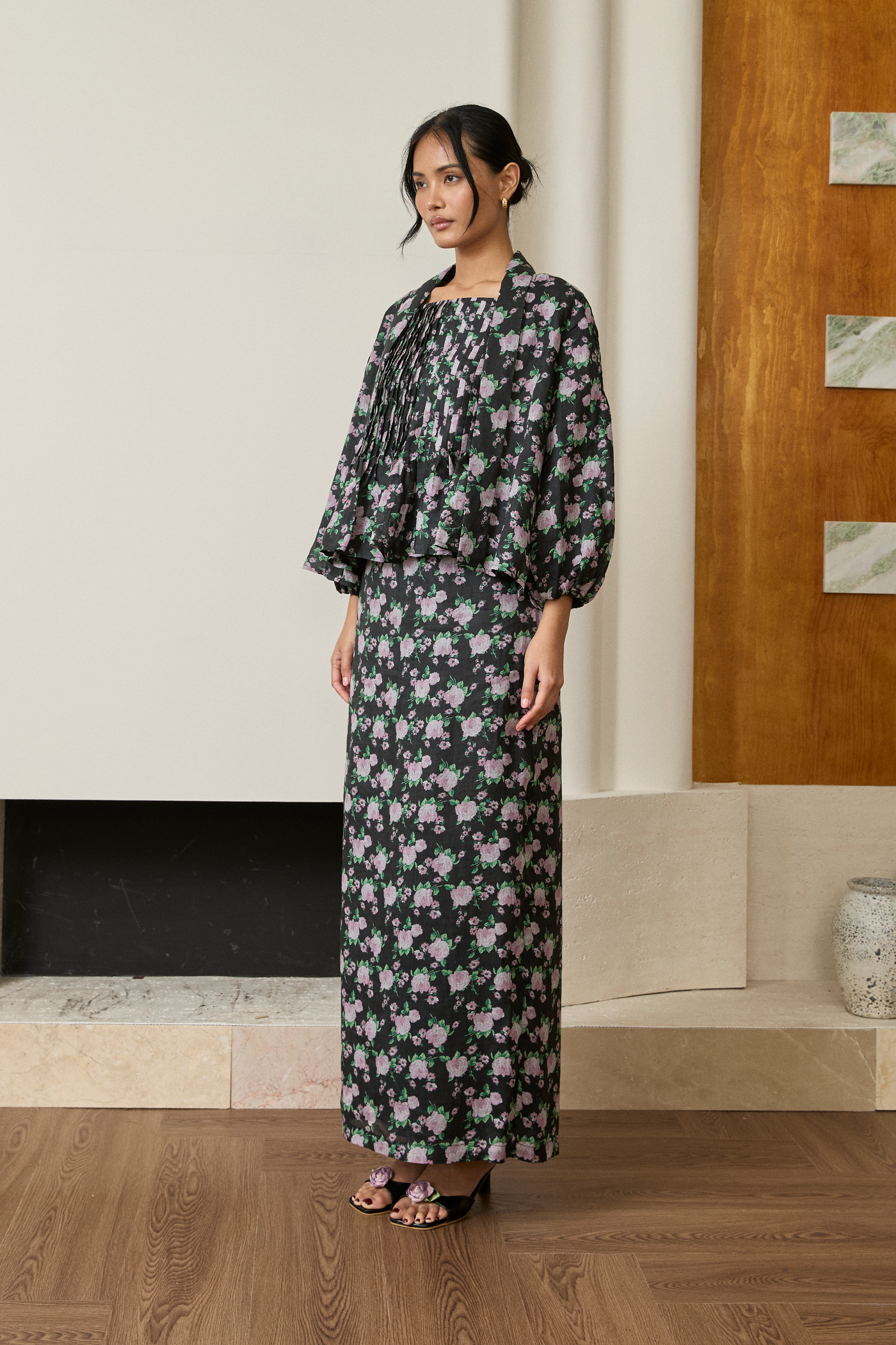 Asha Ramie Skirt in Violet Floral