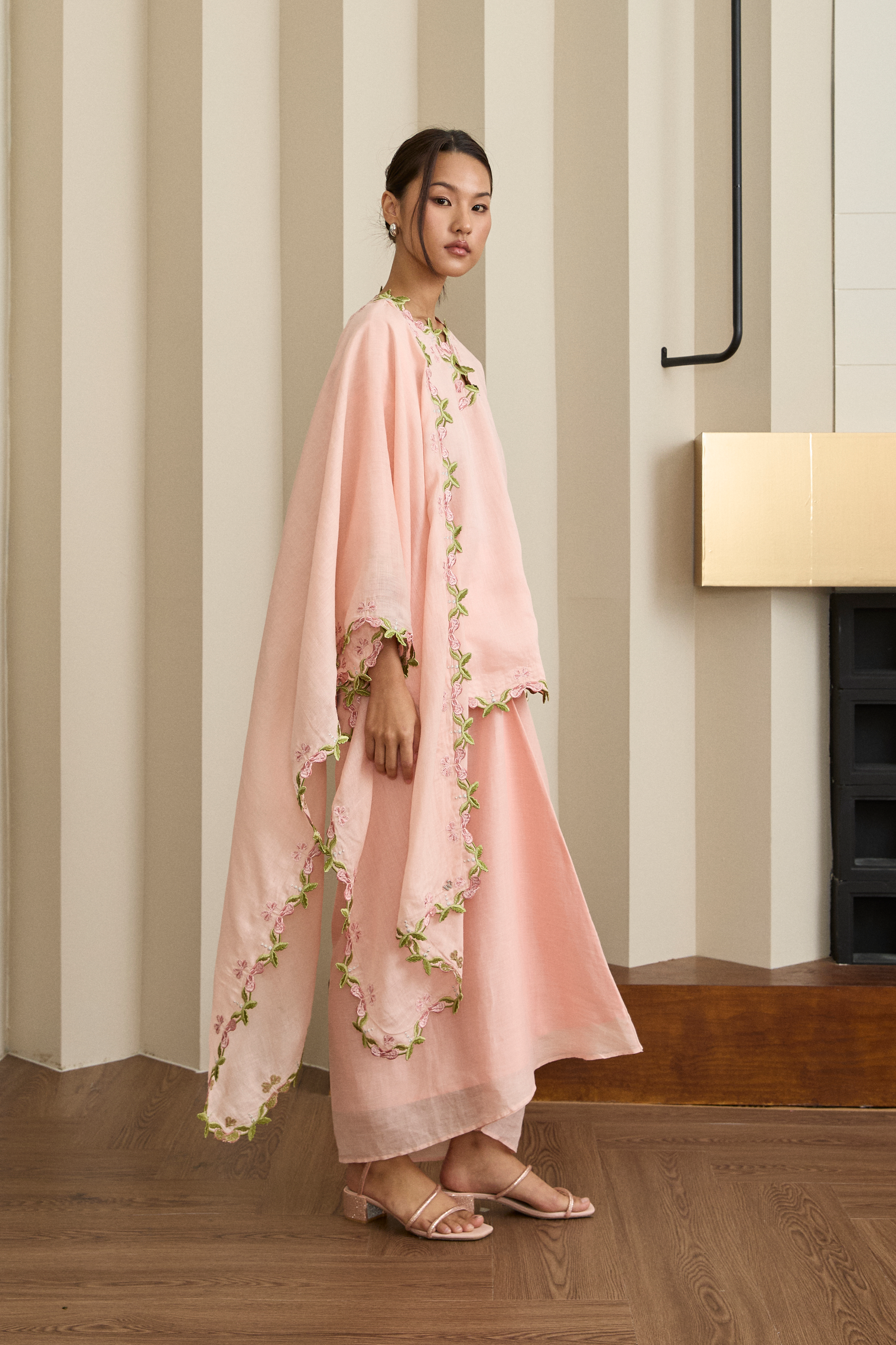 Gaia Ramie Kedah Set with Selendang in Peach