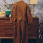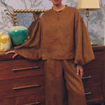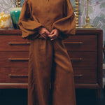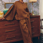 Flared high-waisted trousers, rendered in Ramie. Fully lined in cotton. Finished with side pockets, and a side zip closure.