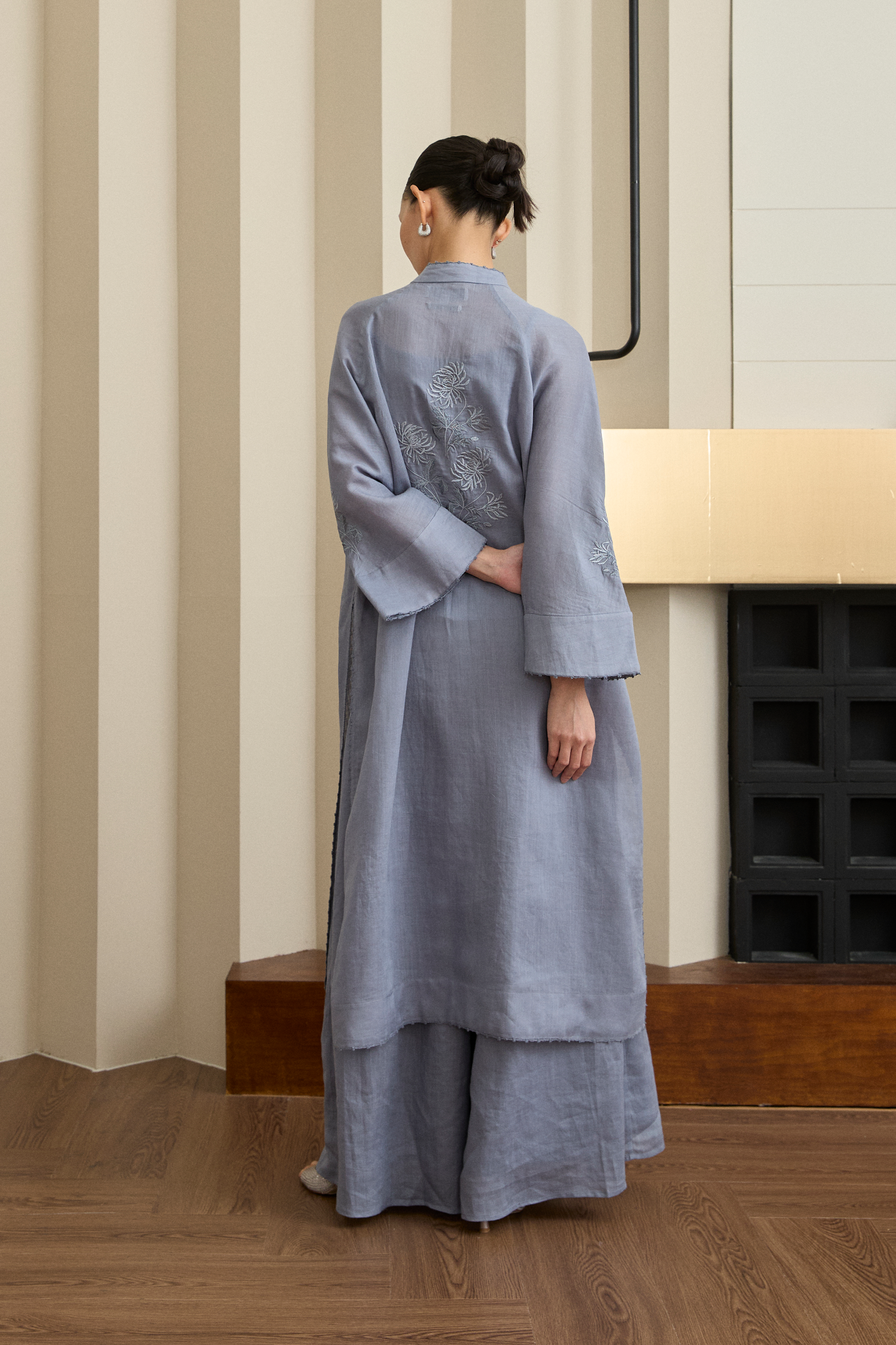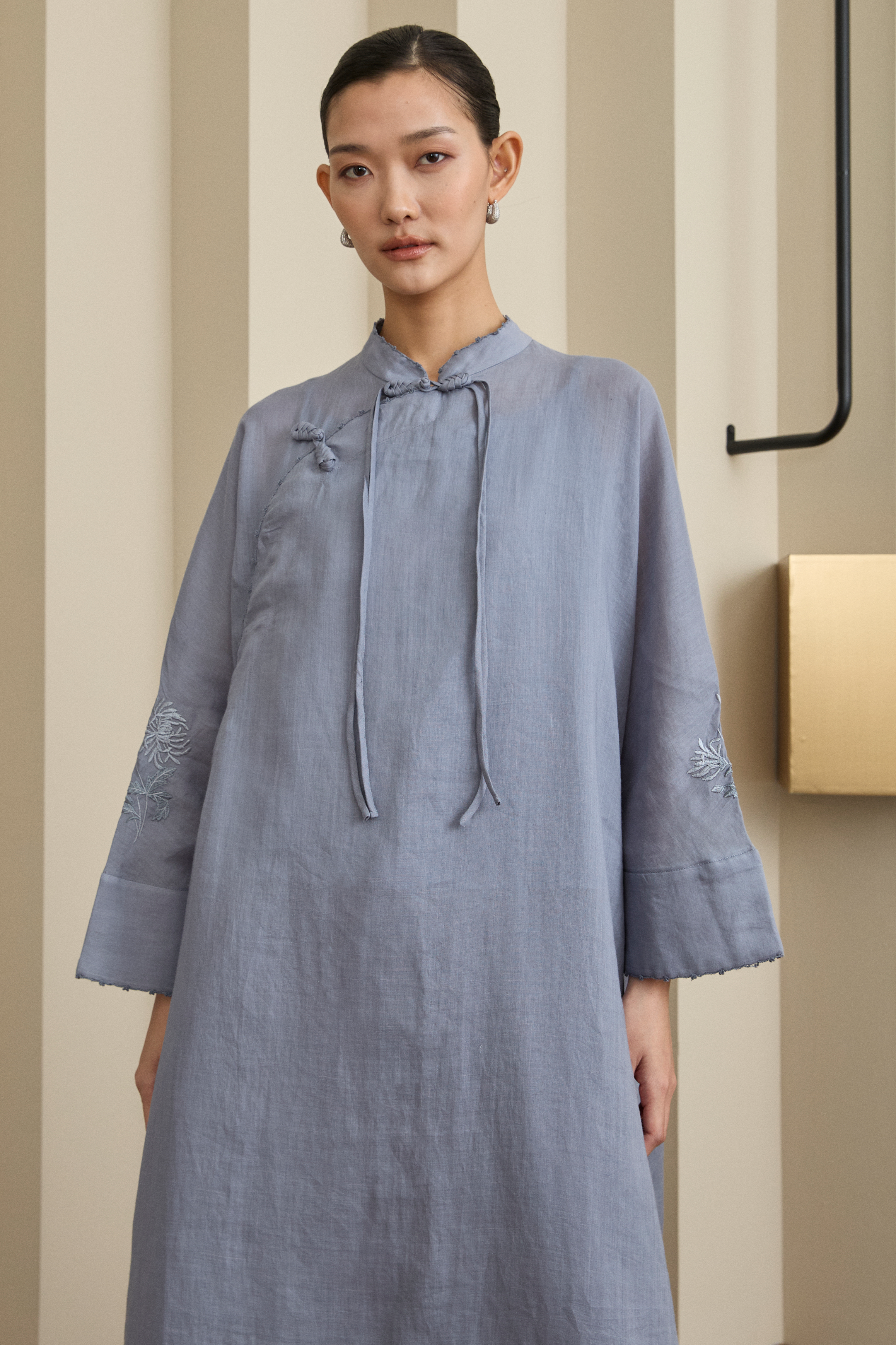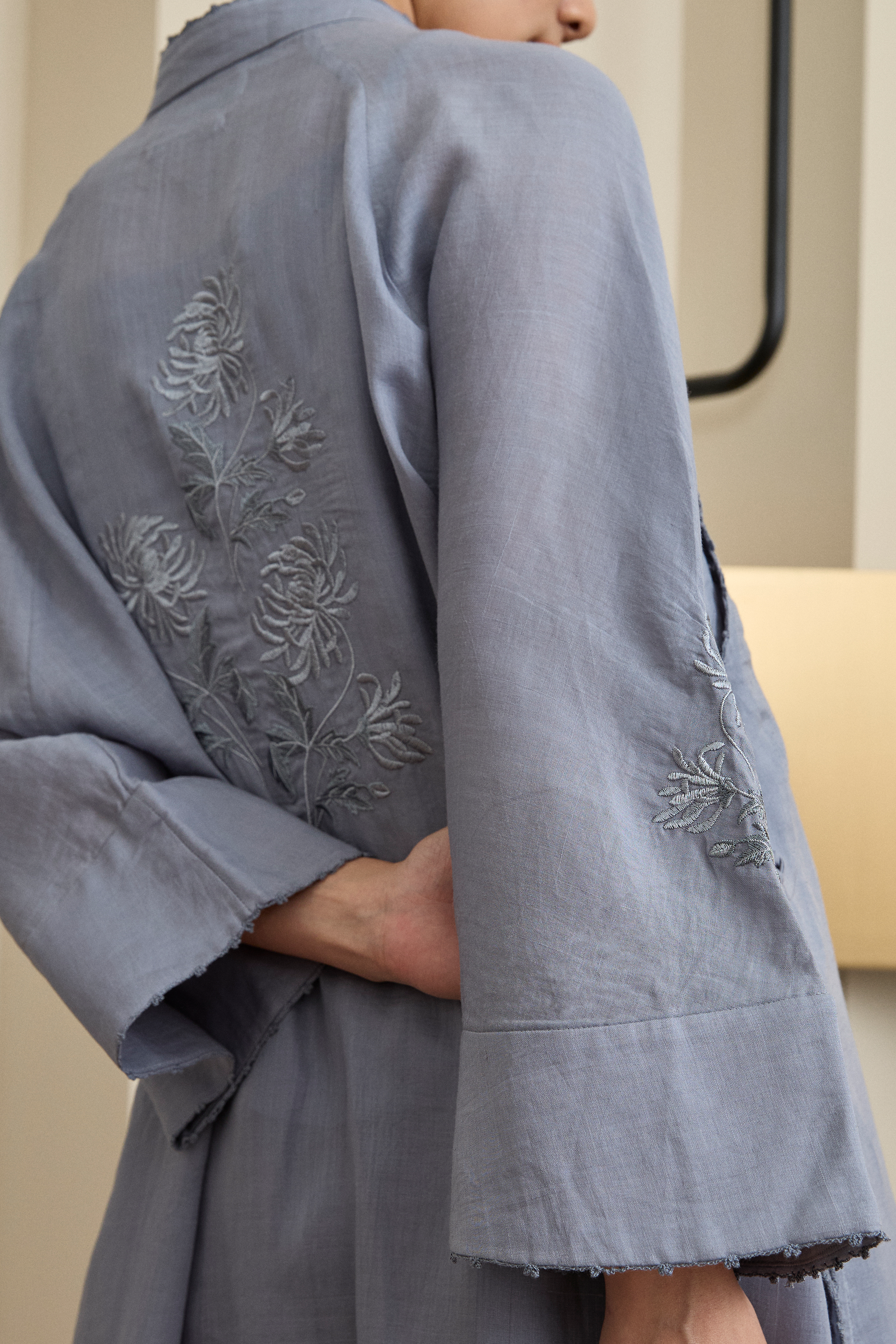 Wide sleeves featuring delicate floral embroidery