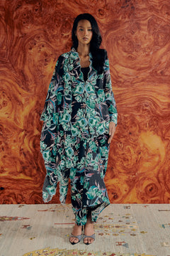 A refined essential, rendered in 100% ramie. This selendang is framed with intricate crochet trimming, detailed with delicate flower embroidery in multi-toned thread. Finished with a subtle W metal logo. Wear it on shoulder or as a headscarf to show it off to full effect.