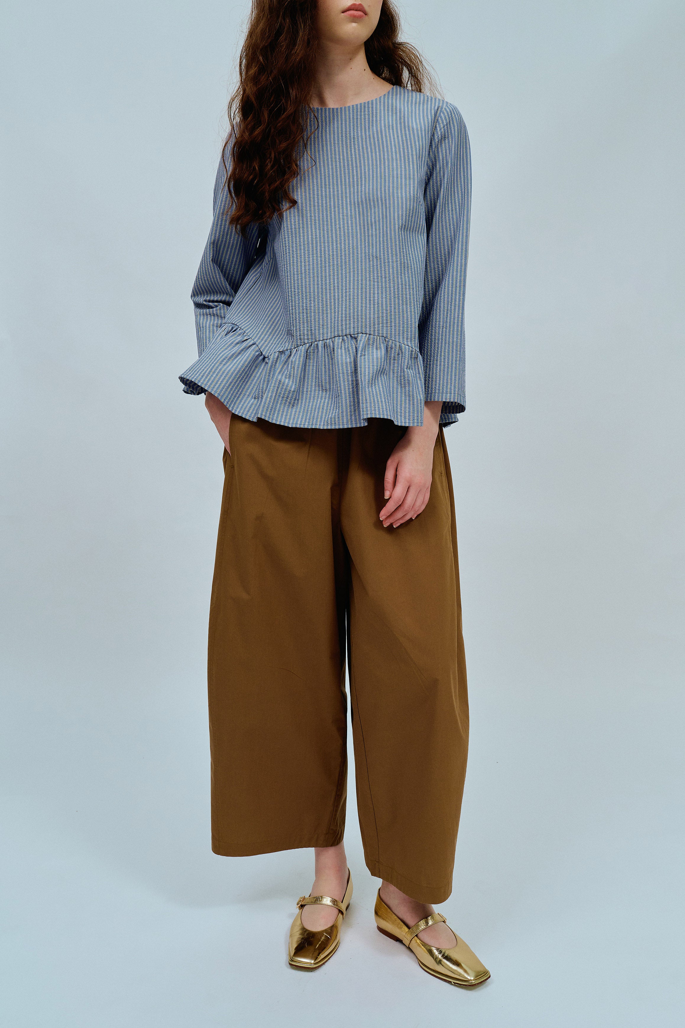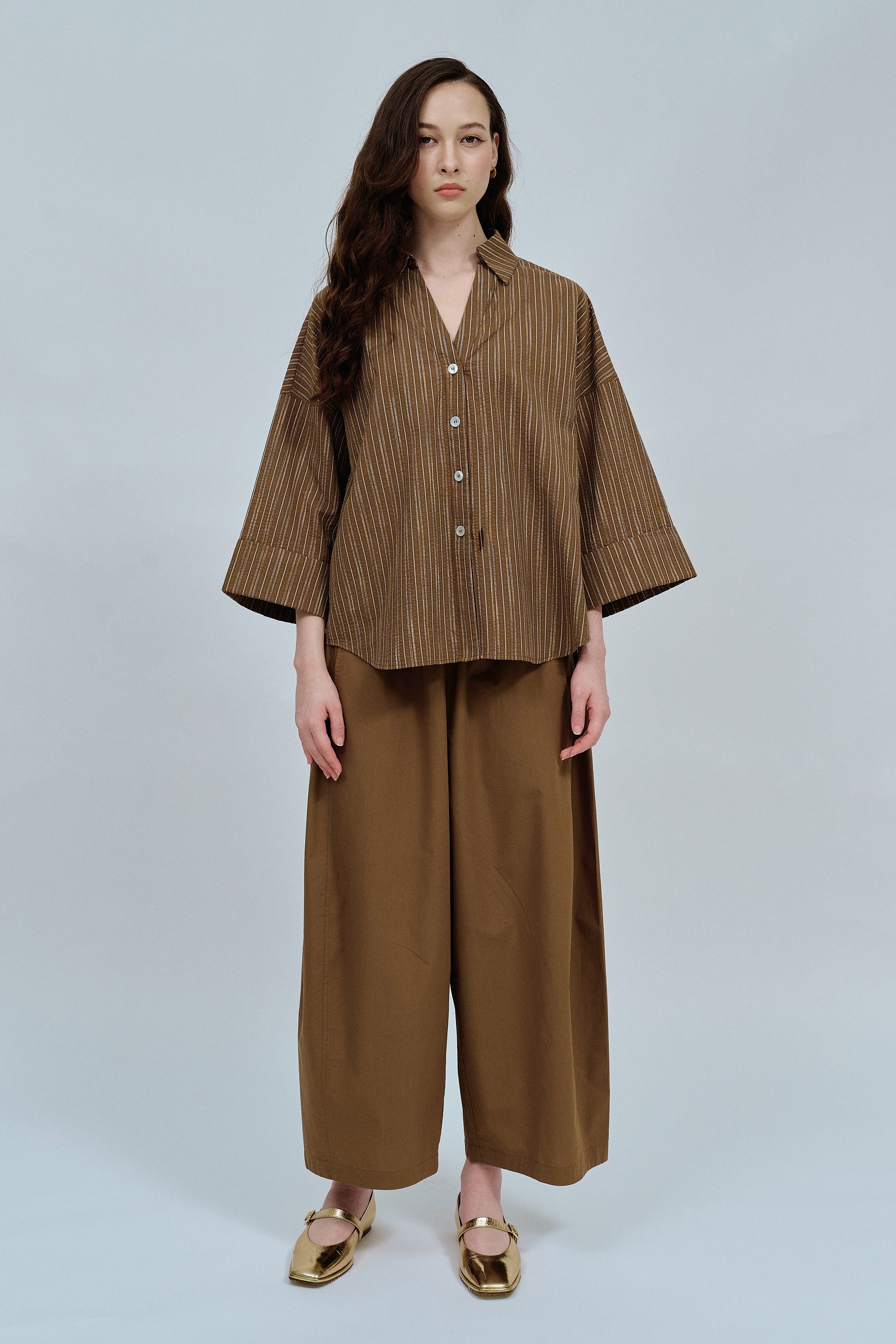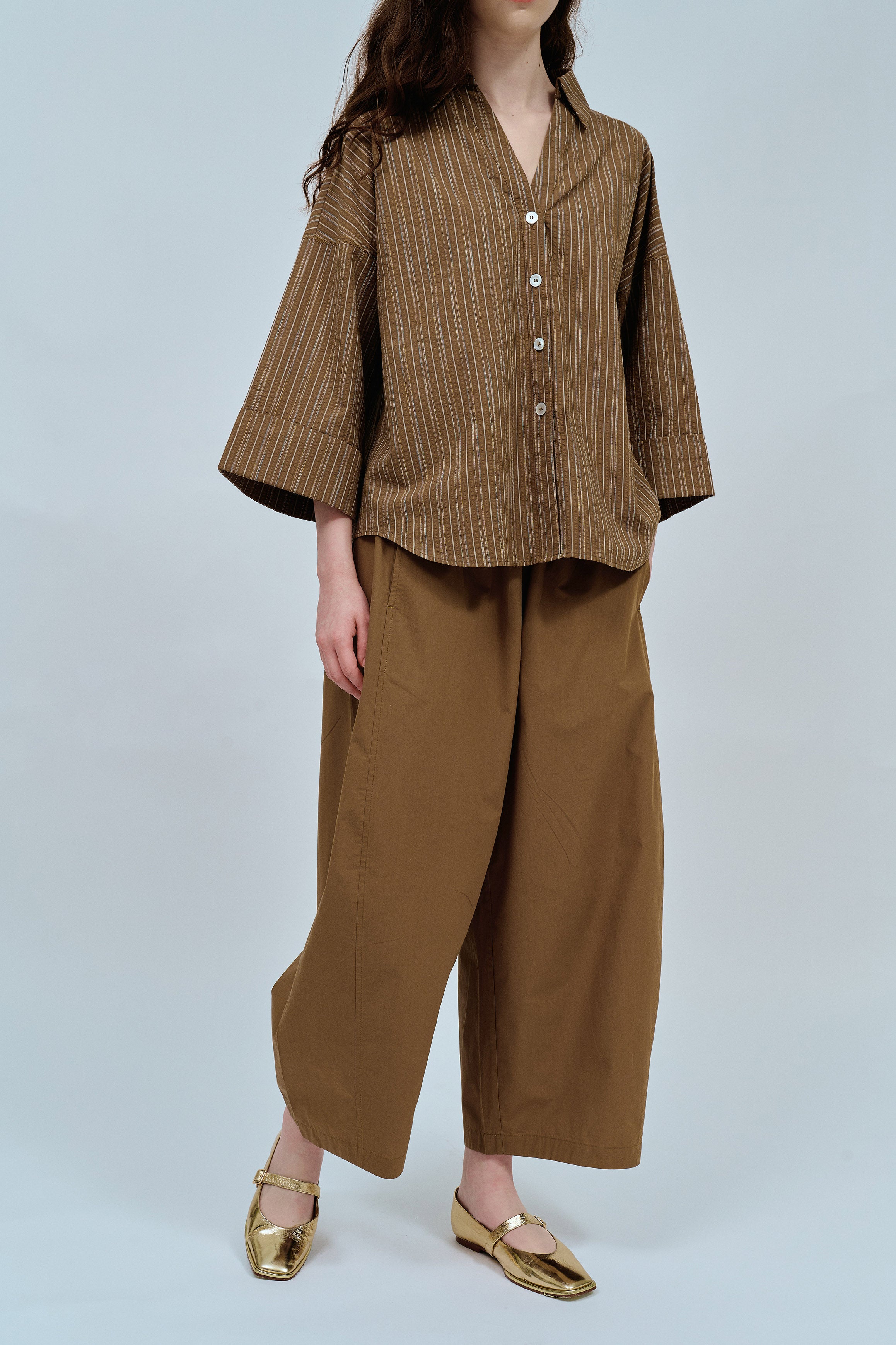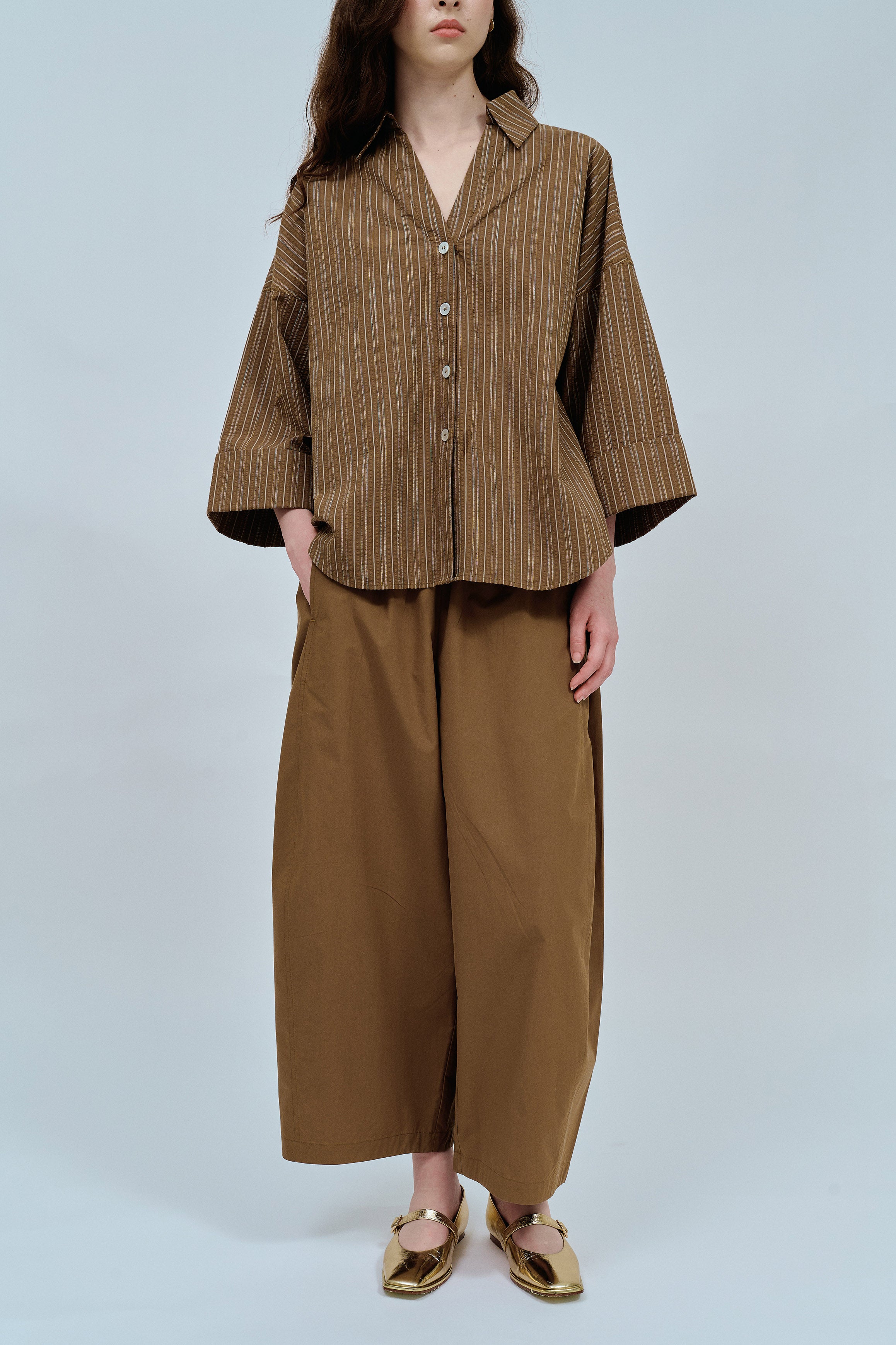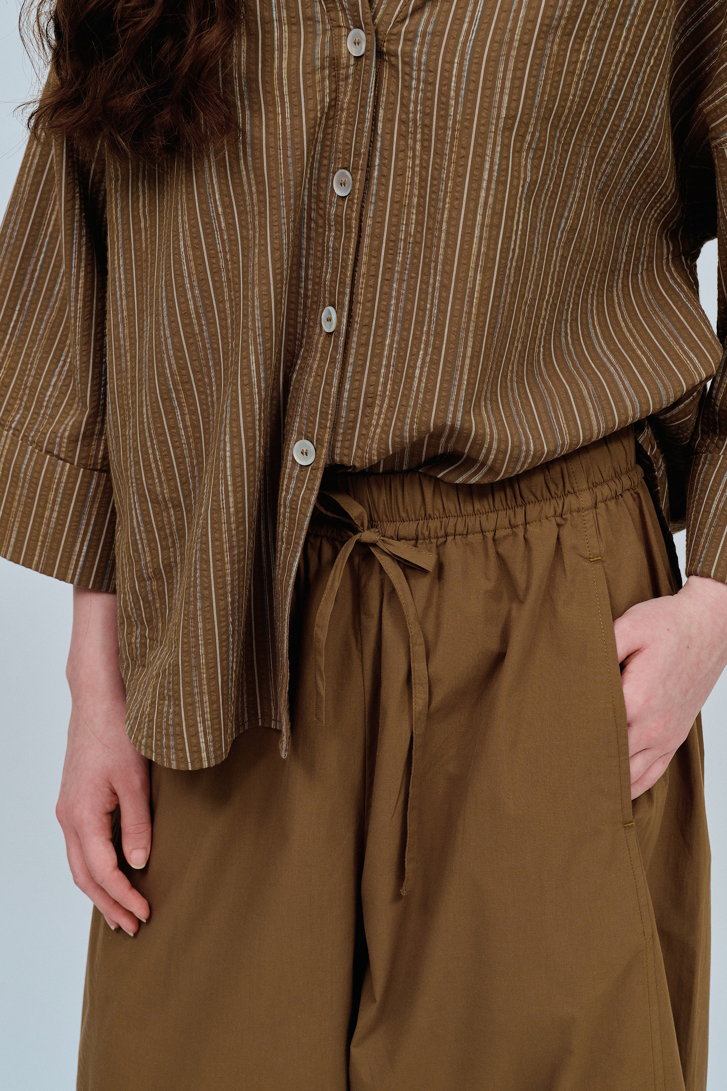 A relaxed barrel fit, with an ankle-length cut. Constructed from cotton poplin, with adjustable drawstring waistband. Finished with side pockets.