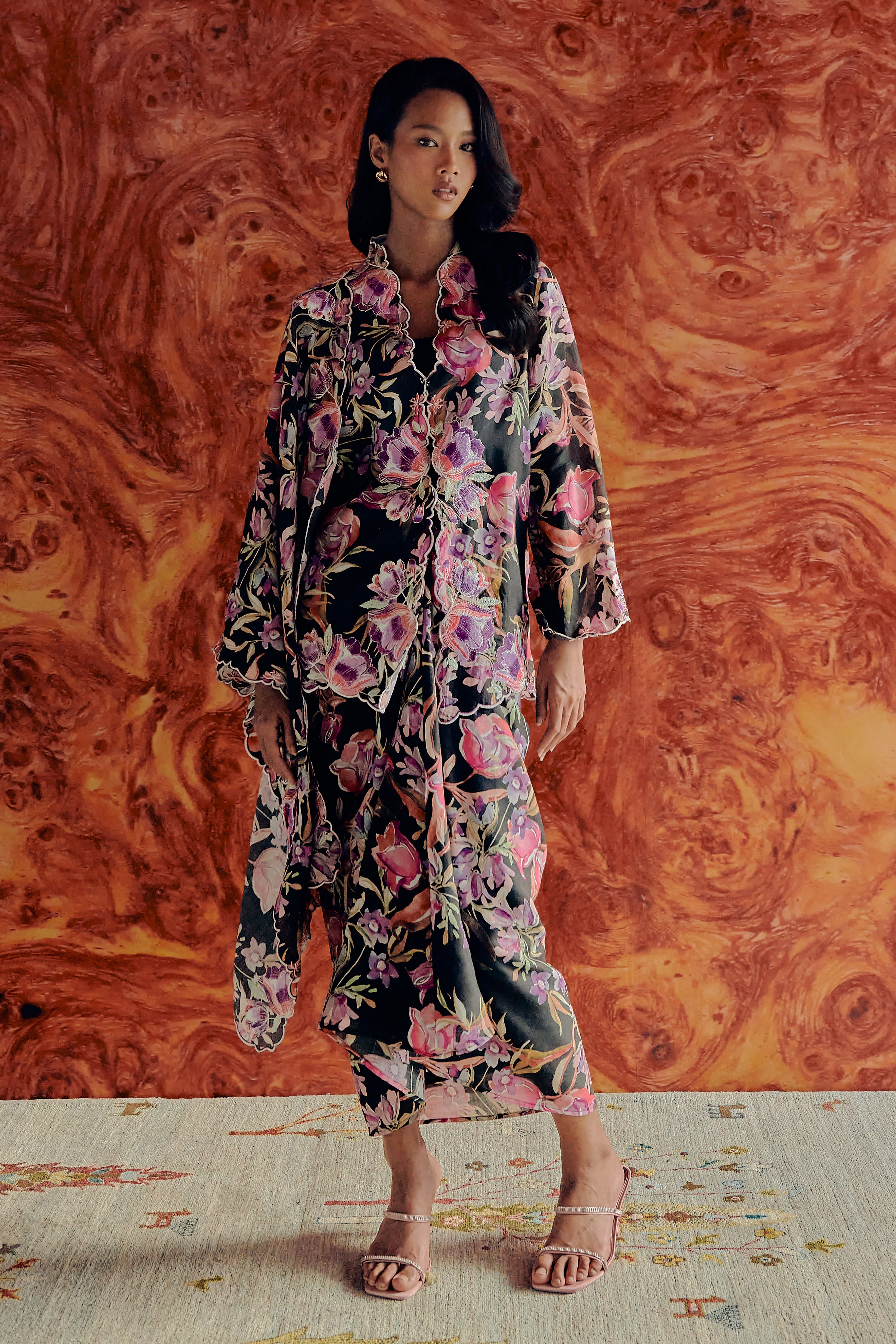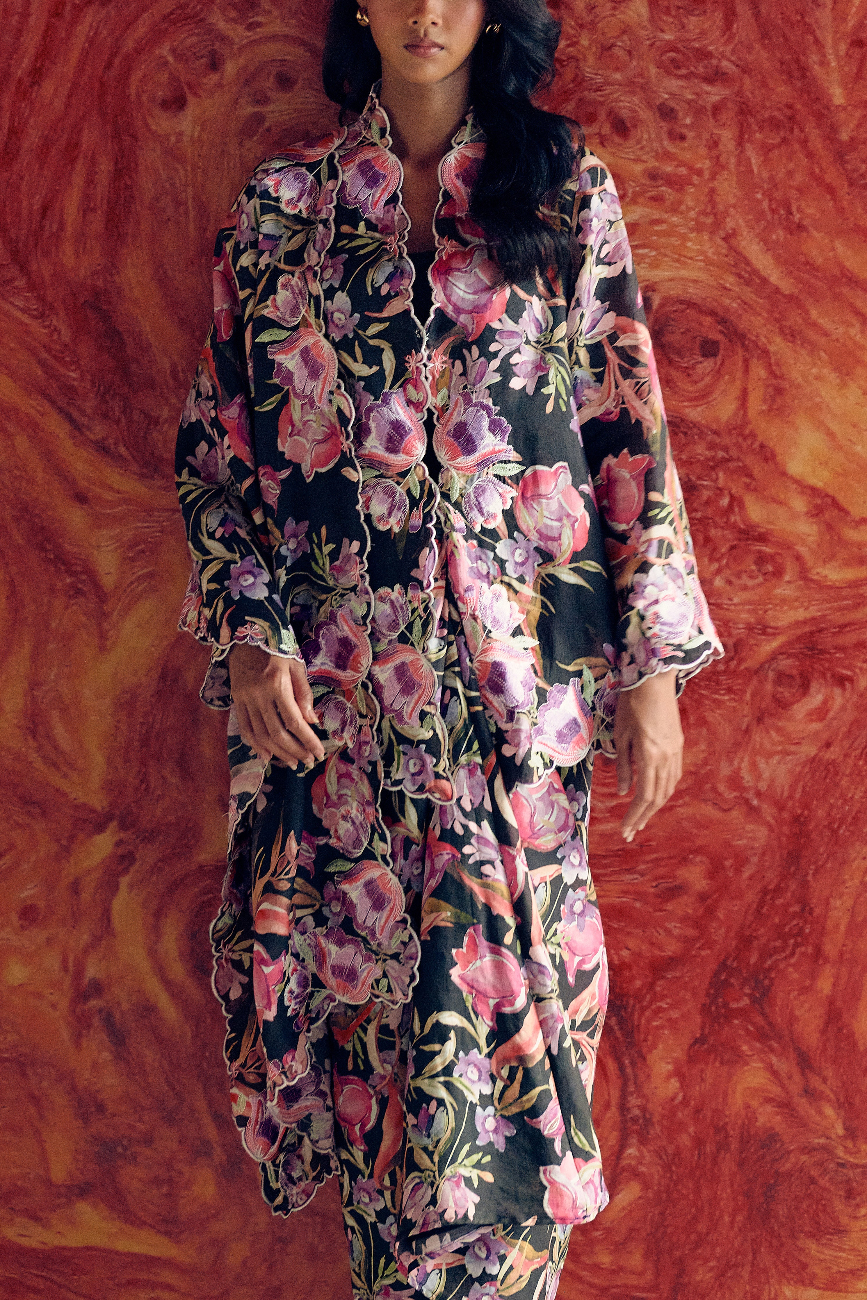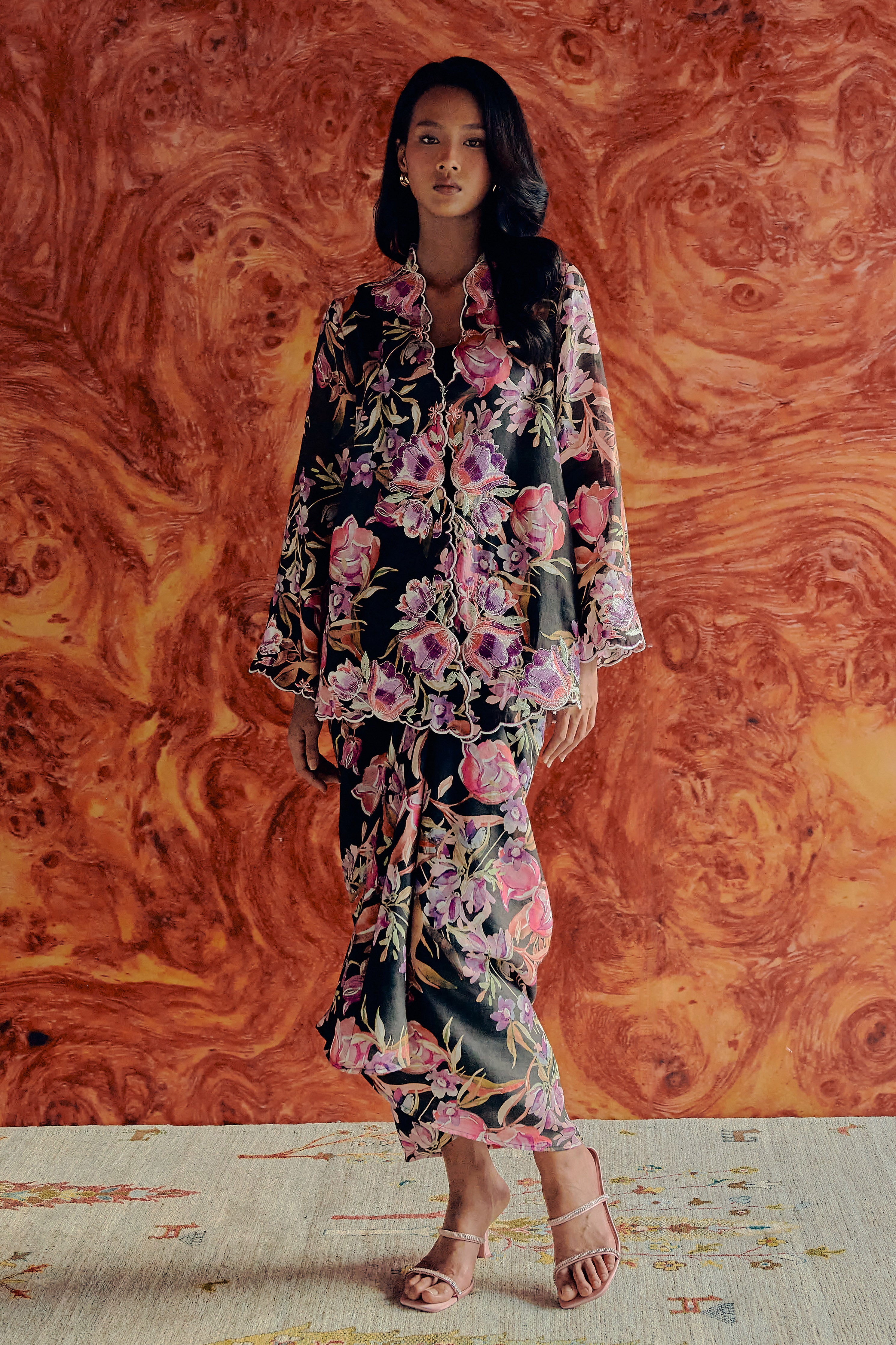 A reiteration of the kebaya silhouette, rendered in ramie. Features bold floral embroidery in multi-tone threads, finished with a single front hook-and-eye closure. Due to the sheerness of the material, we recommend layering it with an inner for added coverage.