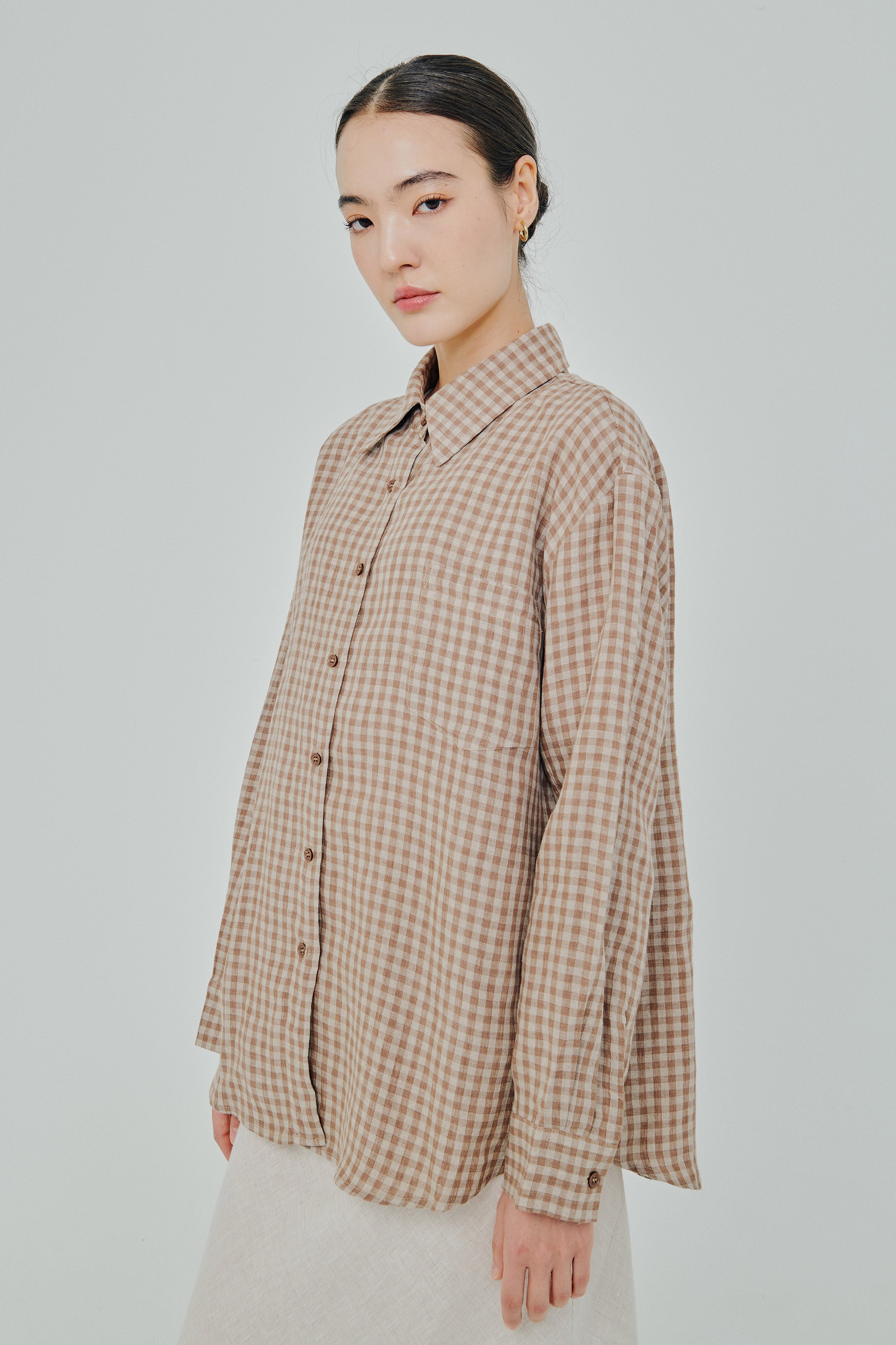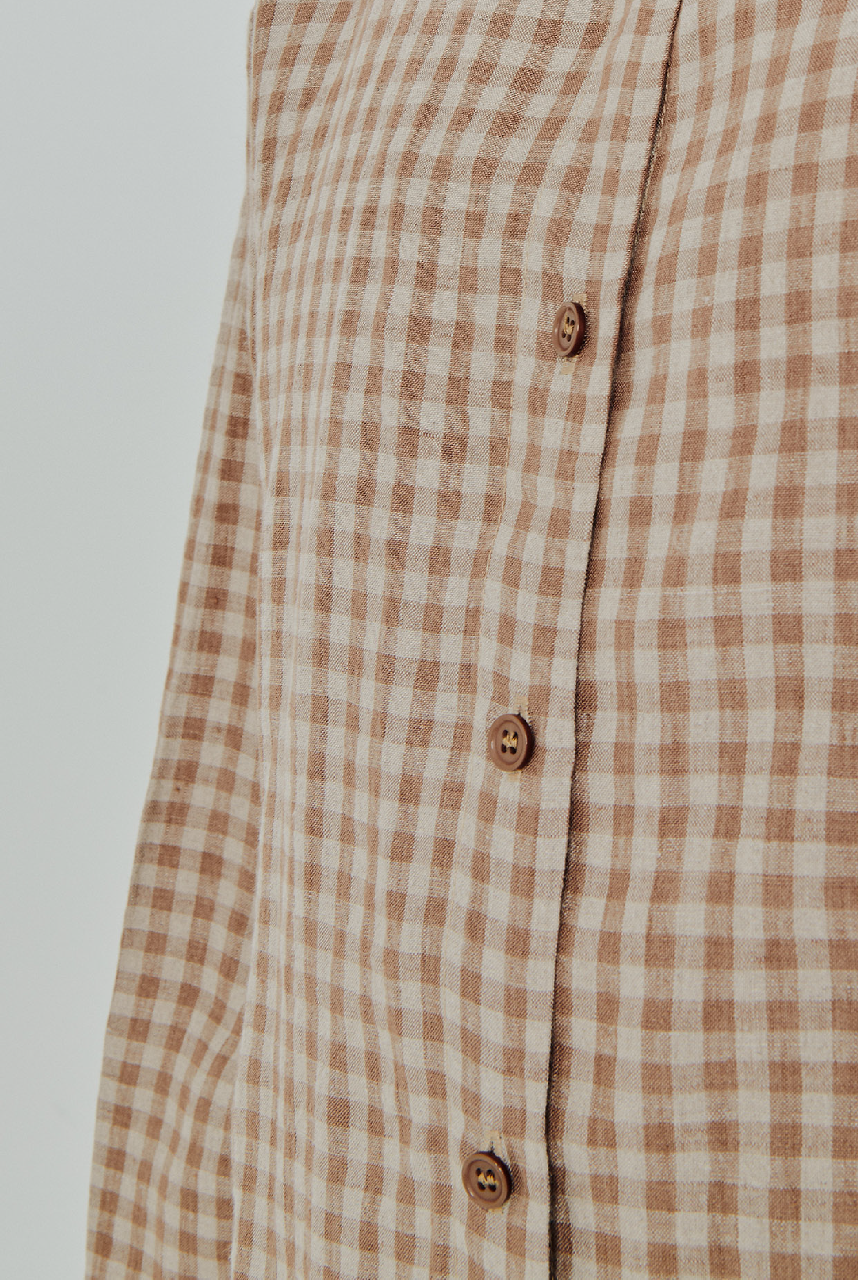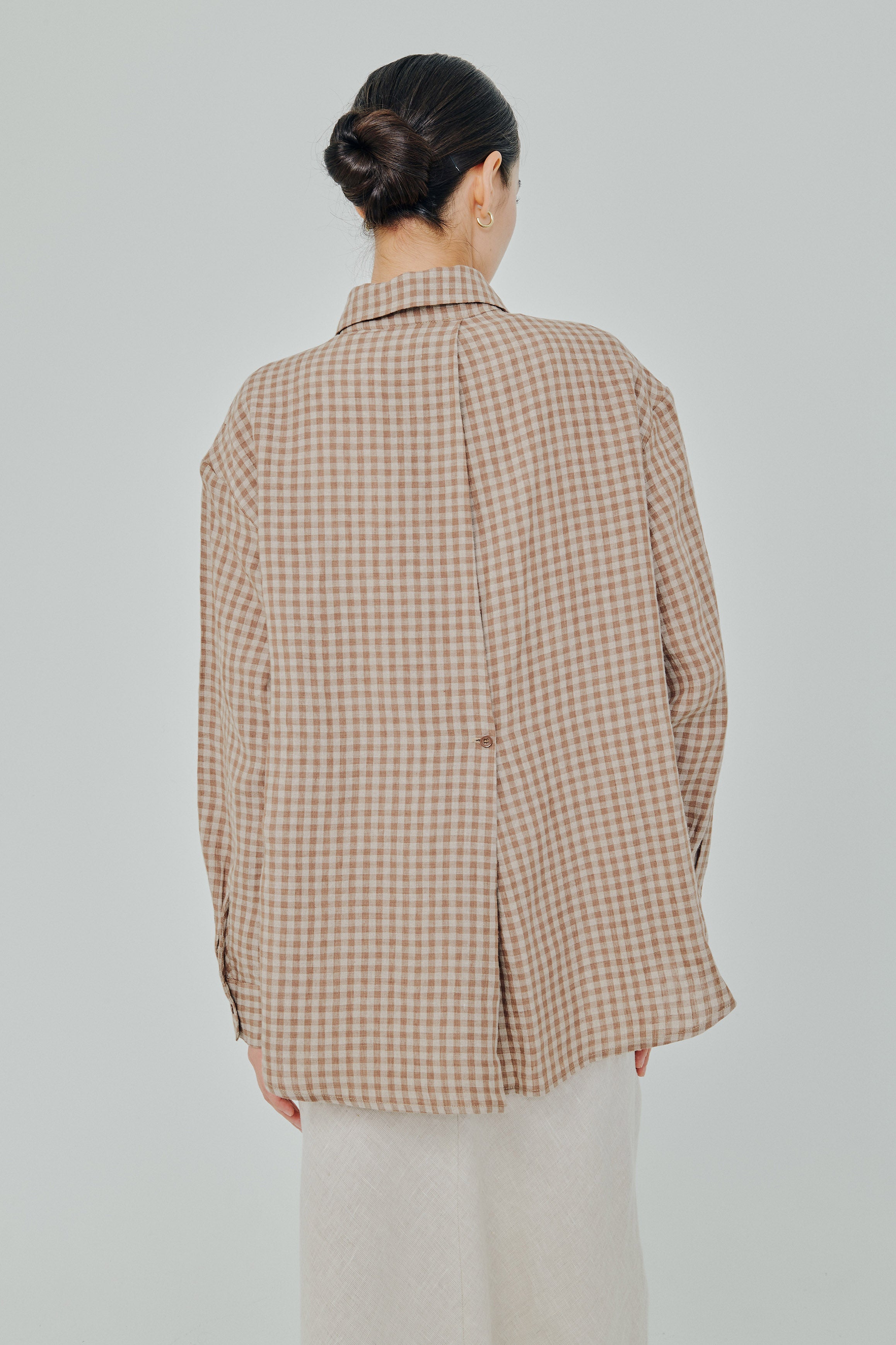 Statement Button-Back Linen Shirt in Brown Gingham