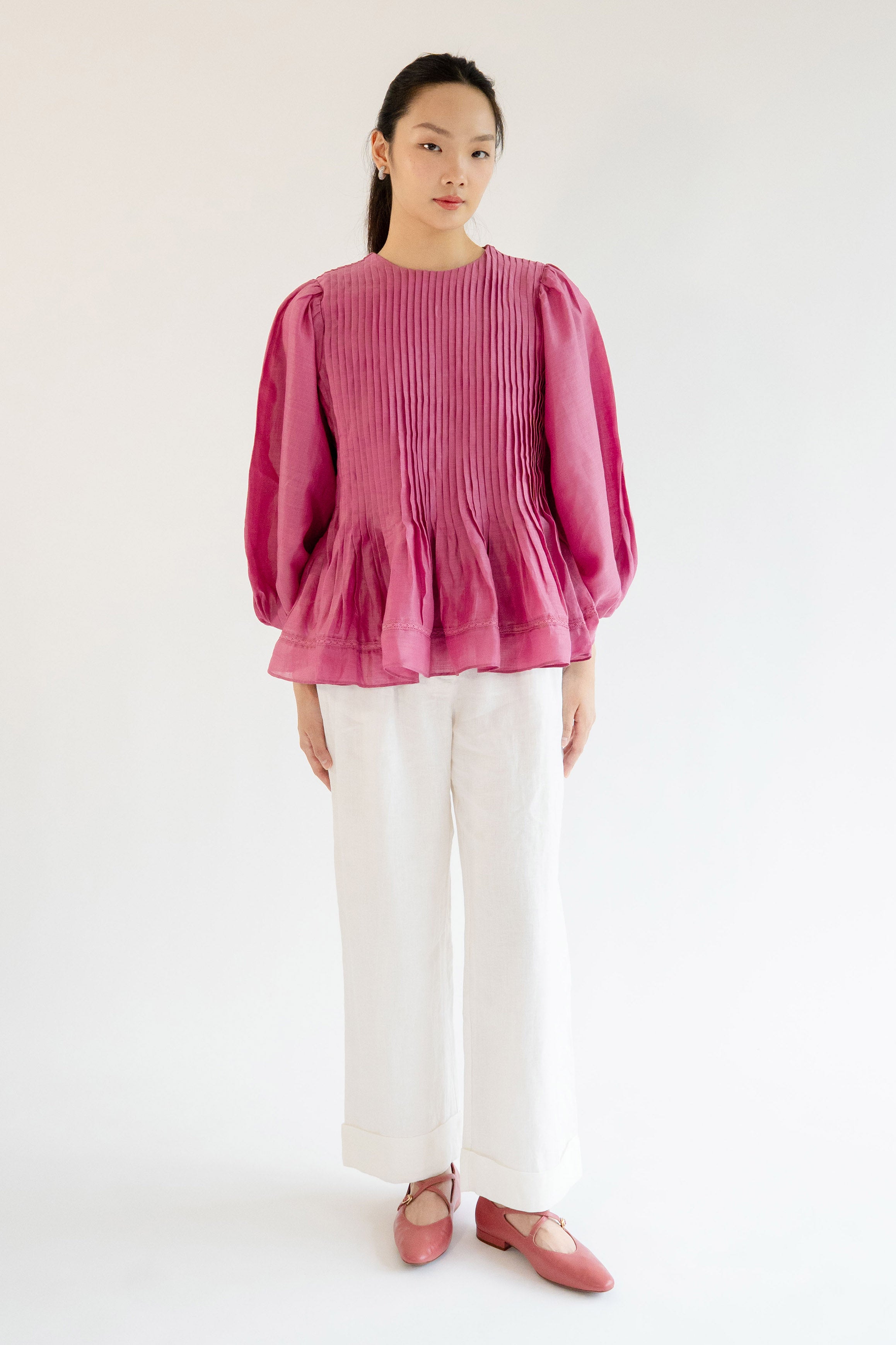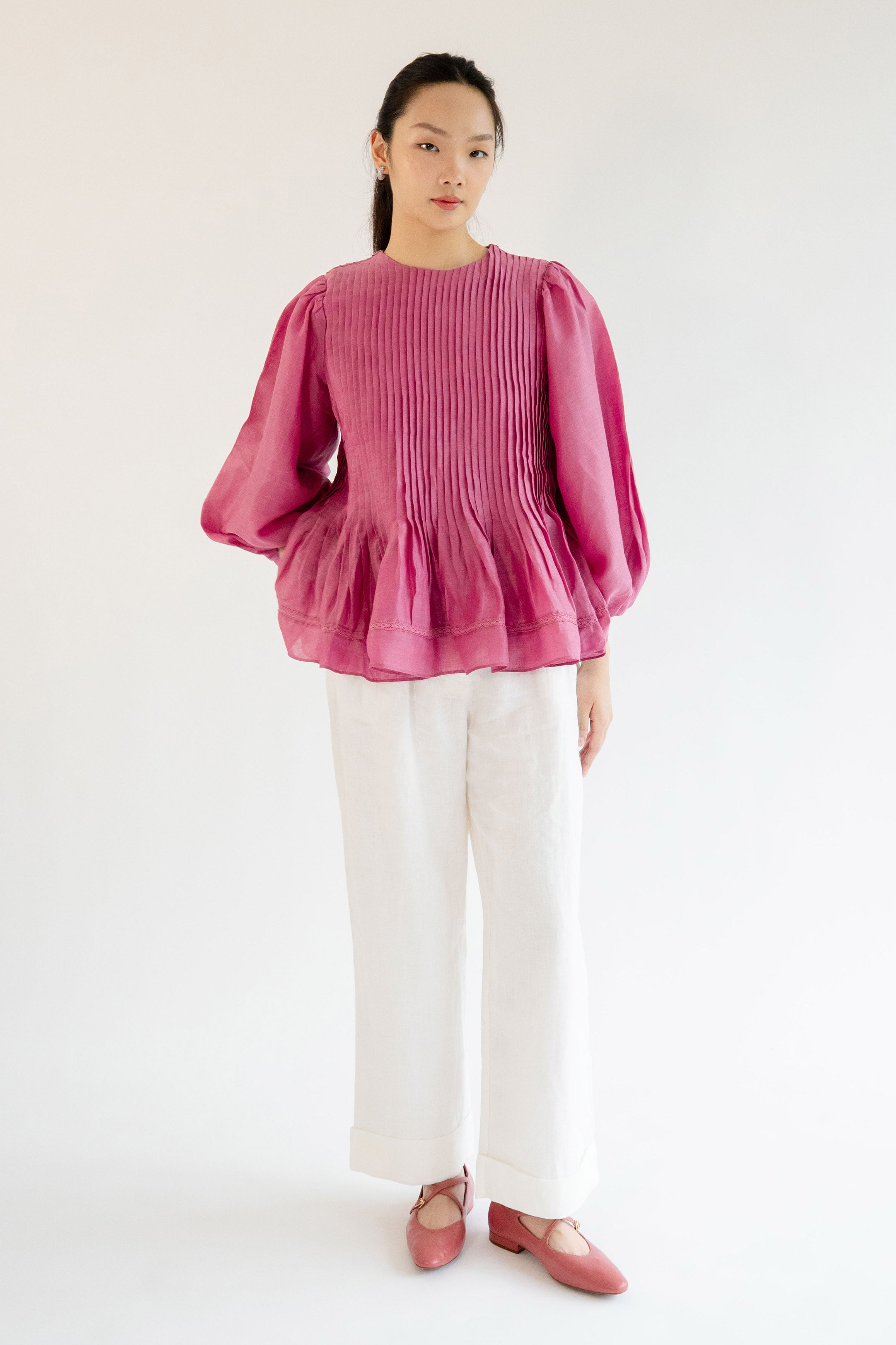 Athena Ramie Blouse in Peony