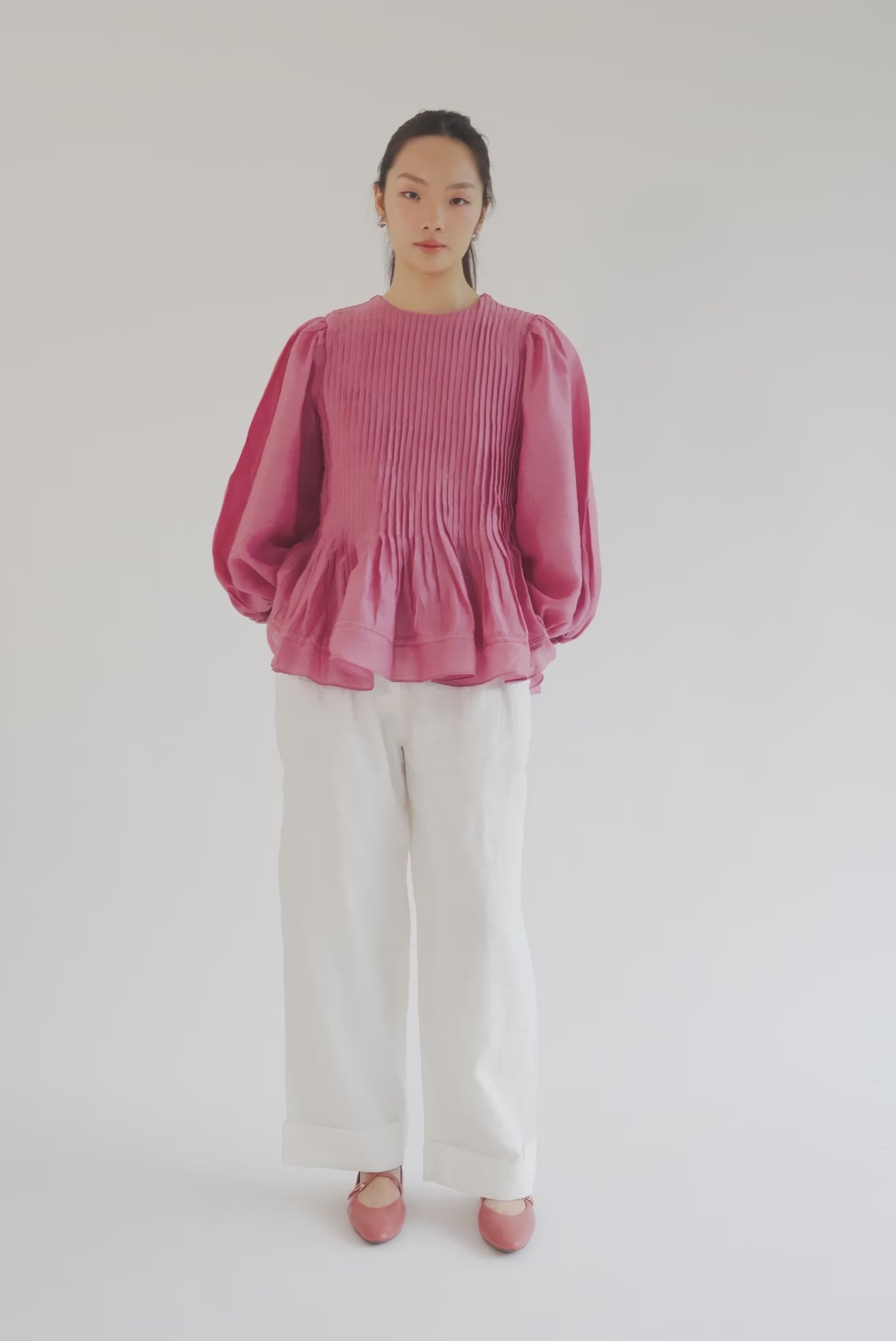 Blouse with a very fine pintuck and peplum