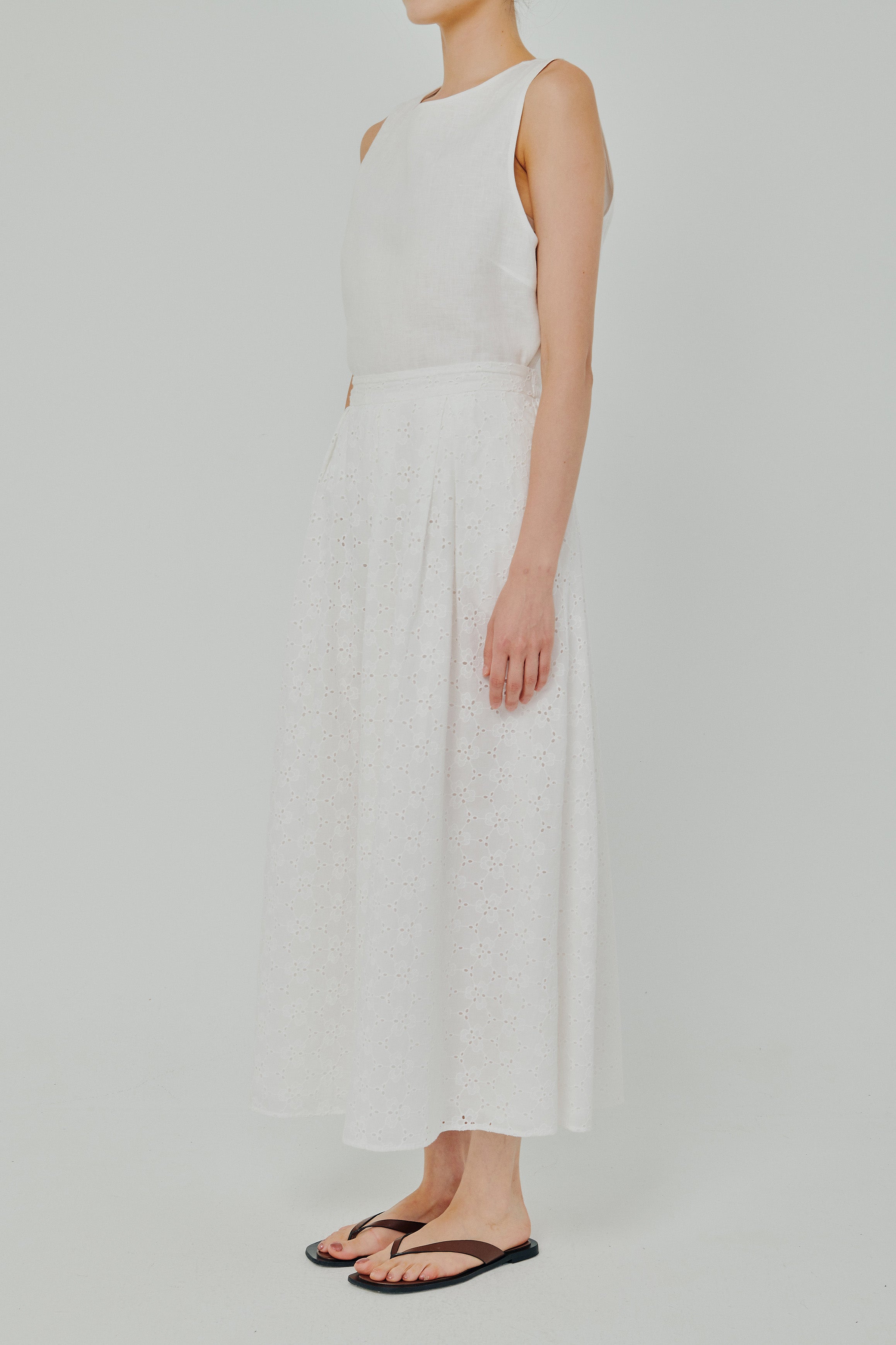 Curator Broderie Pleated Maxi Skirt in White