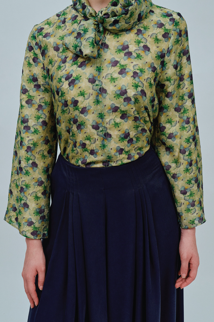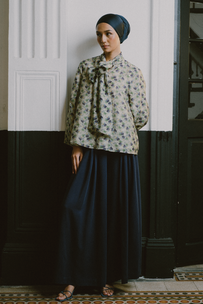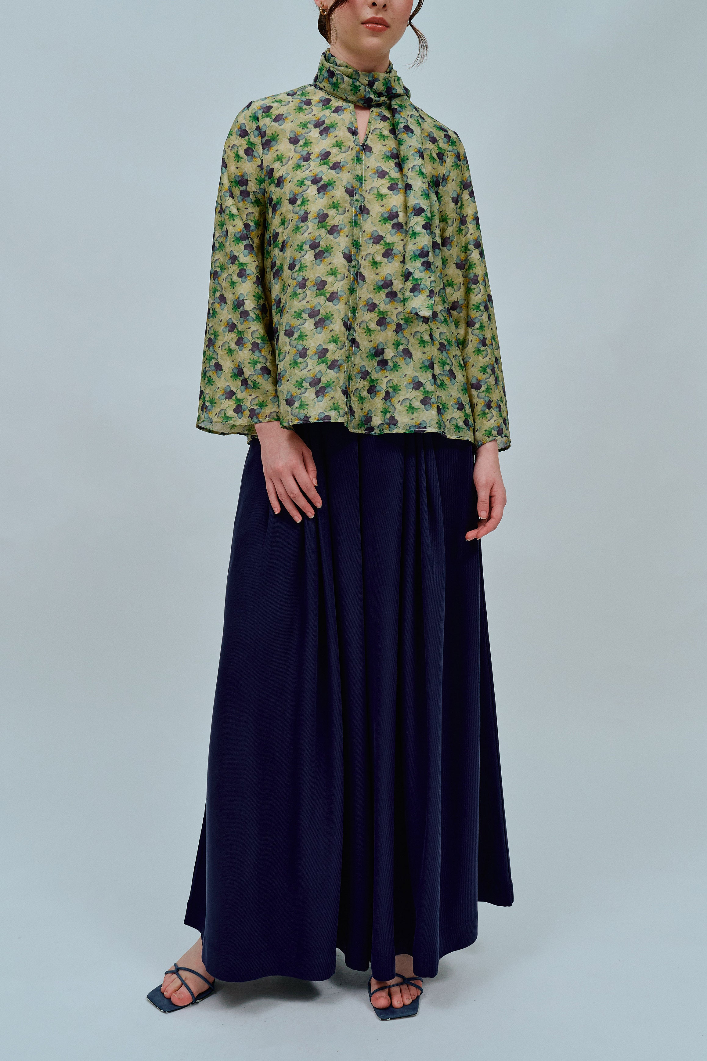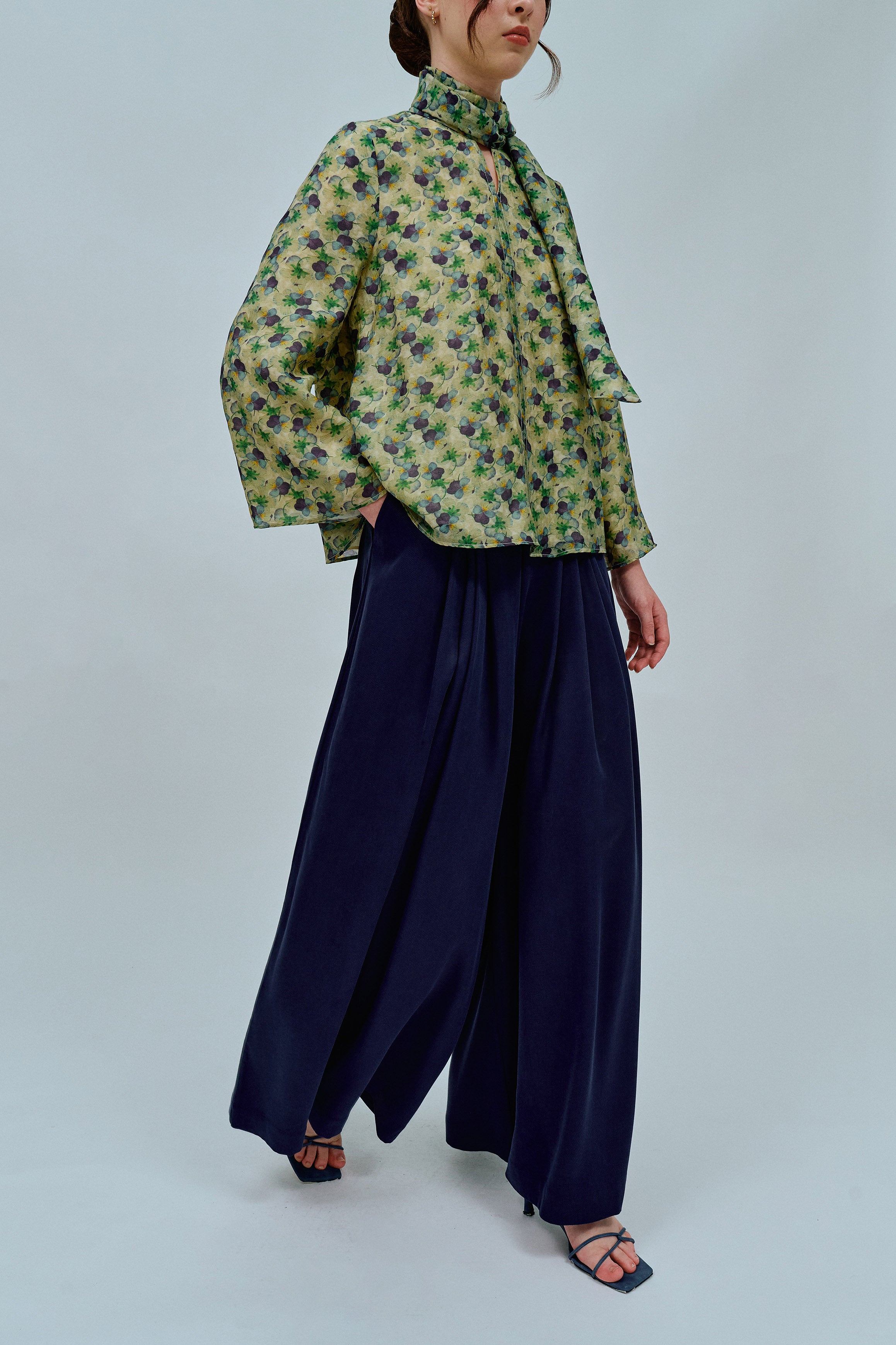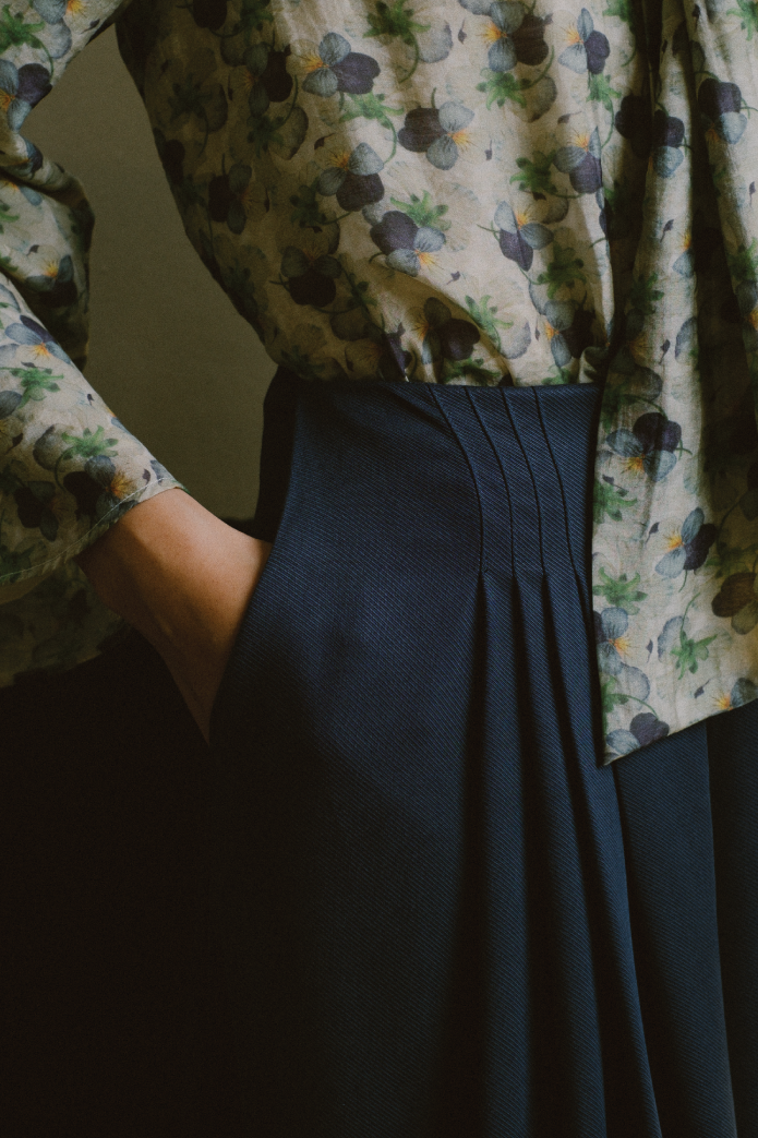 Cut with a wide flare and front tucks for sculptural drape. Features a clean side zip, single pocket and a structured waistband for a polished finish.