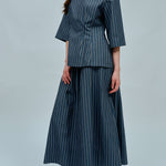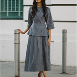 Your new staple in A-line midi form, rendered in cotton. Features a half elastic waistband.