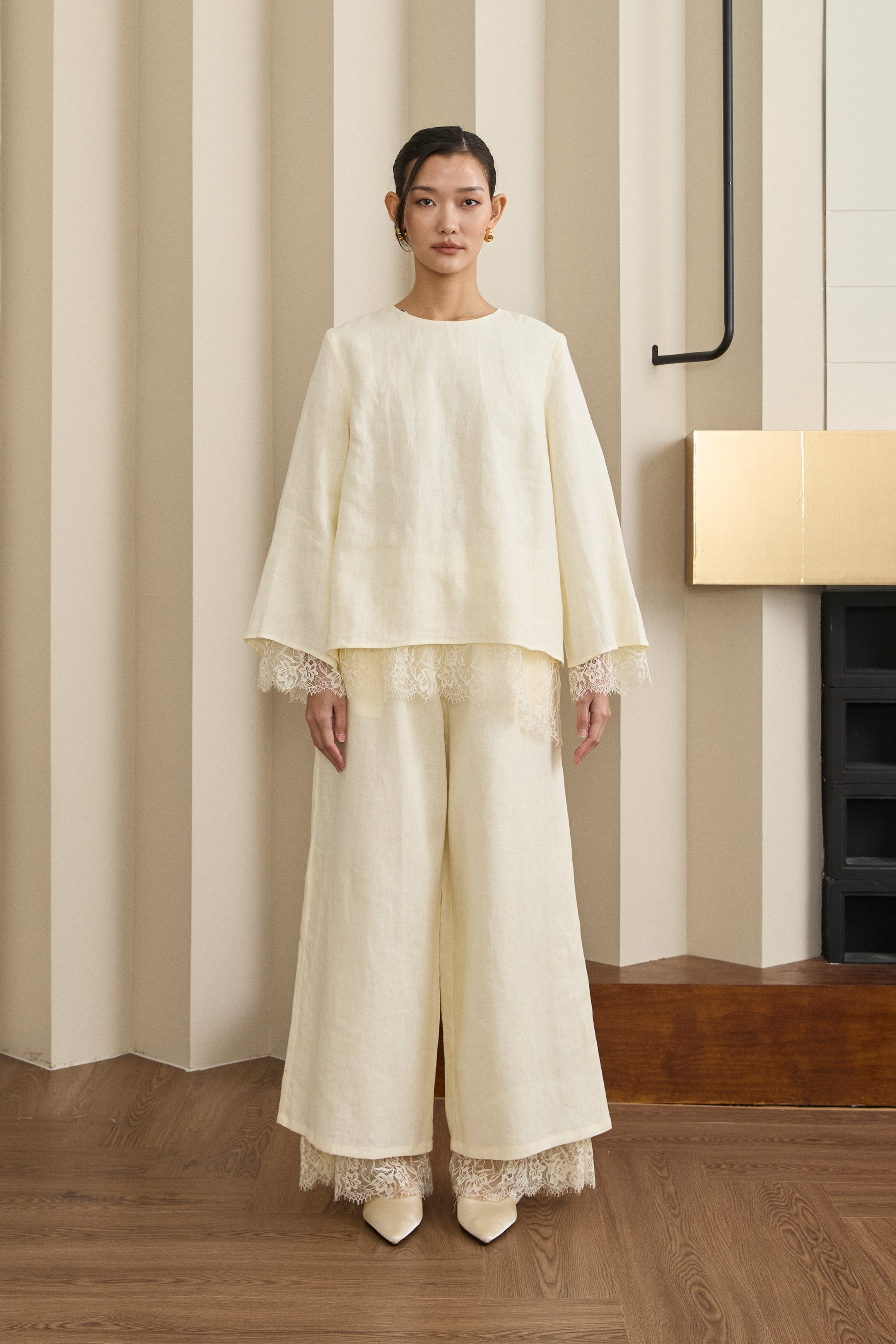 Narumi Pleated Ramie Trousers in Dusty Blue